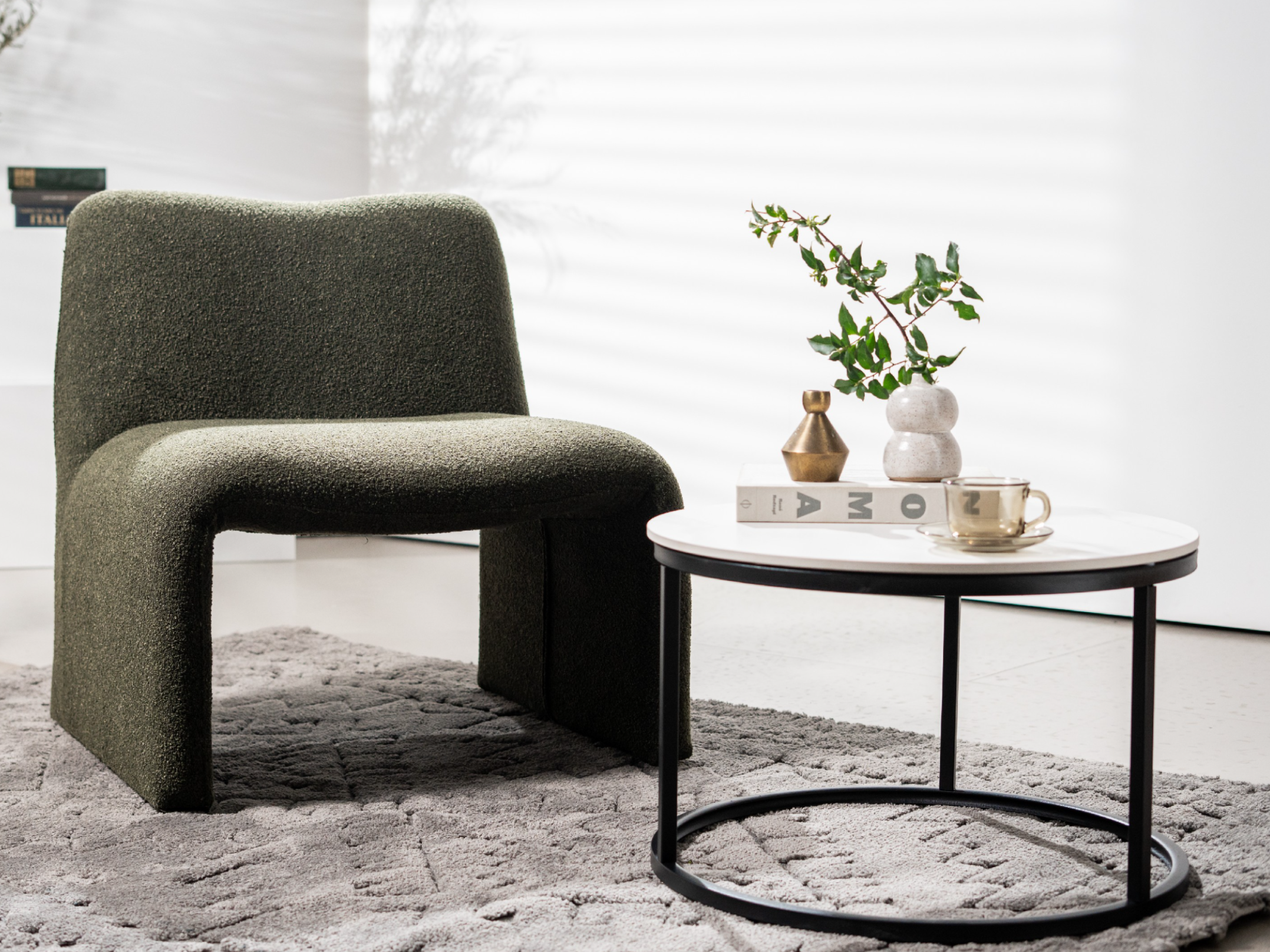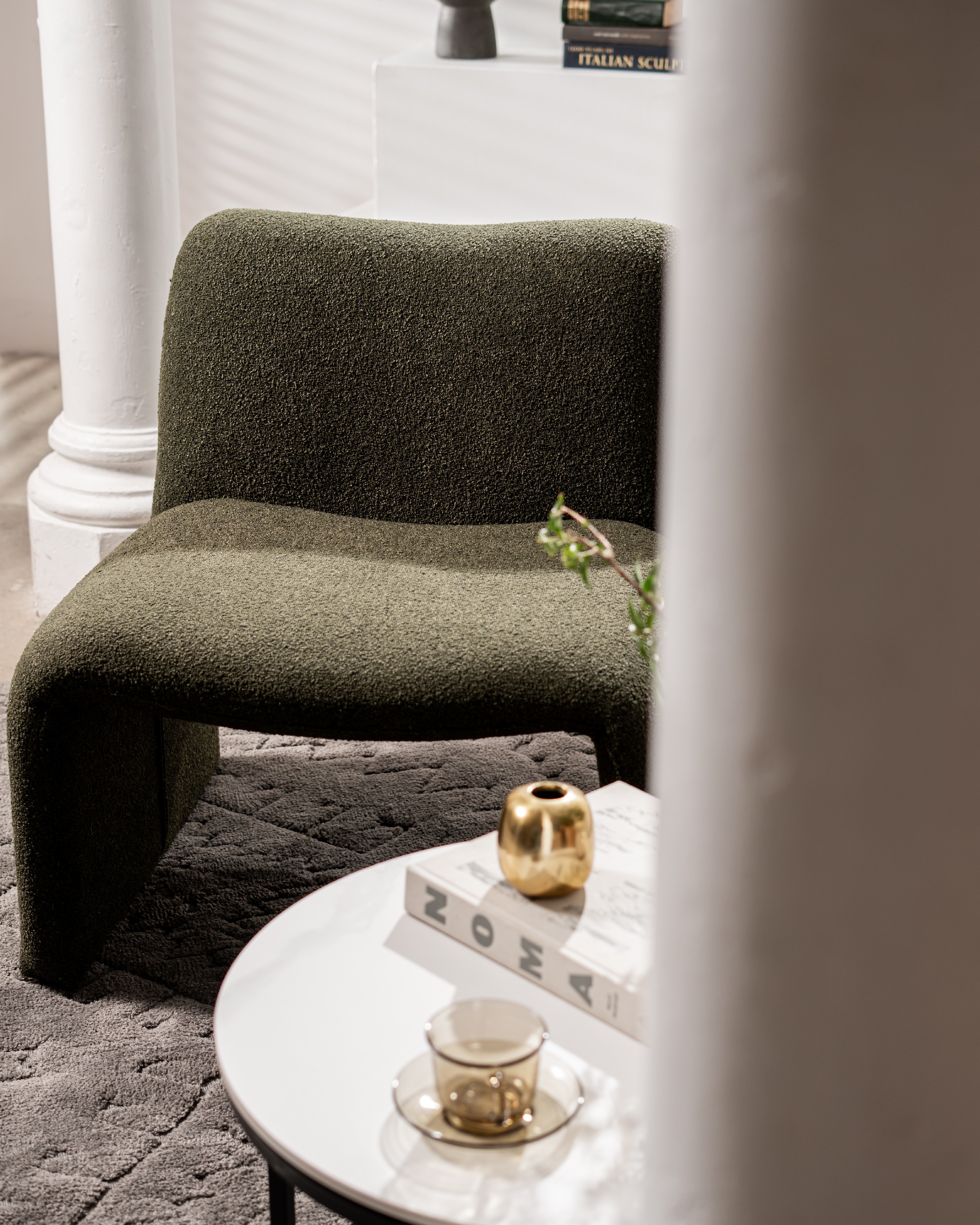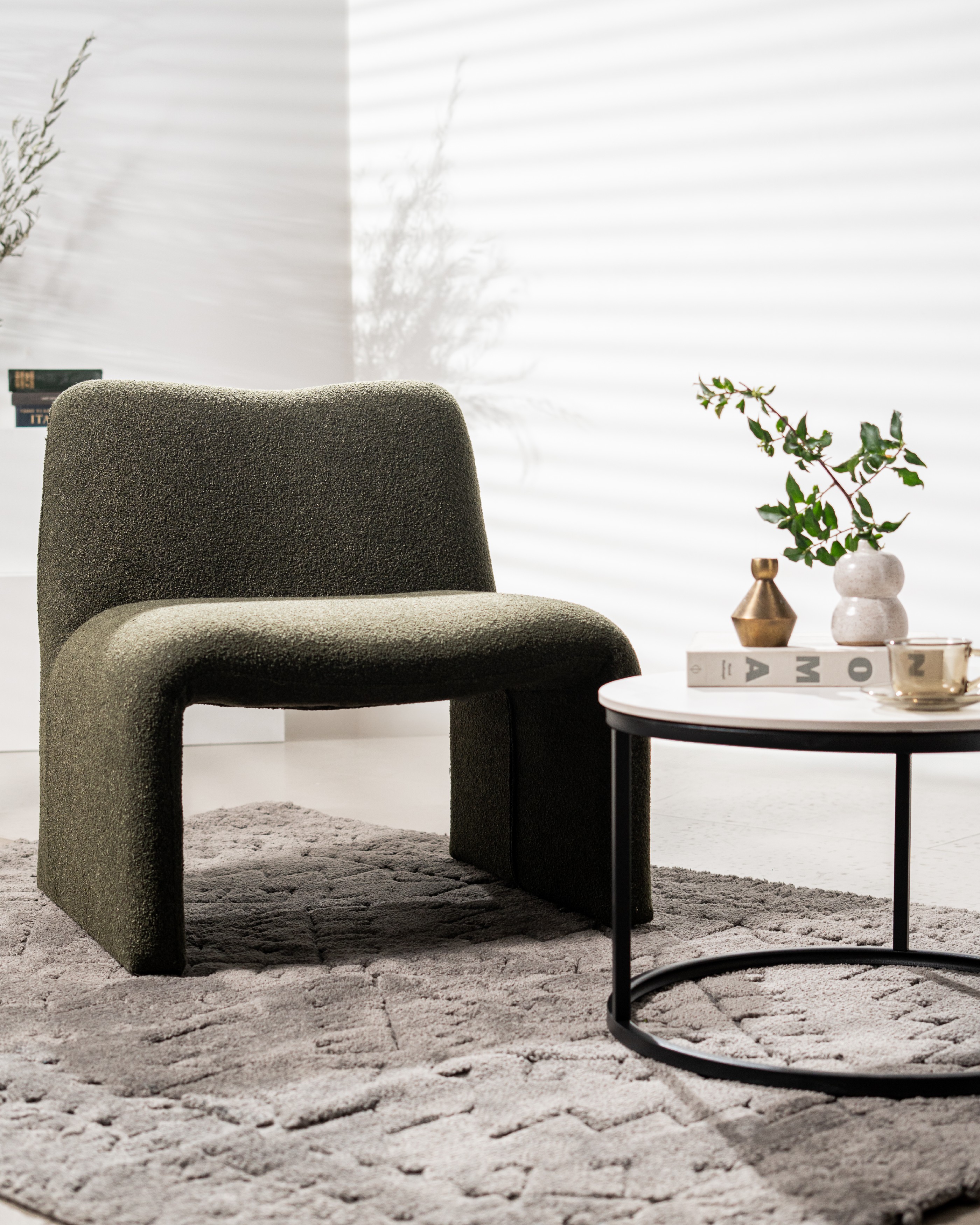 букле тканини додає текстури, що надає кріслу не тільки витонченого вигляду, але й практичності в догляді.