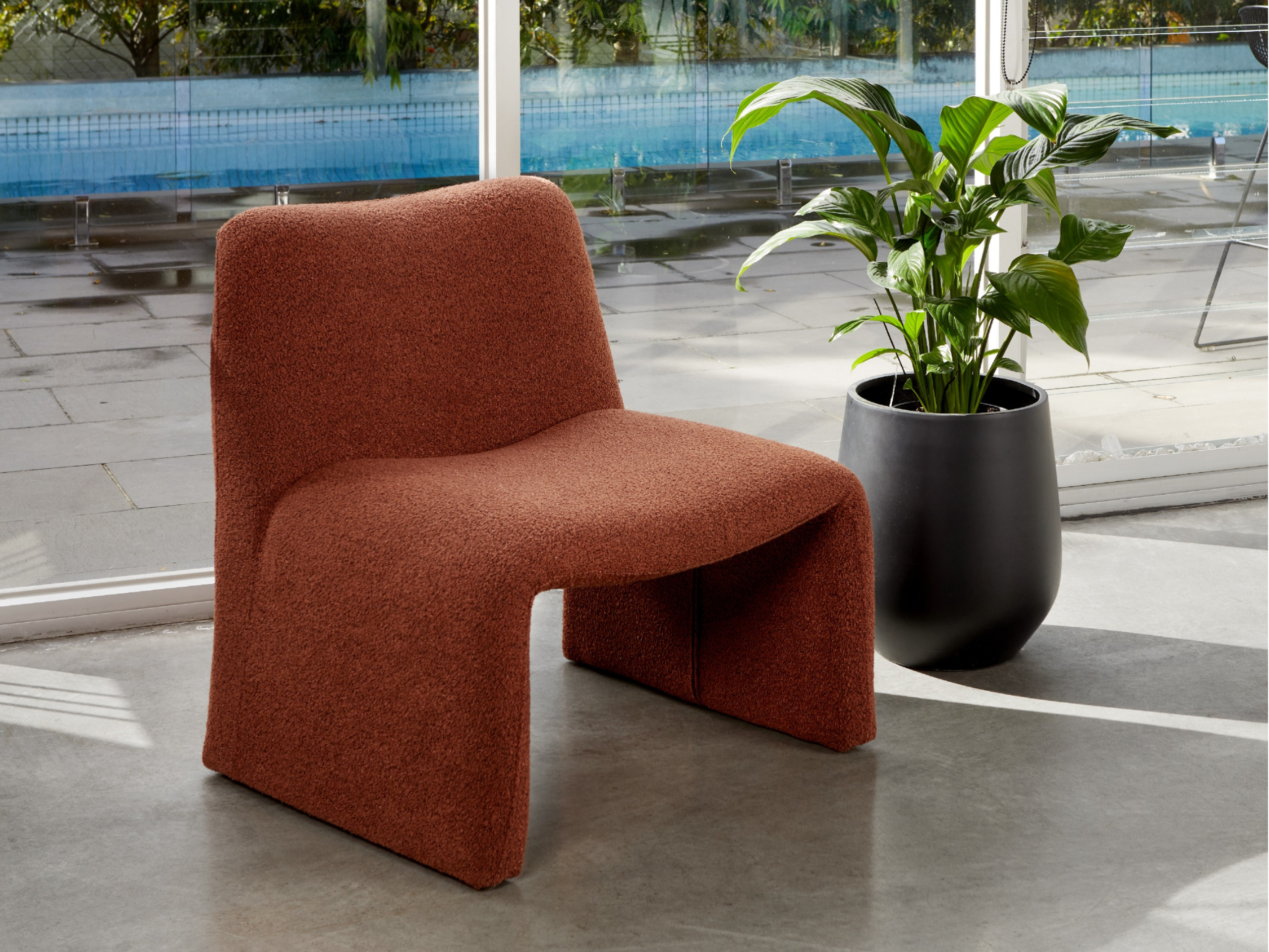 букле додає текстурності, а насичений відтінок теракоту привносить тепло й стиль у будь-який простір — від сучасної вітальні до лаунж-зони.