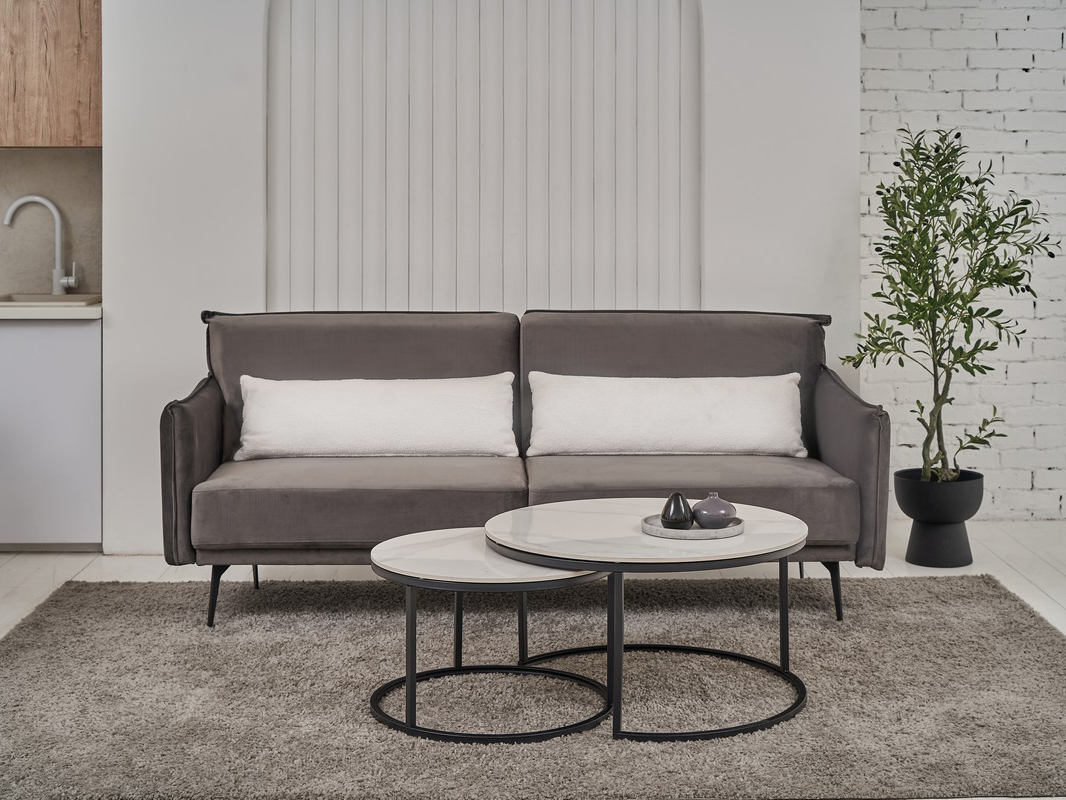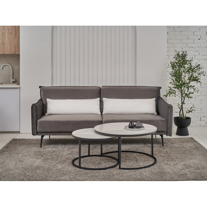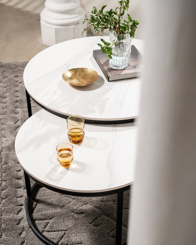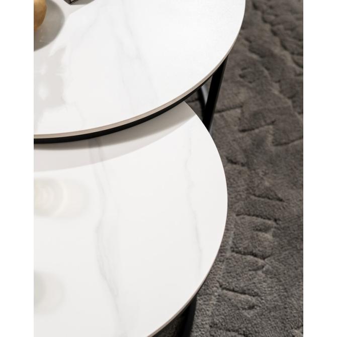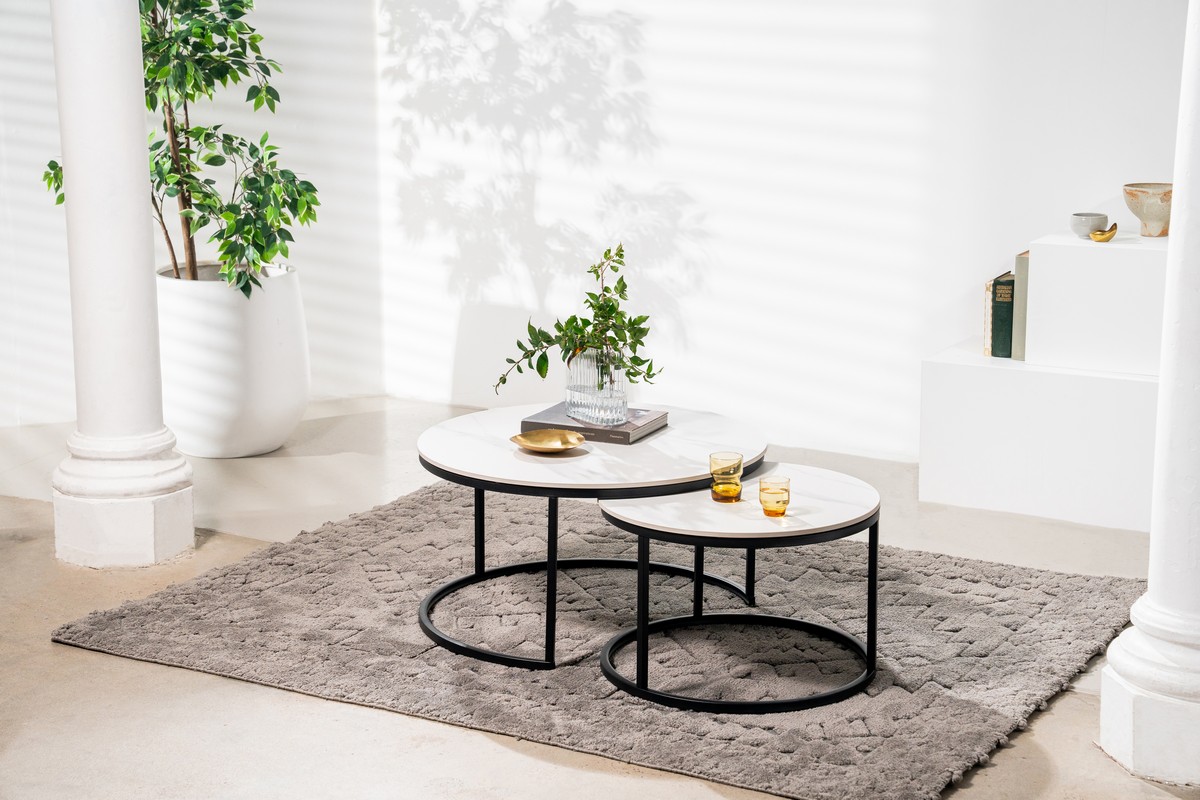 Кругла форма столів додає м'якості простору, створюючи гармонійний і збалансований інтер'єр. Основа з фарбованого металу чорного кольору додає контрастності та міцності, роблячи ці столи не лише функціональними, але й стильними елементами декору.