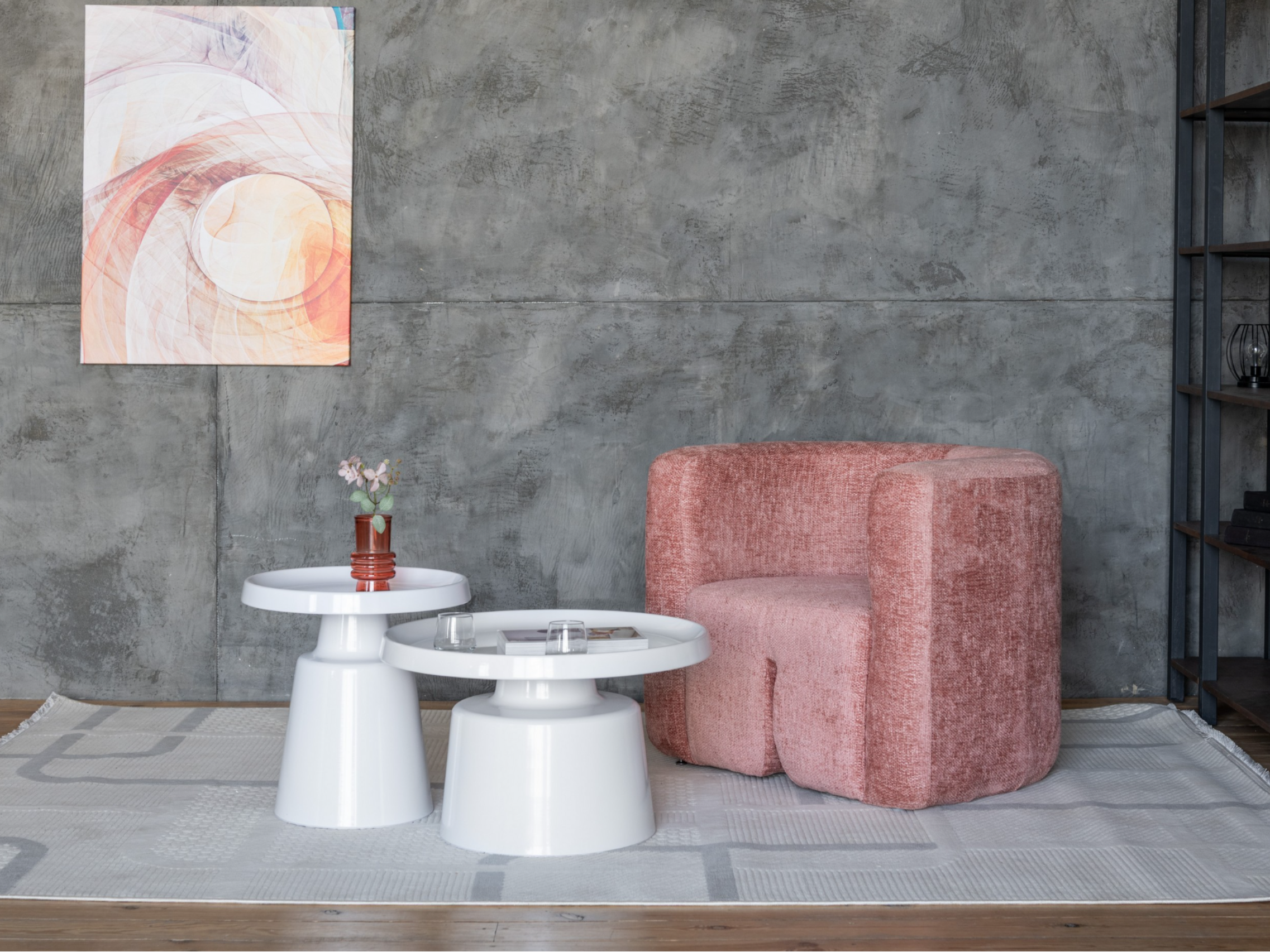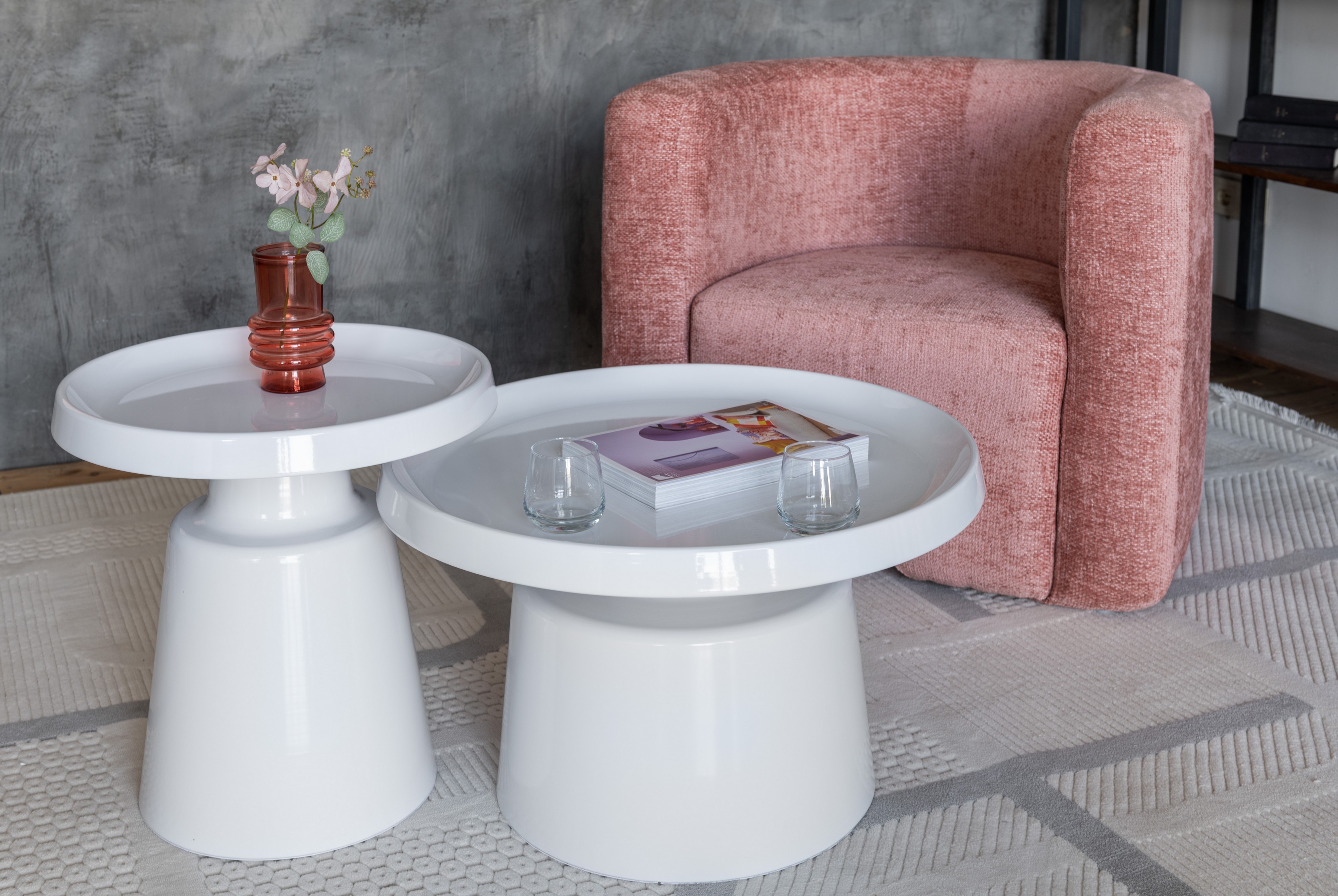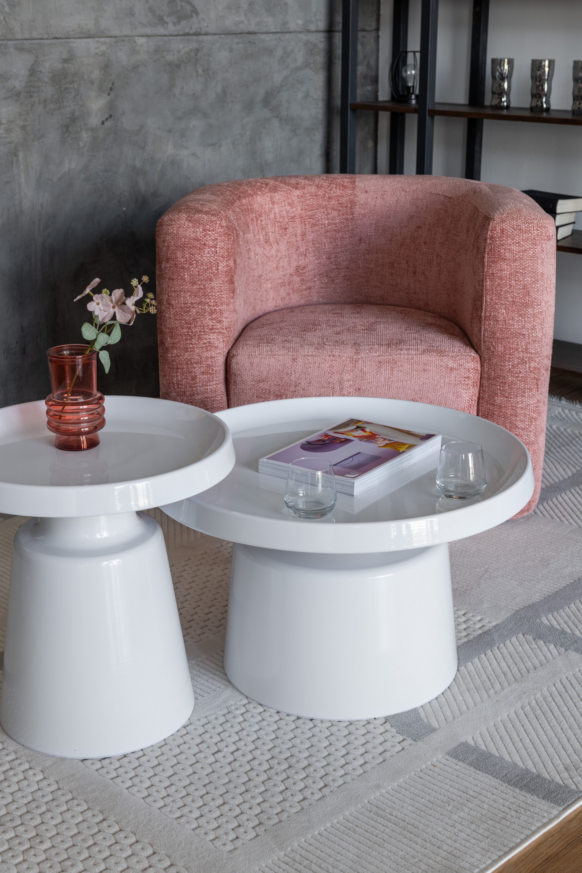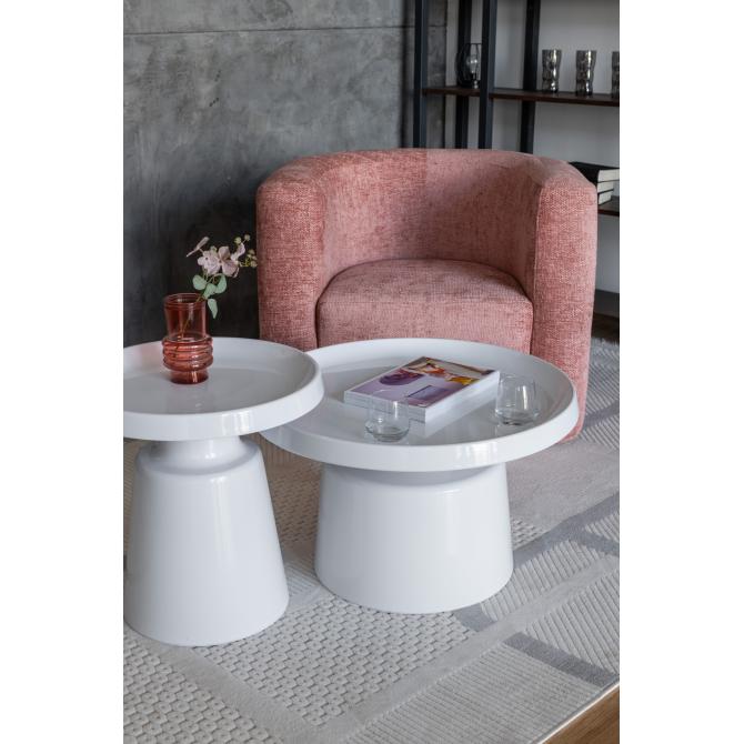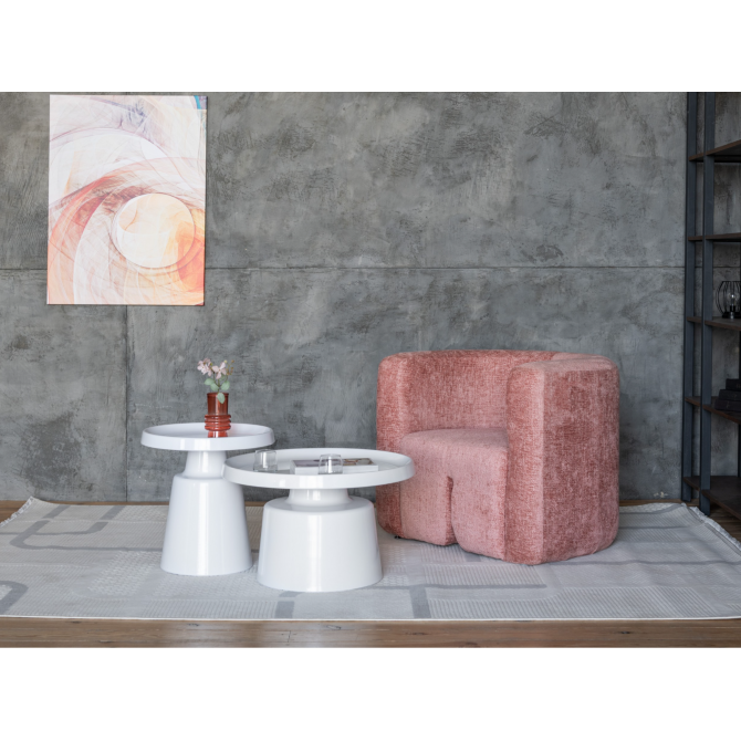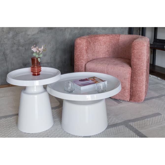 Стільниці та основа виготовлені з фарбованого металу, що забезпечує міцність, довговічність і стійкість до пошкоджень. Завдяки повністю білому виконанню комплект виглядає легким і гармонійно поєднується з різними стилями — від мінімалізму до скандинавського дизайну.