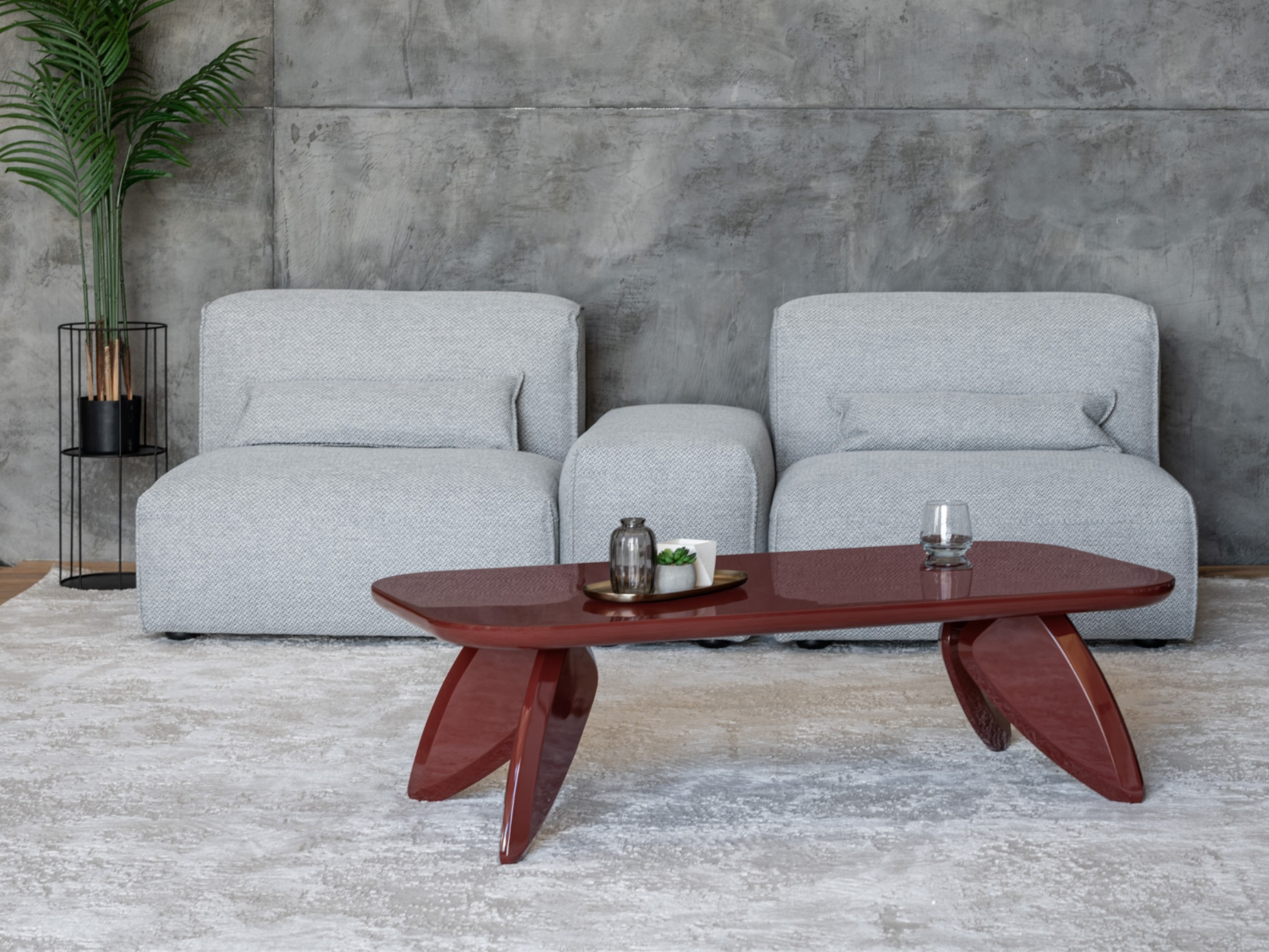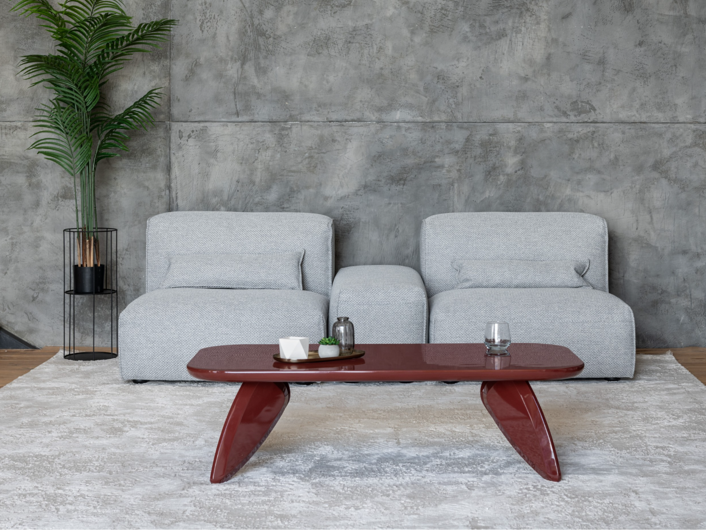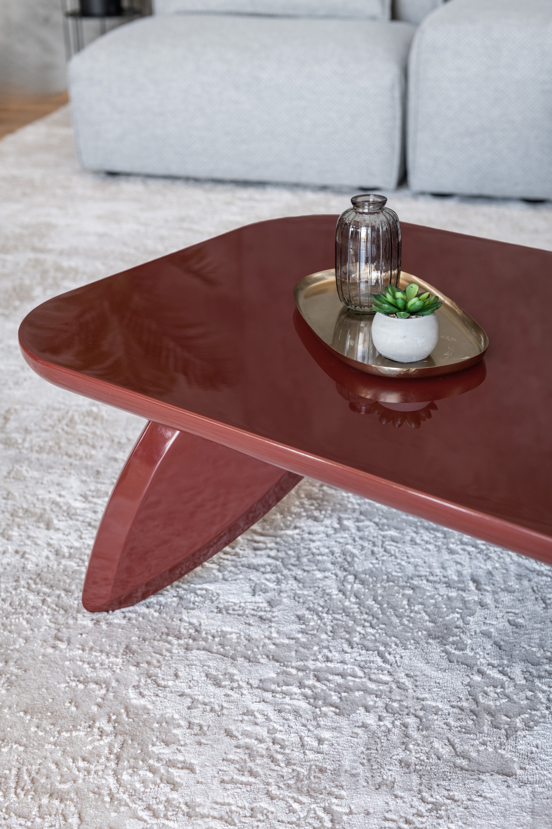 Стільниця й основа виготовлені з МДФ, вкритого глянцевим поліуретановим фарбуванням, що створює насичену, блискучу поверхню, приємну на дотик та візуально привабливу. Глянець надає столу сучасного вигляду та легко поєднується з іншими елементами інтер'єру — як контрастними, так і нейтральними.