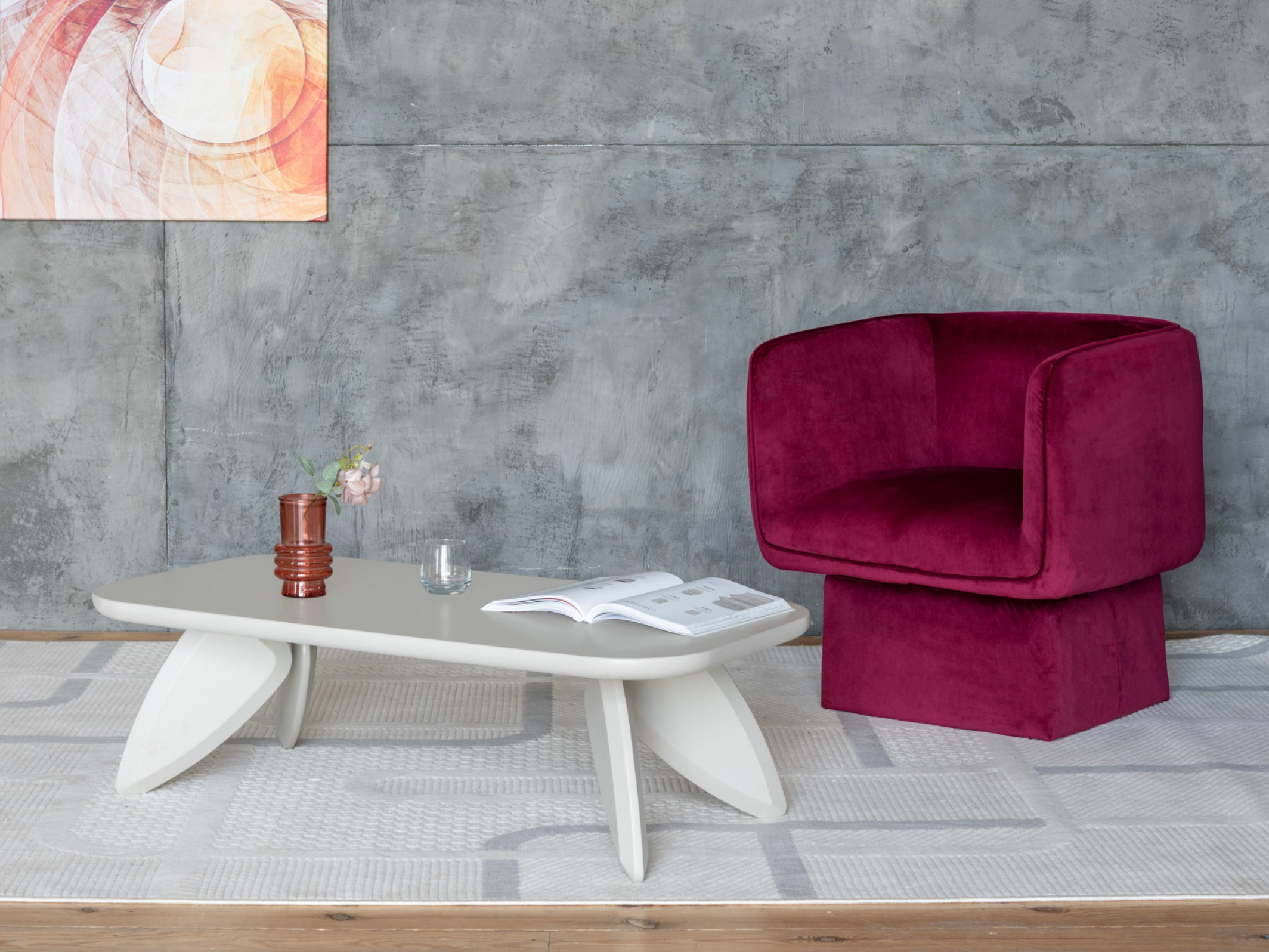 Стільниця й основа виготовлені з МДФ, вкритого глянцевим поліуретановим фарбуванням, що створює насичену, блискучу поверхню, приємну на дотик та візуально привабливу. Глянець надає столу сучасного вигляду та легко поєднується з іншими елементами інтер'єру — як контрастними, так і нейтральними.