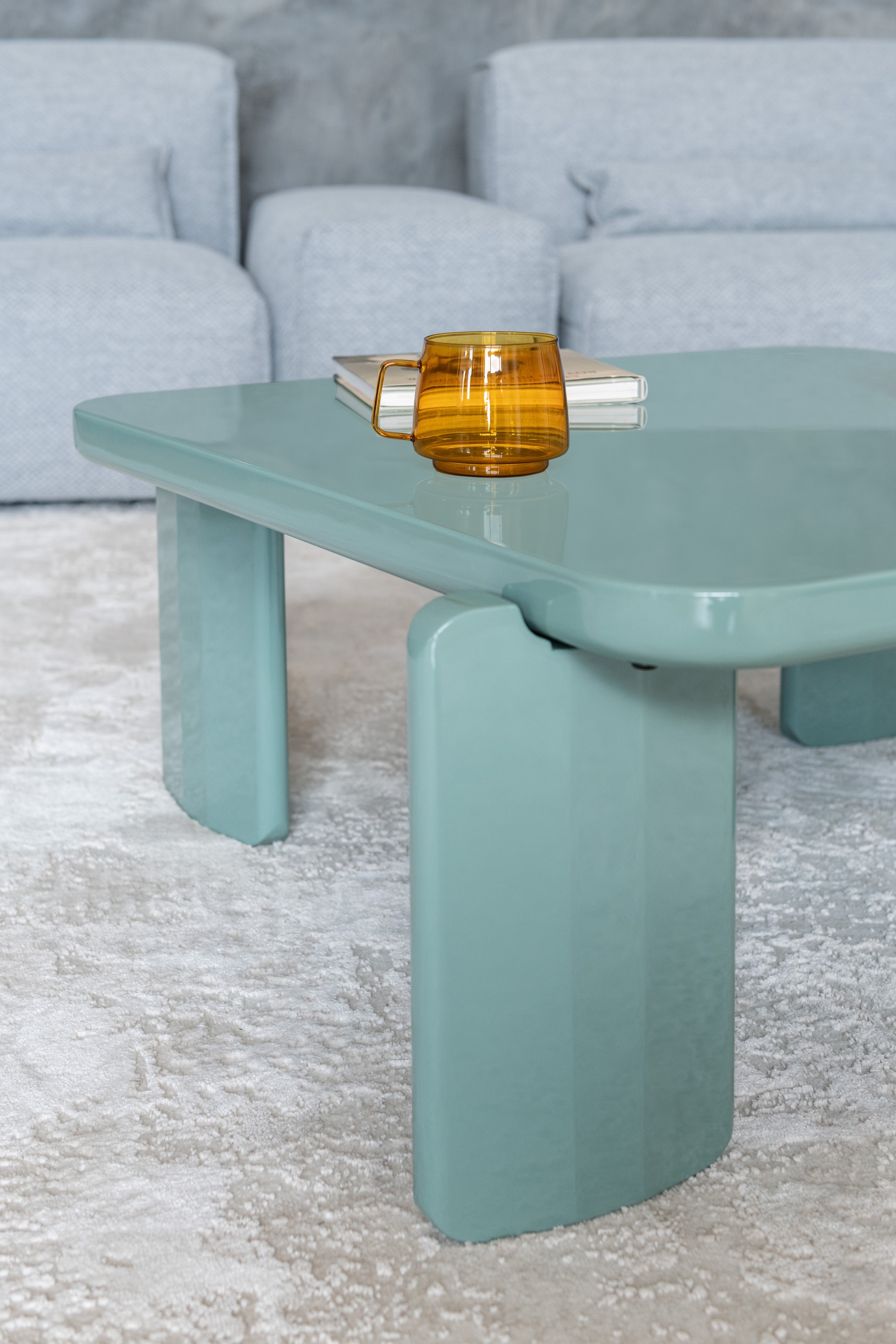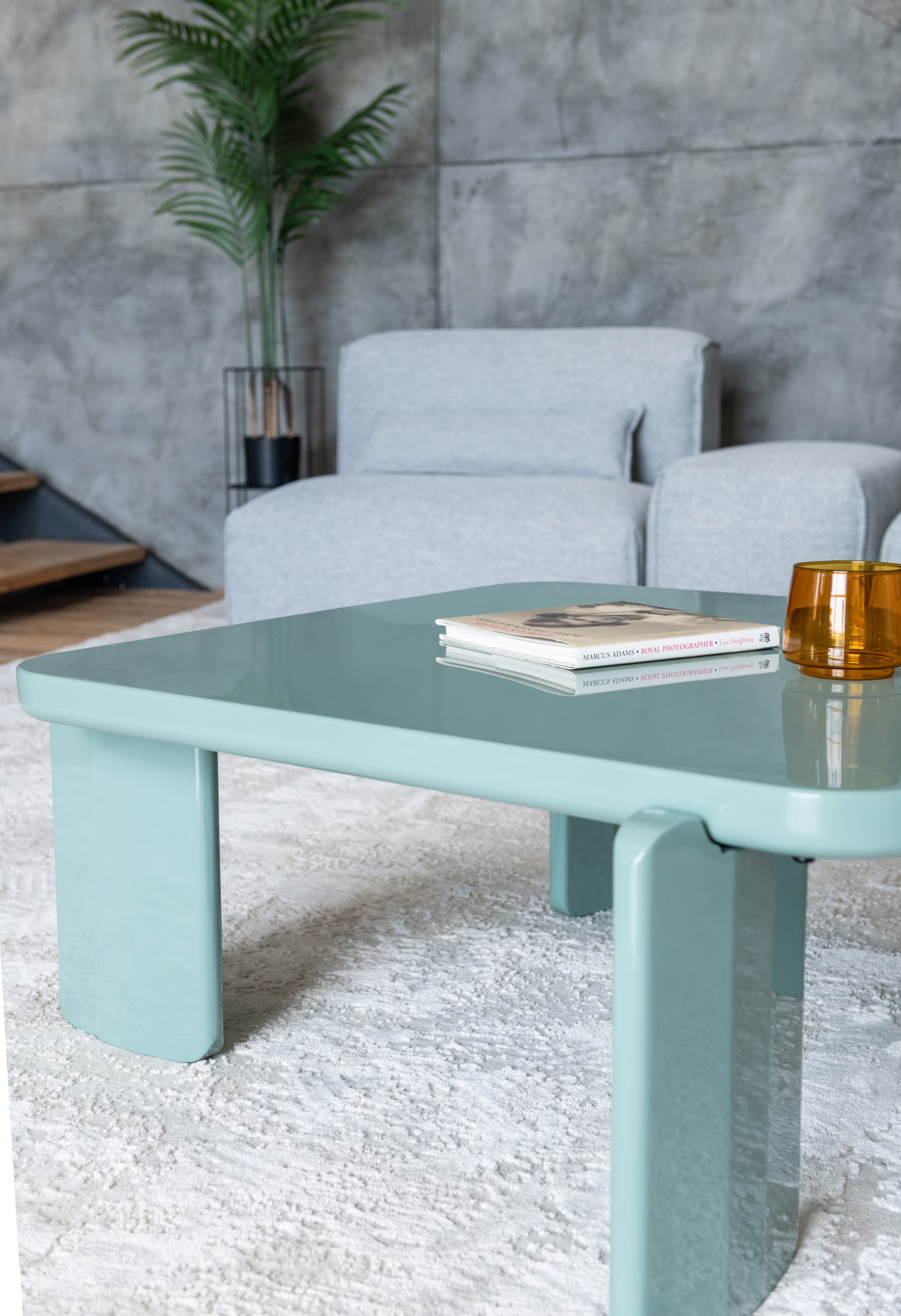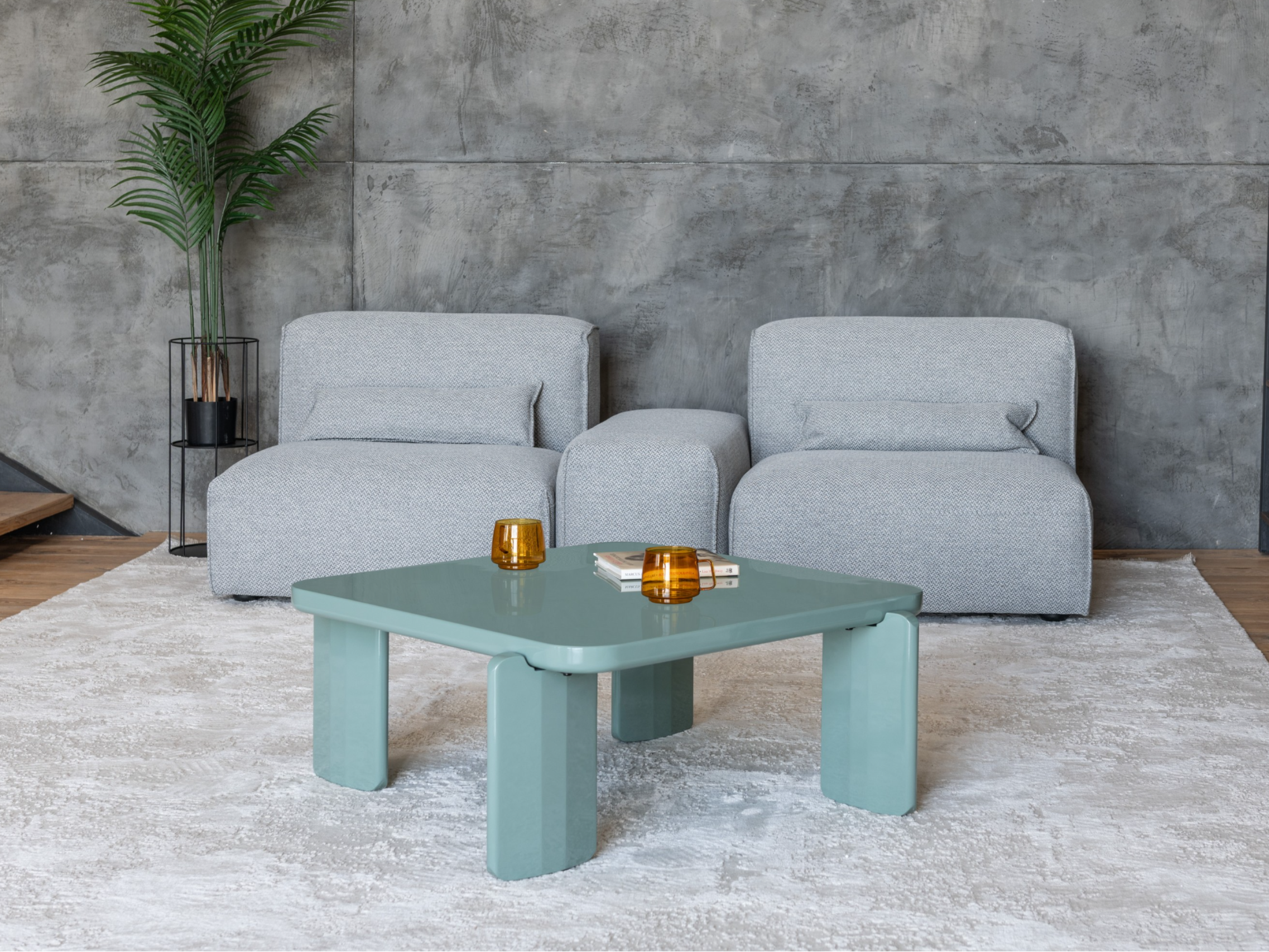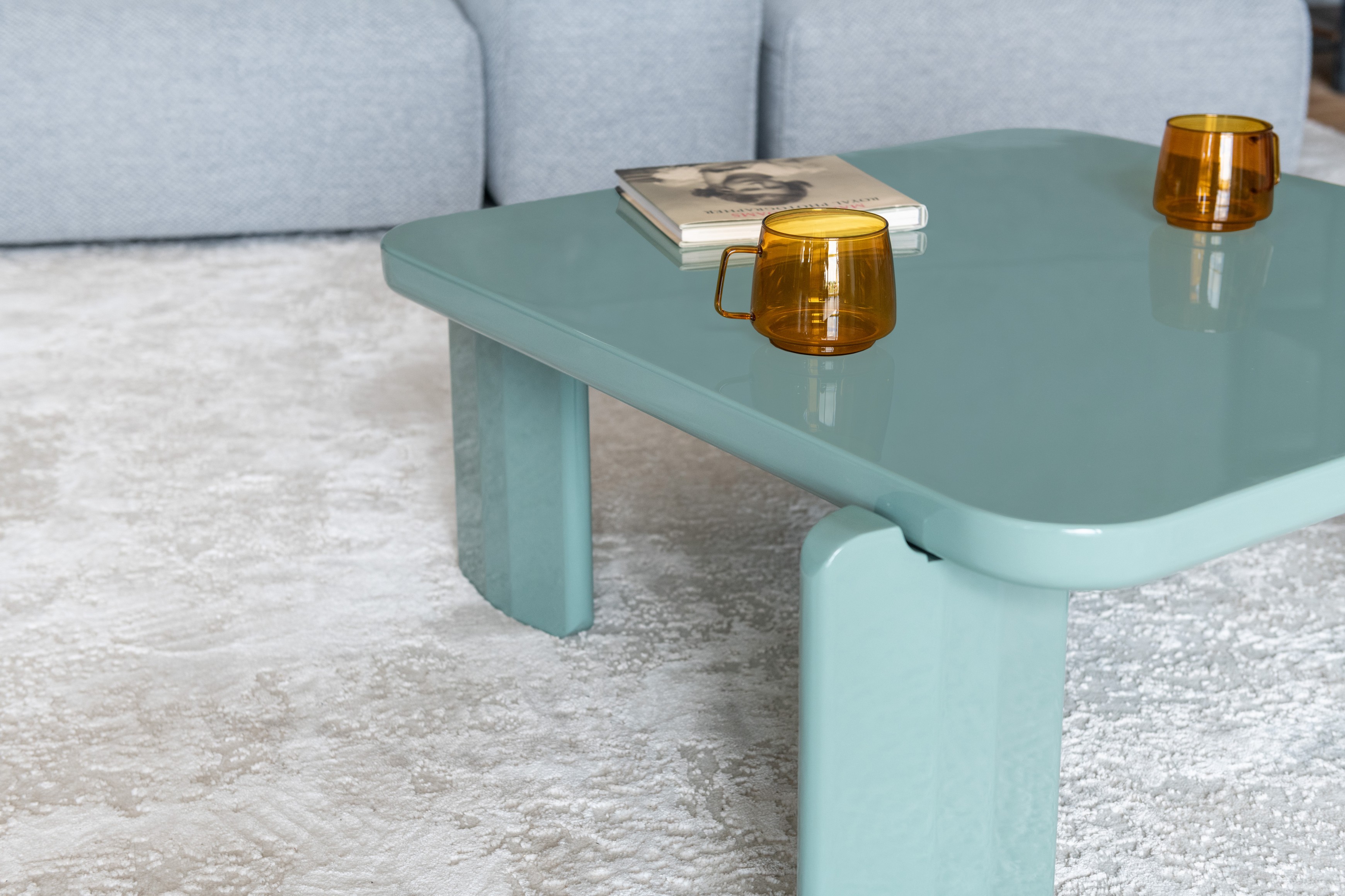 Стільниця та основа виготовлені з якісного МДФ, покритого глянцевою поліуретановою фарбою, що додає глибини кольору та захищає поверхню від зносу. Завдяки розмірам 80×80×35 см, стіл зручний у використанні та ідеально підходить для зон відпочинку.
