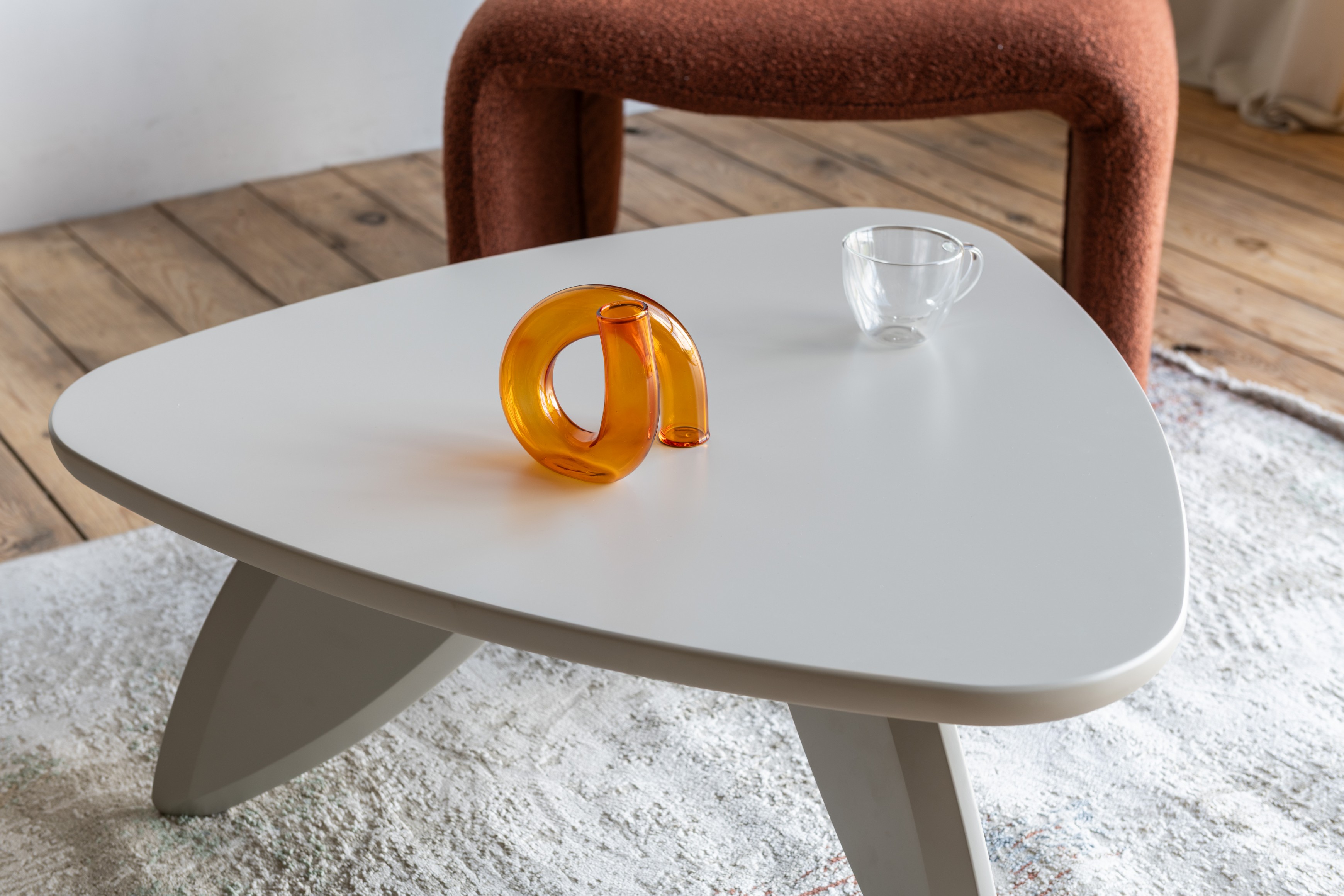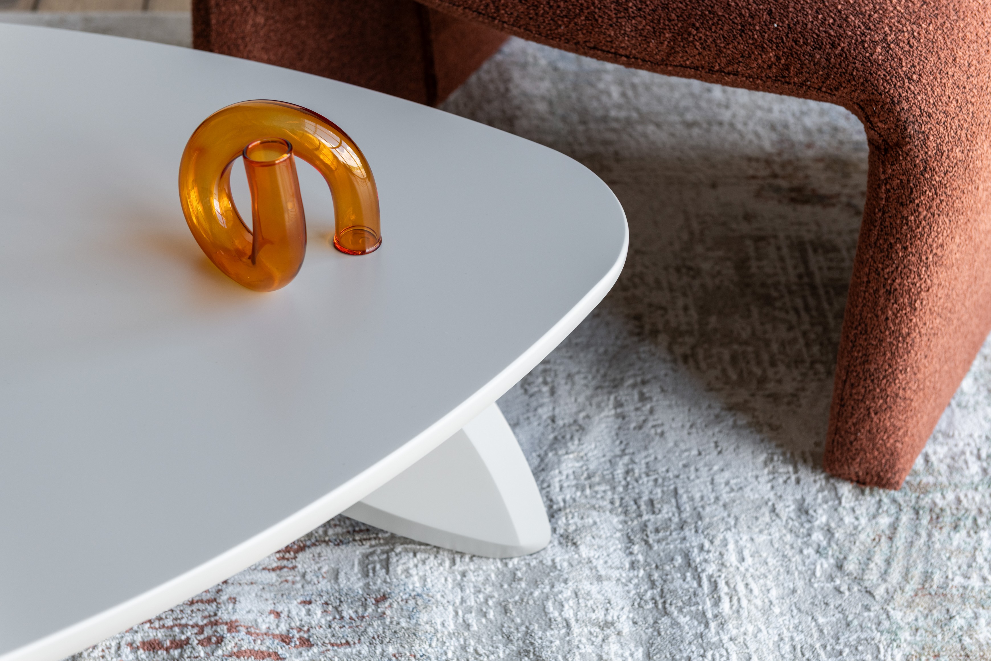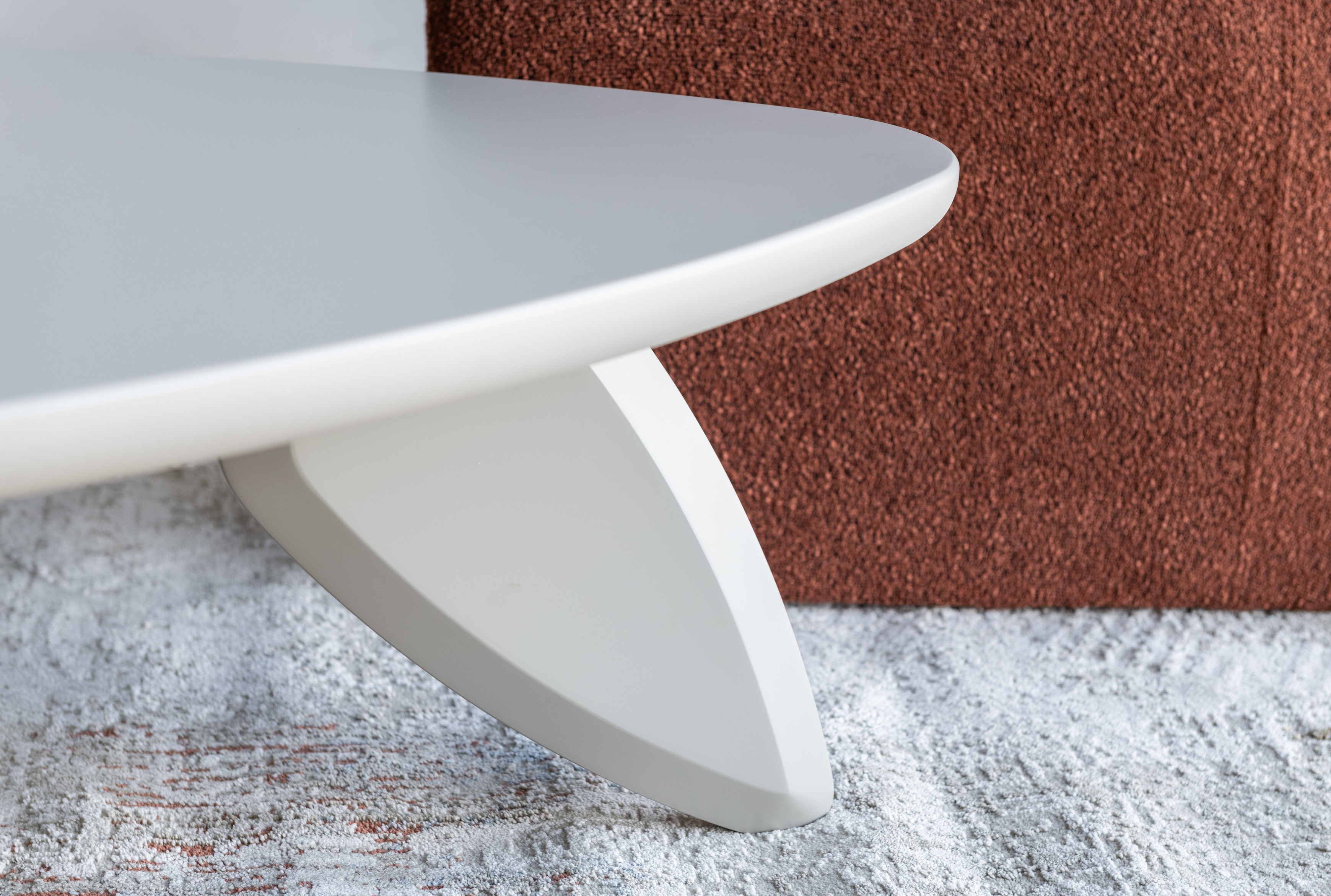 Стільниця та основа виготовлені з МДФ, покритого матовим поліуретановим фарбуванням, що створює приємну на дотик поверхню з глибоким, стриманим відтінком. Матове покриття надає виробу стриманої елегантності й гармонійно поєднується з натуральними текстурами в інтер’єрі.