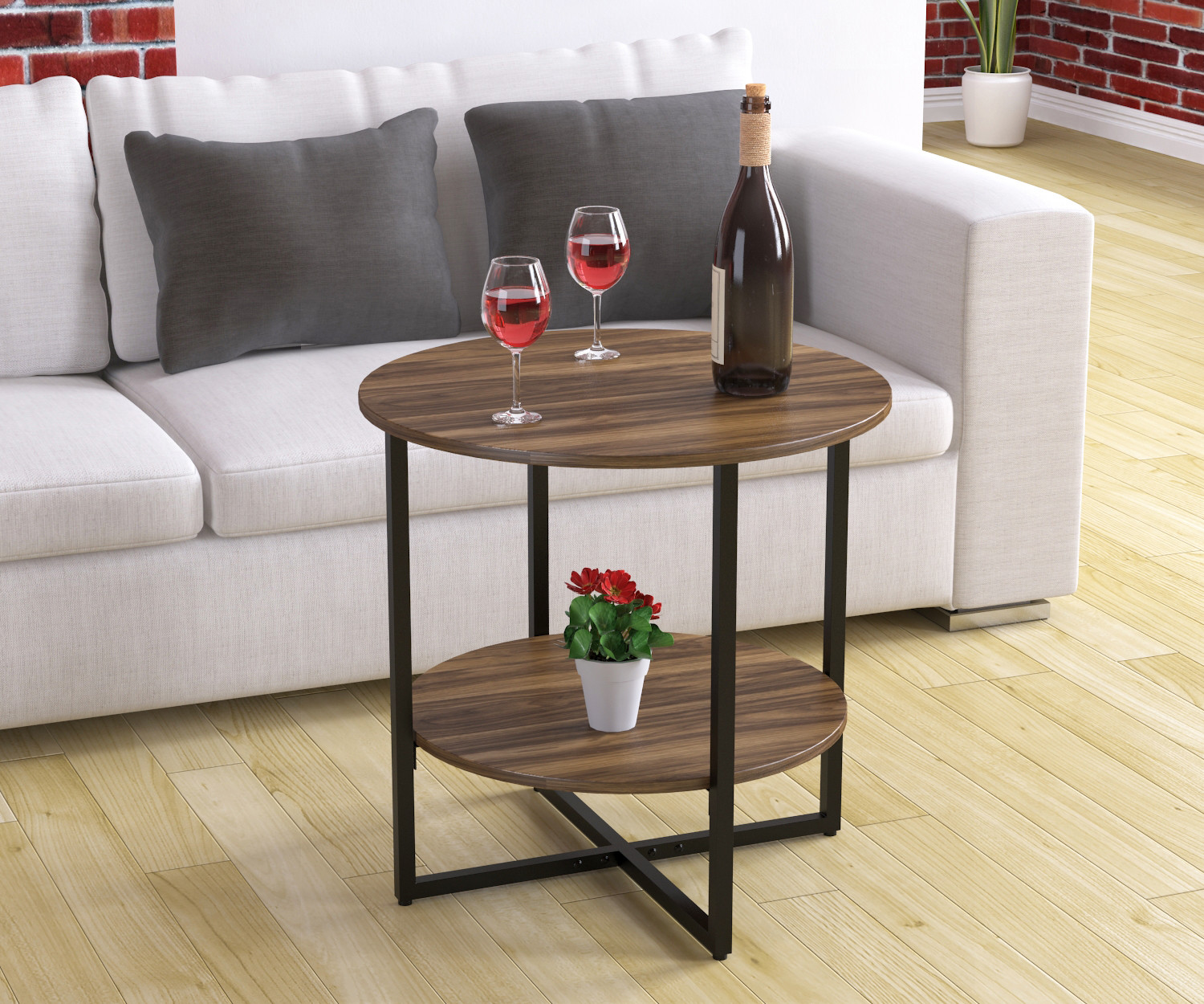 Столик складається з розбірного металевого каркаса, стільниці та нижньої полиці. Основа виготовлена з металевих труб 20х20 мм. Метал пофарбований у чорний колір, методом порошкового напилення. Завдяки такому покриттю поверхня металу має більш естетичний вигляд і тривалий термін служби. В основі встановлені регульовані ніжки. Вони дадуть змогу компенсувати всі нерівності поверхні, а також захистять від виникнення подряпин і потертостей на поверхні підлоги. Стільниці виготовлені з ЛДСП завтовшки 18 мм. З представлених кольорів ЛДСП ви зможете вибрати саме той, який підійде під ваш інтер'єр. Для створення журнального столика використовували якісні та міцні матеріали. Рекомендуємо вберігати журнальний столик від вологи і високих температур, щоб він довгий час зберігав свій первинний зовнішній вигляд.