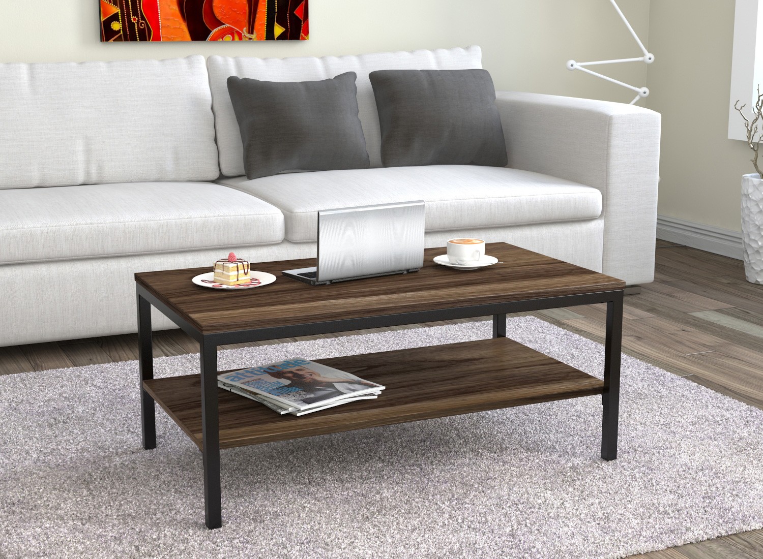 Журнальний столик L-1 від компанії Loft Design відмінно вписується практично в будь-який інтер'єр. Його виконано з ЛДСП товщиною 18 мм і кромкою 2 мм, а також металевого каркасу профілем 25*25 з чорним матовим окрасом.