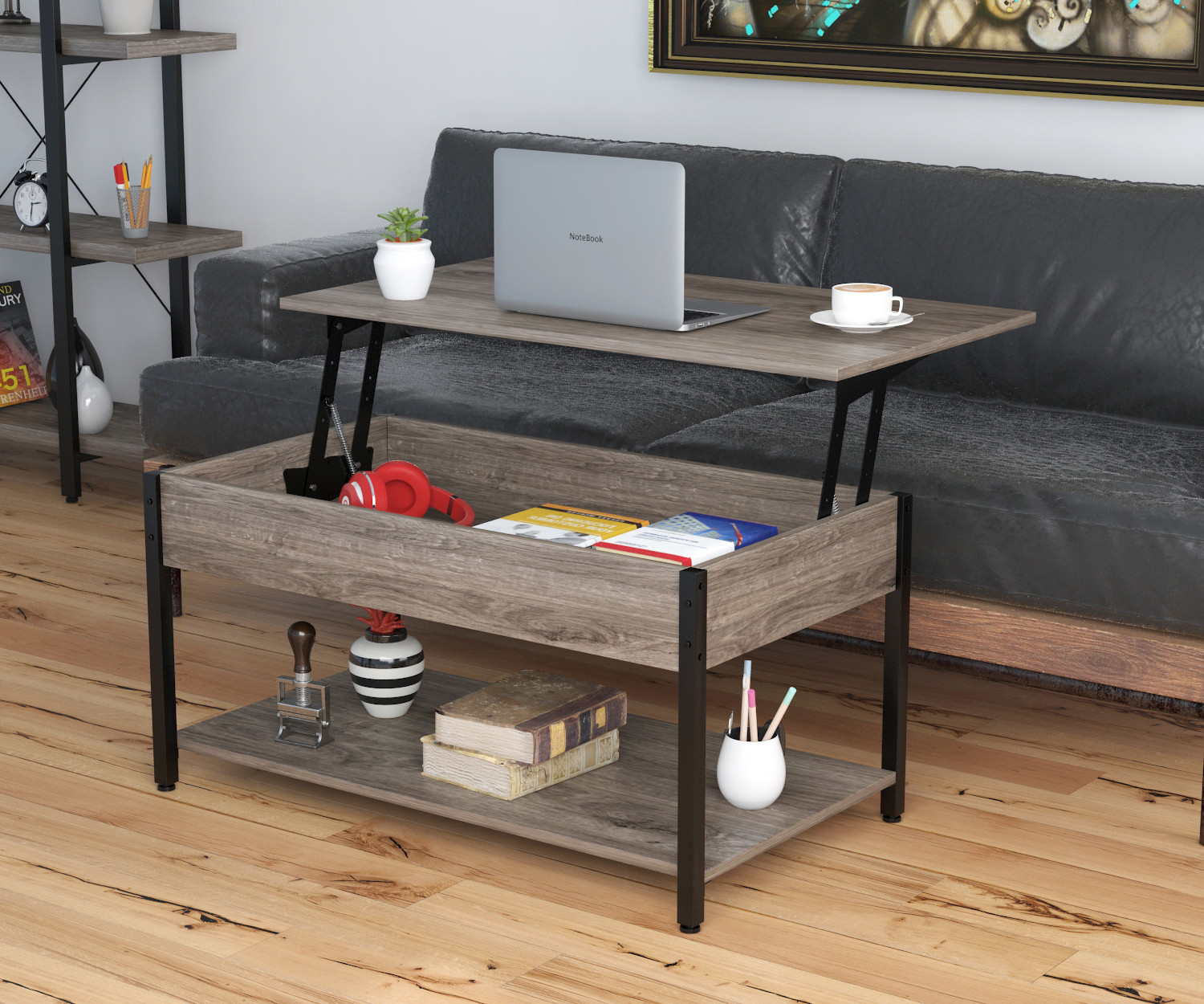 L-5 slider від компанії Loft Design - це журнальний столик з унікальною підйомною конструкцією, яка дозволяє трансформувати його в робочий стіл або компактний обідній стіл, коли ви відпочиваєте на дивані. Ви можете легко насолоджуватися роботою з ноутбуком або їжею перед журнальним столиком з підйомною стільницею, оскільки стільниця фіксується на оптимальній висоті Під стільницею є місткий простір для зберігання різних предметів: настільних ігор, іграшок, посуду, закусок і т.д. Відкрита полиця внизу також дуже функціональна, - на неї можна складати використаний посуд, подушки, плед, журнали та книги.