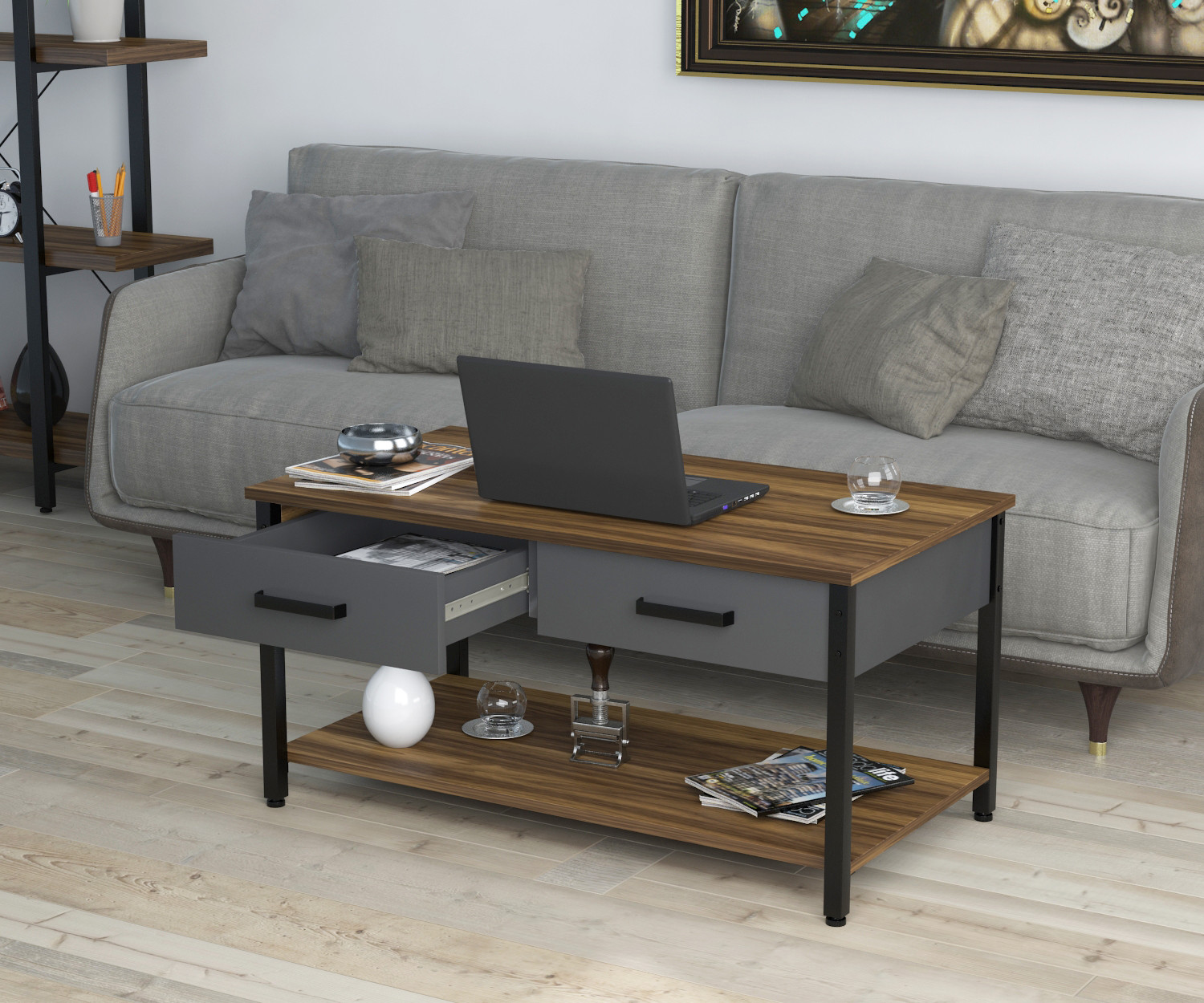 Журнальний столик L-6 від компанії Loft Design – це стильний та функціональний предмет інтер'єру. Завдяки висувним шухлядам він є не тільки поверхнею для предметів, але місцем для зберігання. Столик виконаний у сучасному стилі – мінімалізм. А завдяки вставкам у кольорі Антрацит, чорним ручкам та металевим ніжкам він чудово впишеться в інтер'єр у стилі Лофт.