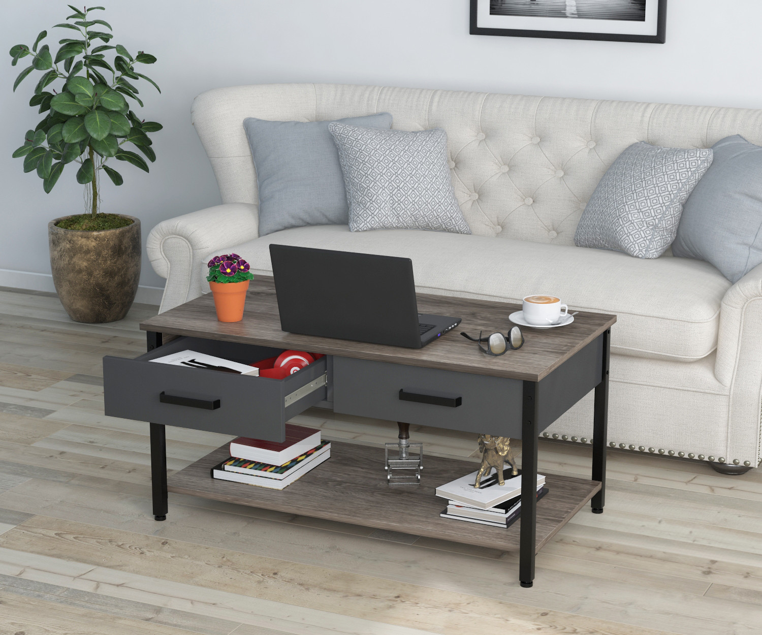 Журнальний столик L-6 від компанії Loft Design – це стильний та функціональний предмет інтер'єру. Завдяки висувним шухлядам він є не тільки поверхнею для предметів, але місцем для зберігання. Столик виконаний у сучасному стилі – мінімалізм. А завдяки вставкам у кольорі Антрацит, чорним ручкам та металевим ніжкам він чудово впишеться в інтер'єр у стилі Лофт.