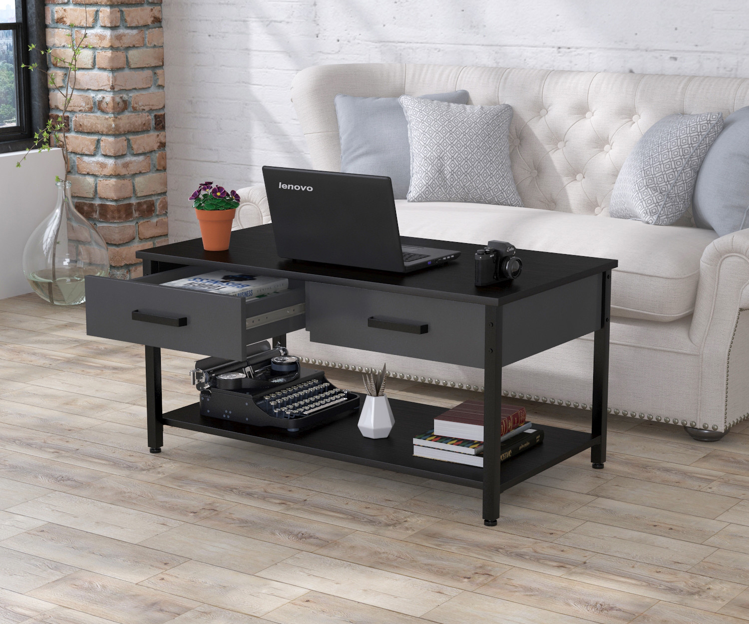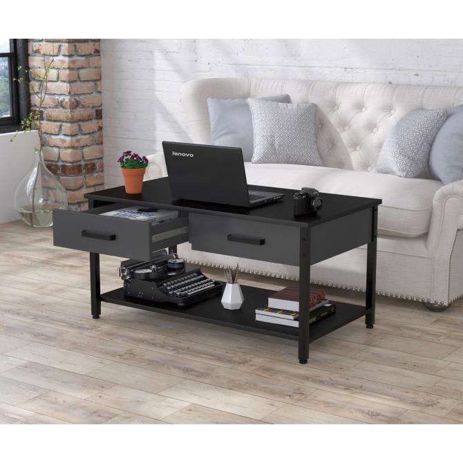 Журнальний столик L-6 від компанії Loft Design – це стильний та функціональний предмет інтер'єру. Завдяки висувним шухлядам він є не тільки поверхнею для предметів, але місцем для зберігання. Столик виконаний у сучасному стилі – мінімалізм. А завдяки вставкам у кольорі Антрацит, чорним ручкам та металевим ніжкам він чудово впишеться в інтер'єр у стилі Лофт.