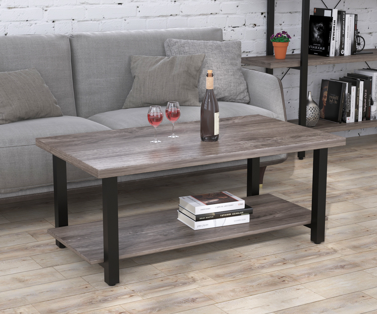 Столик складається з двох суцільнозварних опор, стільниці та нижньої полиці. Опори виготовлені з металевих труб товщиною 40х40 мм. Метал пофарбовано в чорний колір методом порошкового напилення. Завдяки такому покриттю поверхня металу має більш естетичний вигляд і тривалий термін служби. В основі встановлені регульовані ніжки. Вони дадуть змогу компенсувати всі нерівності поверхні, а також захистять від виникнення подряпин і потертостей на поверхні підлоги. Стільниця виготовлена з якісного і міцного ЛДСП товщиною 36 мм. Нижня поличка має товщину в 18 мм. З представлених кольорів ЛДСП ви зможете вибрати саме той, який підійде під ваш інтер'єр. Столик завдяки своїй конструкції може витримувати велике навантаження. Рекомендуємо вберігати журнальний столик від вологи і високих температур, щоб він довгий час зберігав свій первинний зовнішній вигляд.