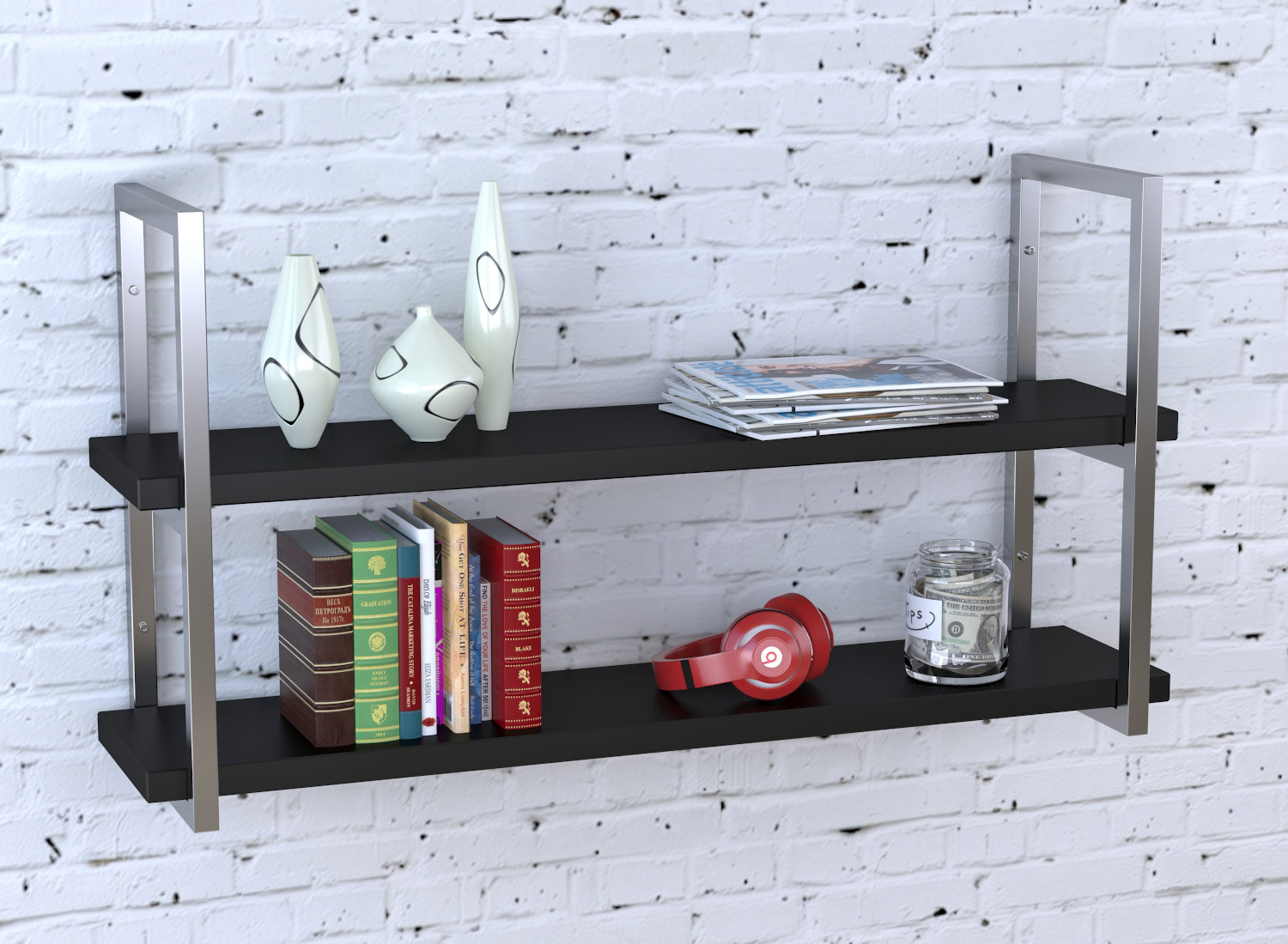 Стінна полиця PL-2 виробництва компанії Loft Design - втілення простоти, надійності, мінімалізму та наймоднішого на сьогодні стилю в інтер'єрі Лофт. Полиця не тільки гарна, але дуже містка. Ви можете скласти на полицю свої книги, речі якими користуєтеся або елементи декору. Товщина полиці 36 мм. Глибина полиці 250 мм. Металевий профіль 25*25 мм.
