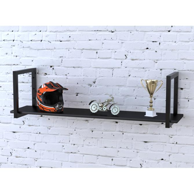 Виріб складається з двох кронштейнів з металевої труби 25х25мм, пофарбованих порошковою фарбою, і самої полиці з ламінованого ДСП товщиною 18 мм. Глибина ДСП складає 300 мм. Довжина полиці може бути в двох варіантах на Ваш вибір: 920 мм і 1120 мм. Придбати виріб можна окремо або в комплекті з іншими меблями. Якщо ви вже є власником меблів Loft Design (стіл, тумба, стелаж, журнальний столик, консоль), то полка стане чудовим аксесуаром, а ваш інтер'єр буде виглядати ще ефектніше.