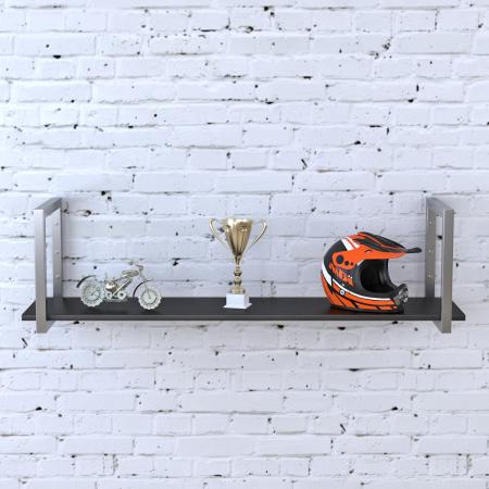 Полиці виконані з якісного ЛДСП і металу (пофарбованого чорною, білою або сріблястою порошковою фарбою). Доступно 6 варіантів забарвлення, що дозволяє підібрати полицю під будь-який інтер'єр — від стриманого однотонного мінімалізму до світлих і темних дерев'яних текстур.