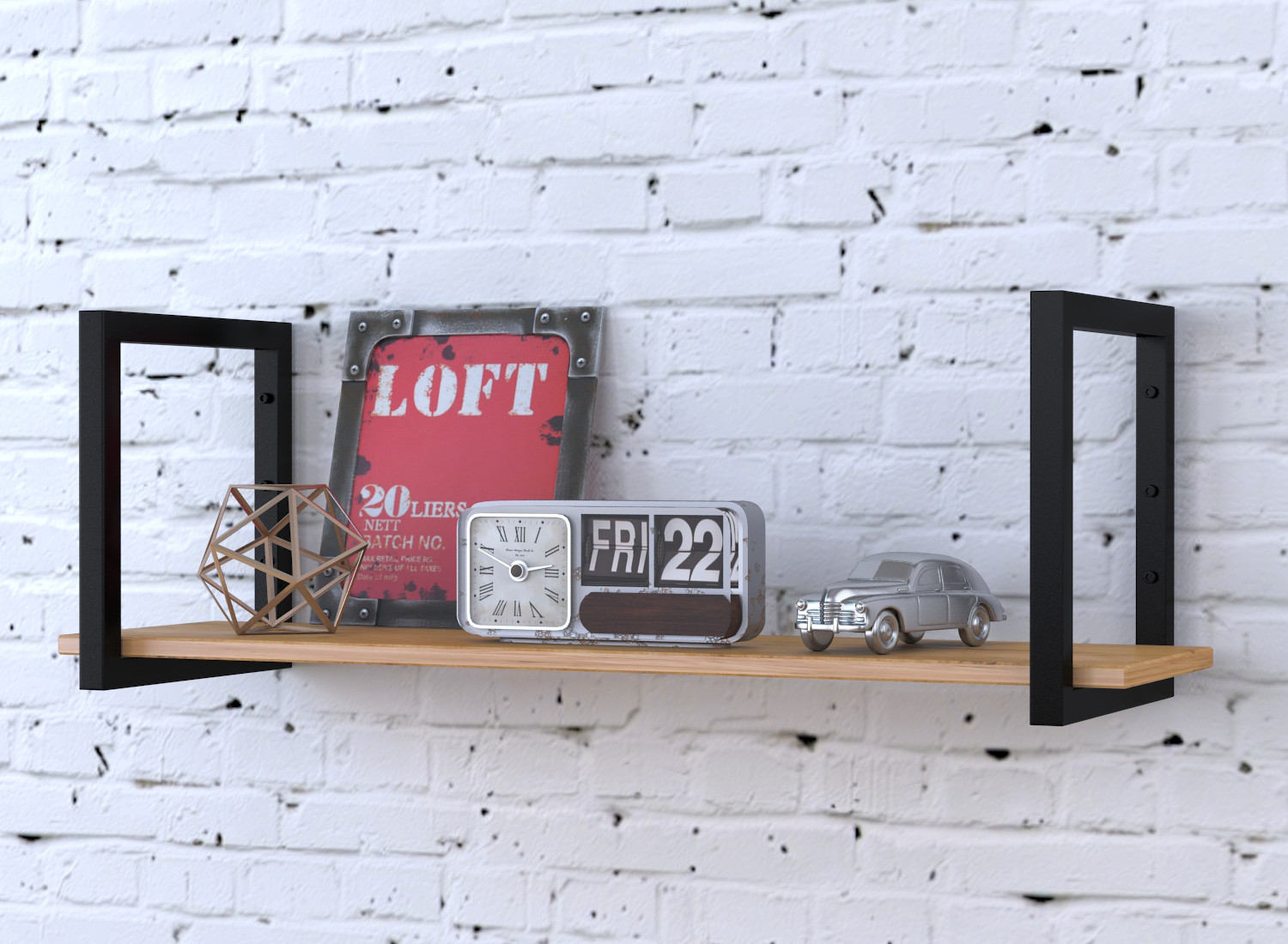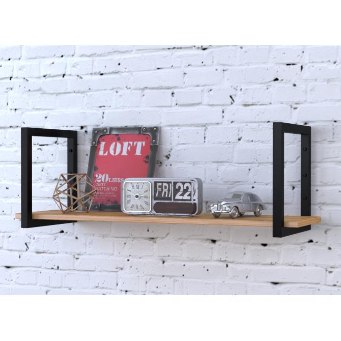 Настінна полиця PL-1-18 має класичний вид, виконана в стилі Лофт. Масивні металеві кронштейни є ідеальними для полки. Вони одночасно підтримують полку під ідеально прямим кутом, щодо стіни, і служать опорою для високих книг.