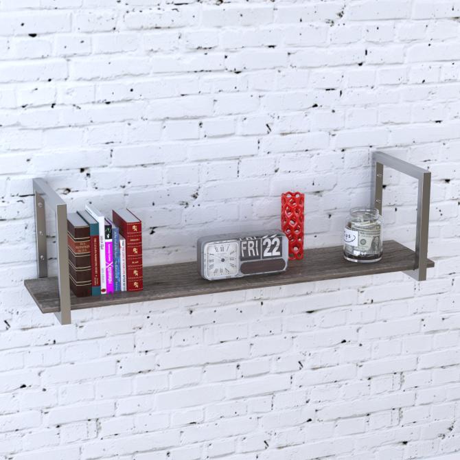 Настінна полиця PL-1-18 має класичний вид, виконана в стилі Лофт. Масивні металеві кронштейни є ідеальними для полки. Вони одночасно підтримують полку під ідеально прямим кутом, щодо стіни, і служать опорою для високих книг.