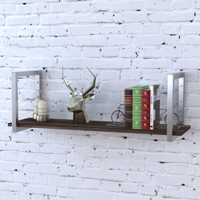 Настінна полиця PL-1-18 має класичний вид, виконана в стилі Лофт. Масивні металеві кронштейни є ідеальними для полки. Вони одночасно підтримують полку під ідеально прямим кутом, щодо стіни, і служать опорою для високих книг.