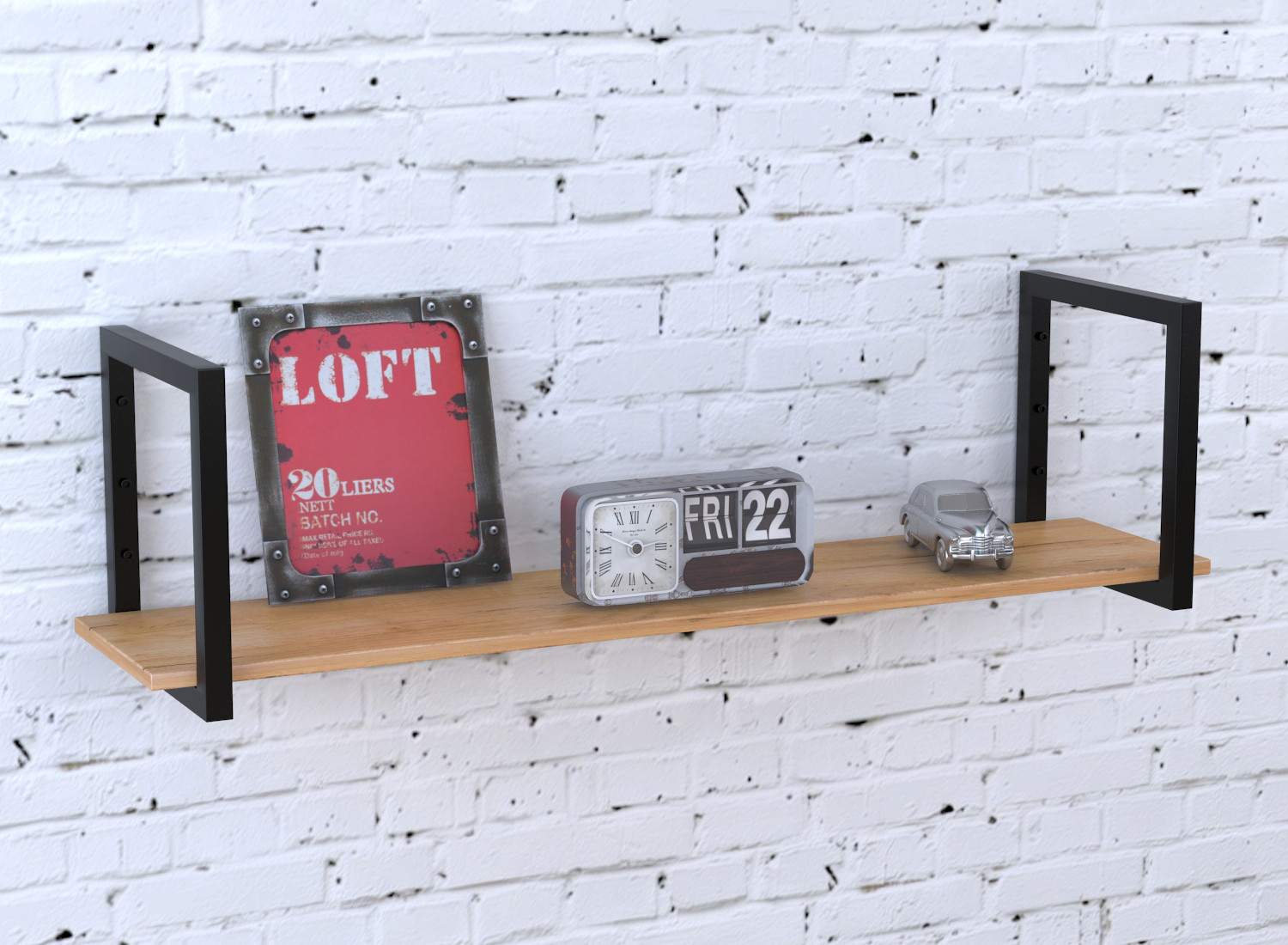 Настінна полиця PL-1-18 має класичний вид, виконана в стилі Лофт. Масивні металеві кронштейни є ідеальними для полки. Вони одночасно підтримують полку під ідеально прямим кутом, щодо стіни, і служать опорою для високих книг.