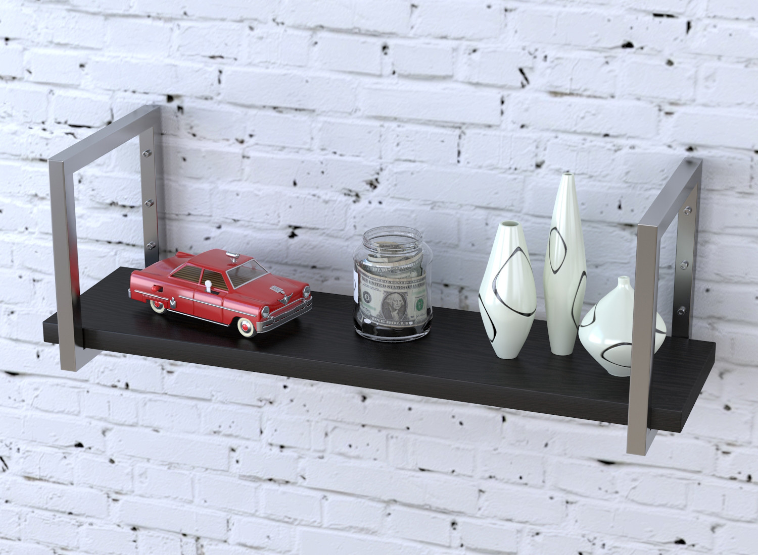 Полка PL-1-36 виробництва компанії Loft Design - красива, модна і практична. Полка складається з двох металевих полкодержателів і полки з ламінованого ДСП.