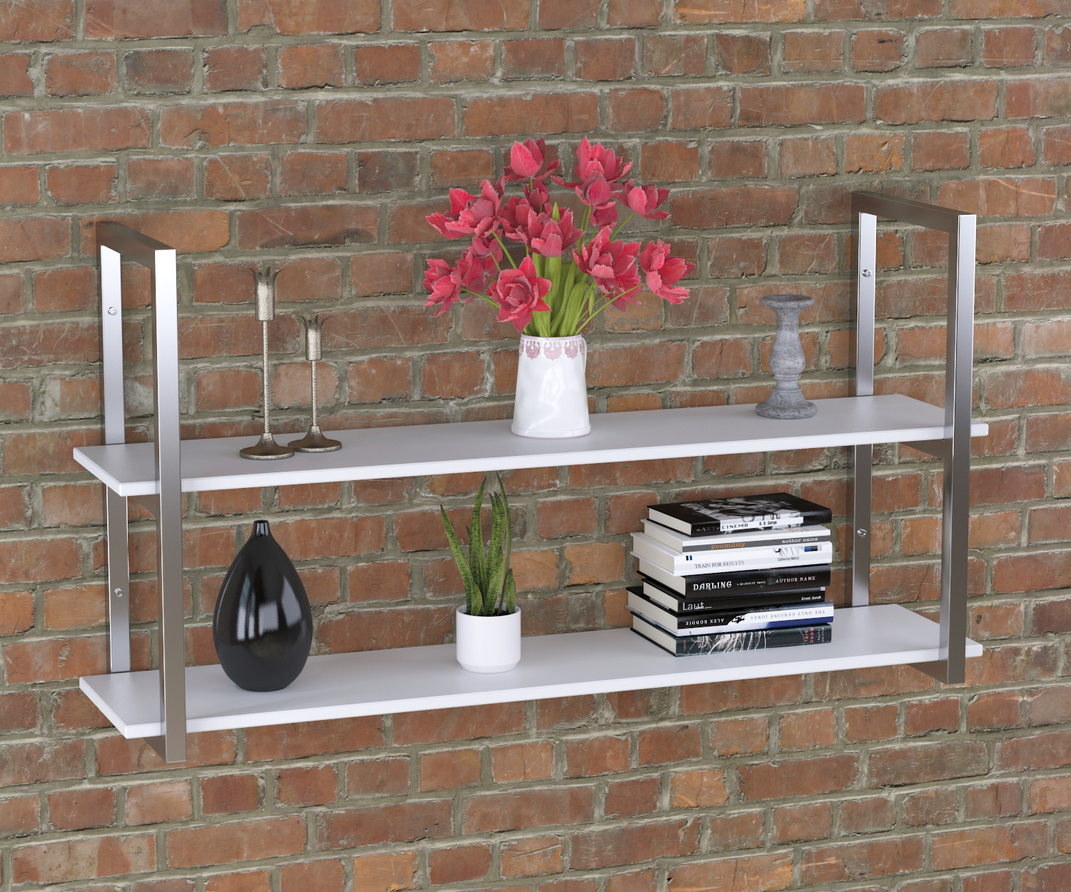 Полиця складається з двох металевих кронштейнів і двох полиць з ламінованого ДСП товщиною 18 мм. Глибина полки 250 мм. Металевий профіль 25*25 мм.