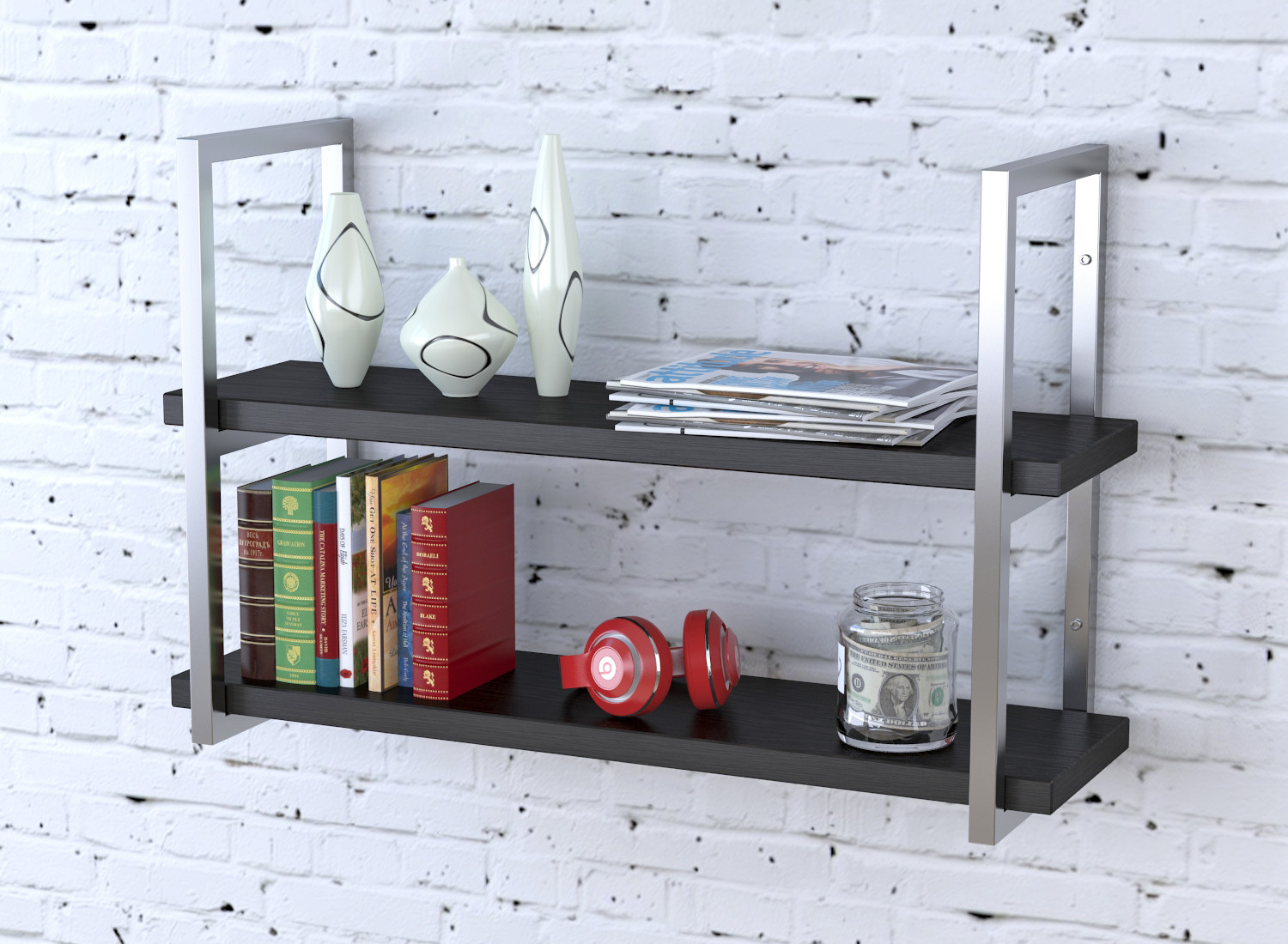 Полиця складається з двох металевих каркасів і двох полиць з ламінованого ДСП. Товщина полиці 36 мм. Глибина полки 250 мм. Металевий профіль 25*25 мм.