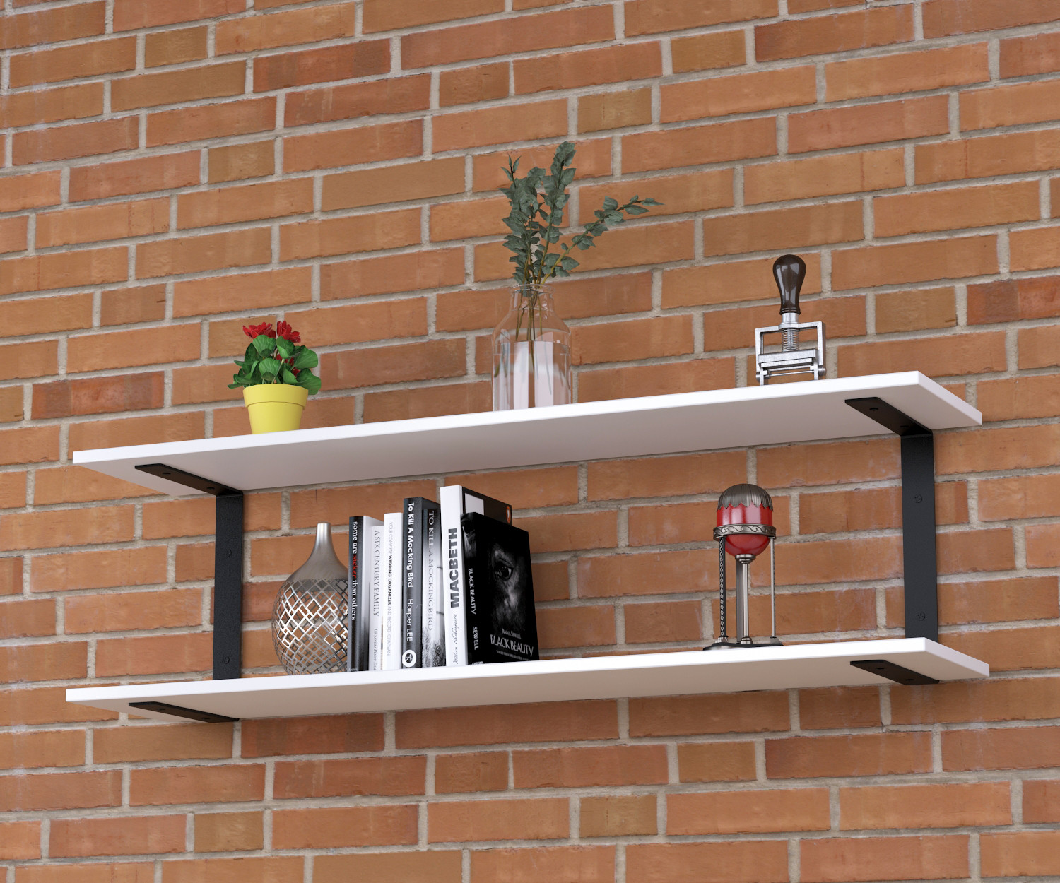 Полиця складається з двох металевих кронштейнів, виготовлених з листового металу товщиною 4 мм, та двох полиць з ламінованої ДСП товщиною 18 мм. Глибина кожної полиці становить 254 мм. Відстань між полицями становить 284 мм.