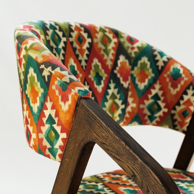 Крісло відрізняється комфортною посадкою, що забезпечується зручним вигином спинки і дерев'яними підлокітниками. Воно стане вигідним доповненням інтер'єру кожної кухні або їдальні, підійде для використання в барах і кафе.