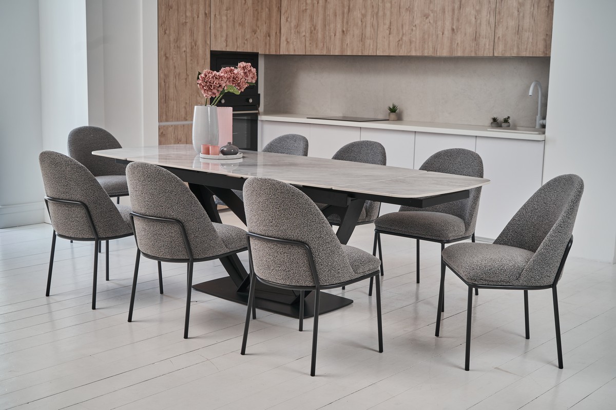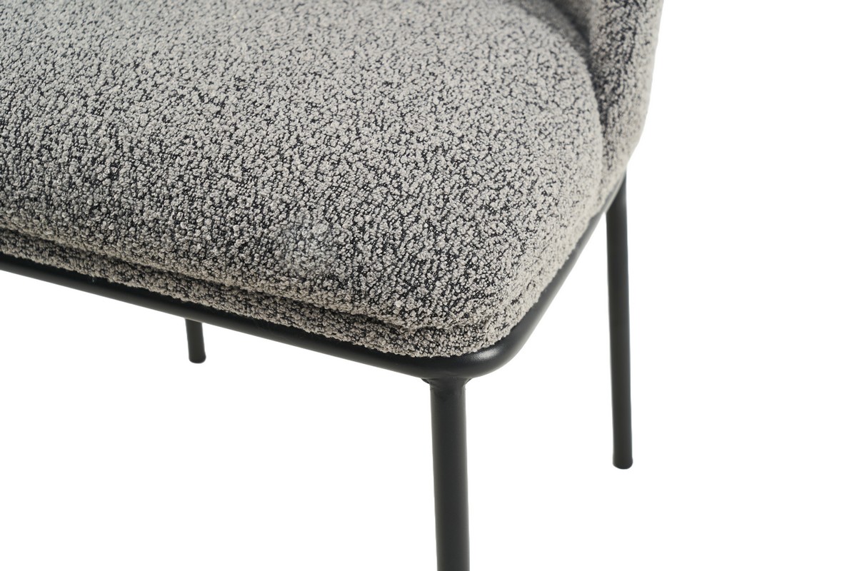 Сірий букле – це матеріал, який поєднує в собі елегантність, текстуровану поверхню та нейтральний відтінок, що дозволяє йому гармонійно вписуватися в різні стилі інтер'єру. Сірий колір є універсальним, що робить його легко поєднуваним з іншими кольорами та матеріалами.