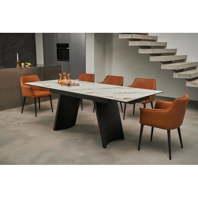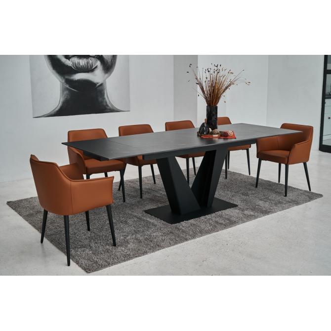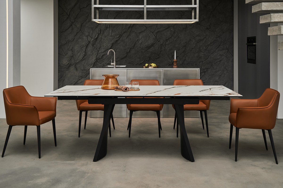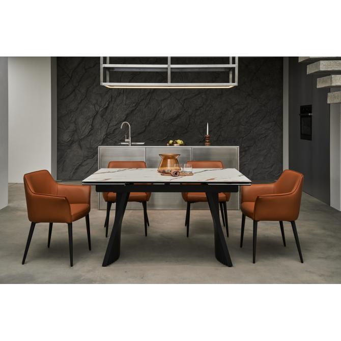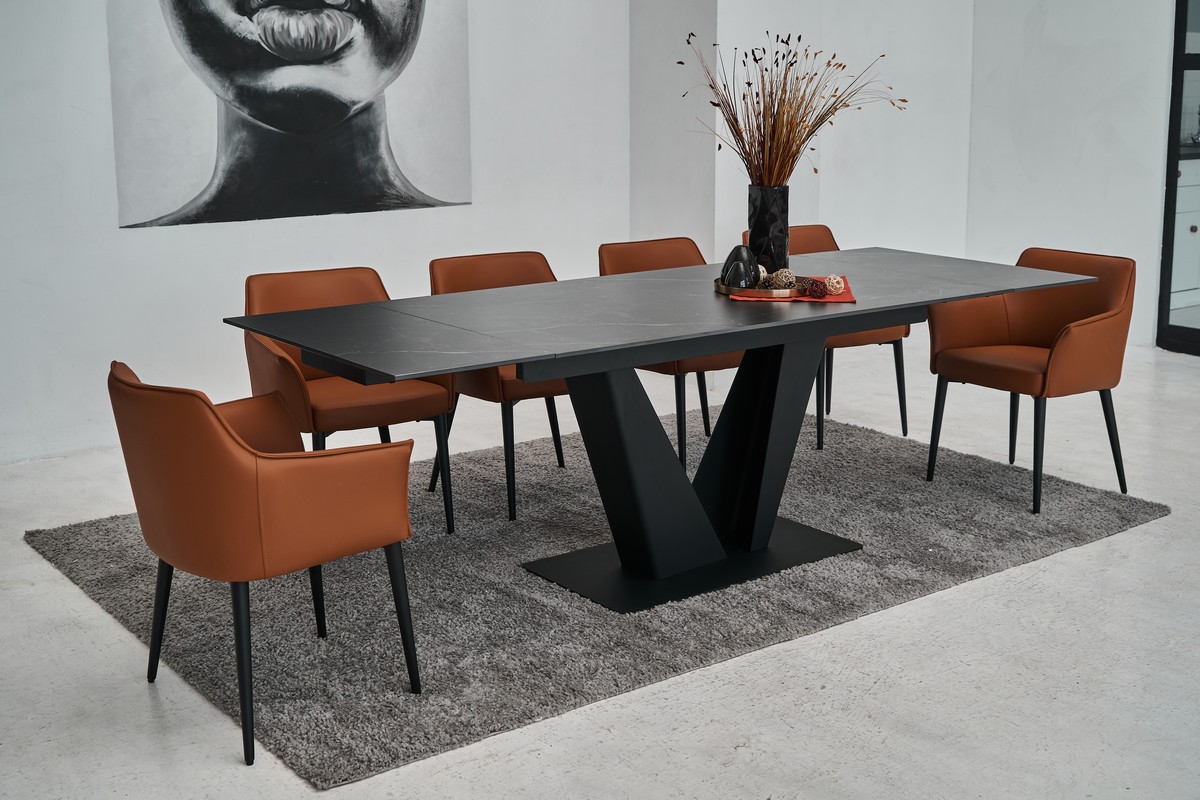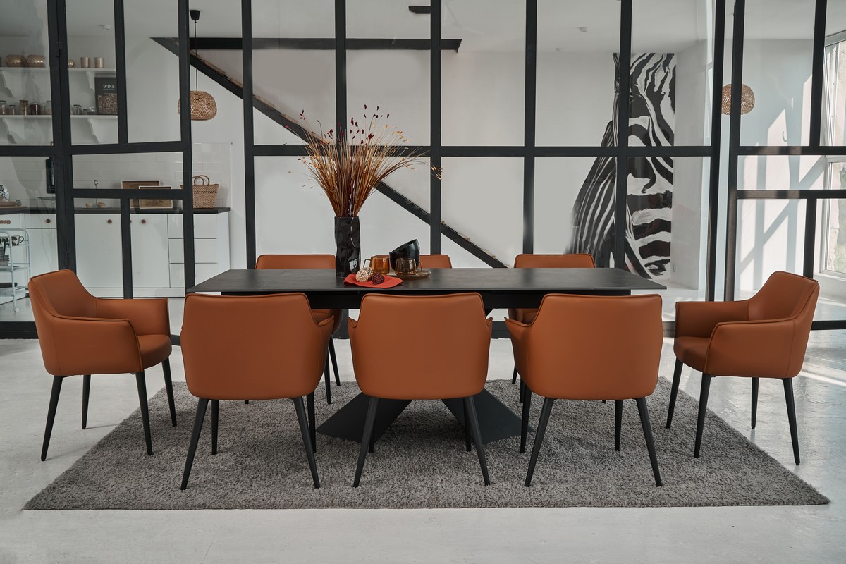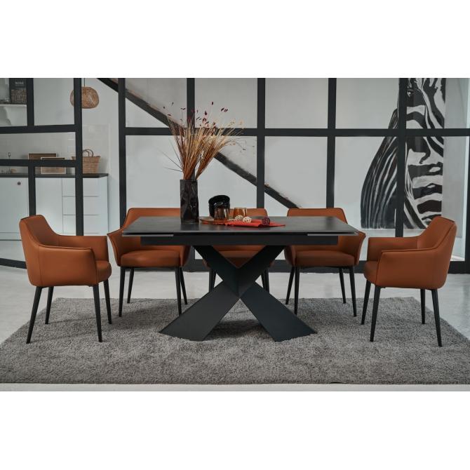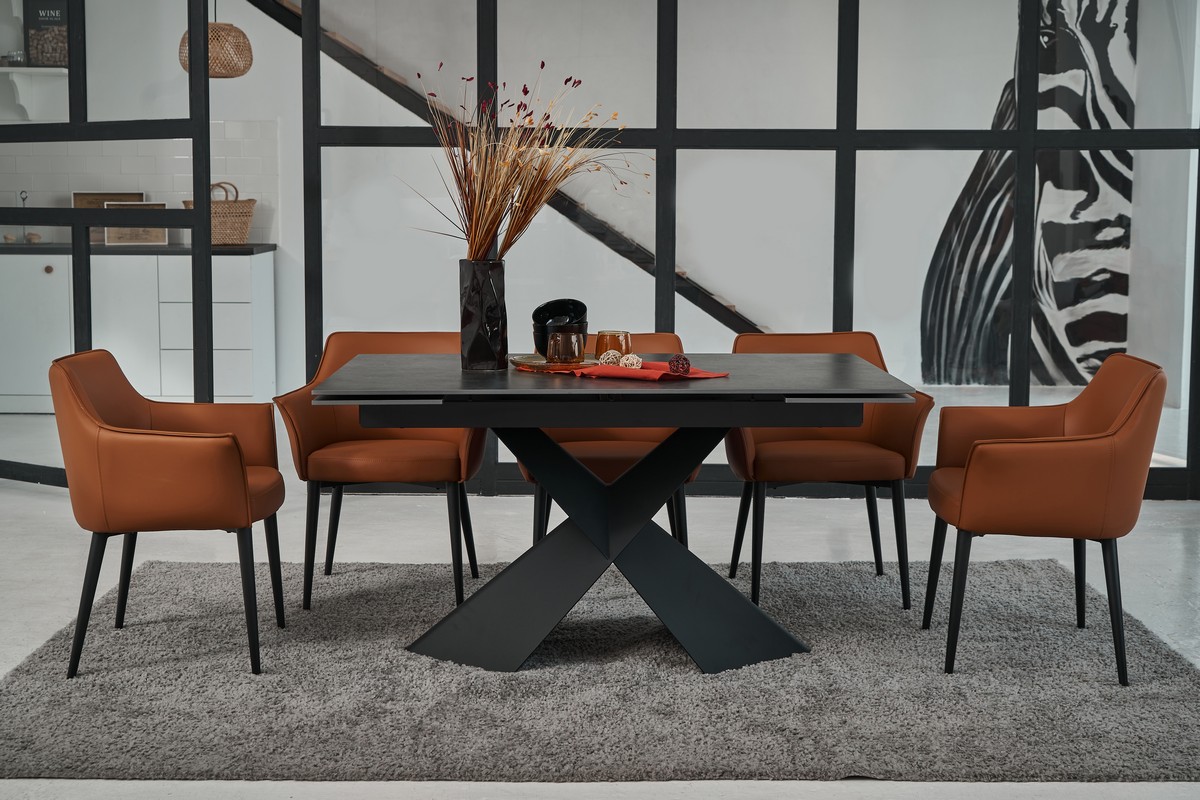 Фарбований метал забезпечує міцність і стабільність конструкції, а чорний колір додає елегантності та гармонійно поєднується з оббивкою.