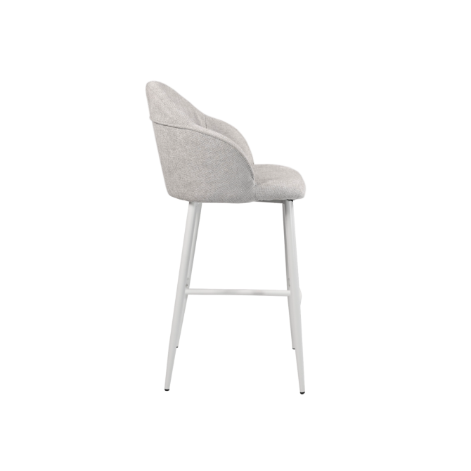 Міцна металева основа, пофарбована у витончений білий колір, додає стільцю легкості та візуальної гармонії. Завдяки висоті сидіння 68,5 см, модель ідеально підходить для кухонних островів і барних зон середньої висоти, а продумана ергономіка дозволяє зручно розташуватися навіть на тривалий час.