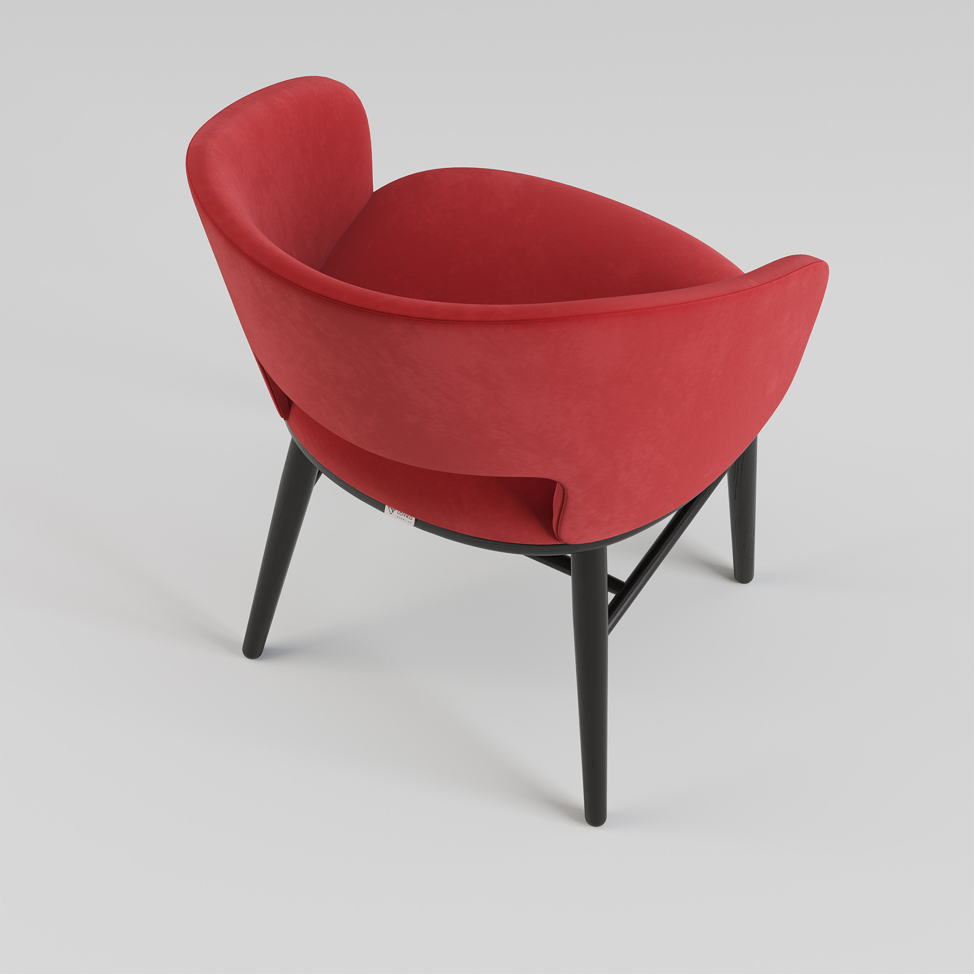 Стілець Dolphin — це поєднання м’якості форм і природної міцності деревини. Ергономічна спинка з характерним вирізом створює ефект легкості, водночас забезпечуючи комфортну підтримку під час сидіння. Каркас виготовлений із масиву ясеня, що гарантує довговічність та стабільність конструкції. М’яке сидіння та спинка обтягнуті якісною тканиною, приємною на дотик і стійкою до зносу.