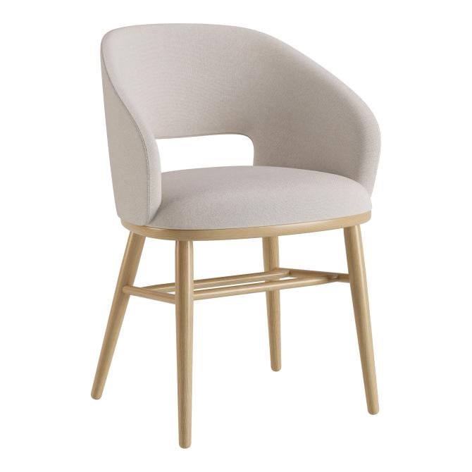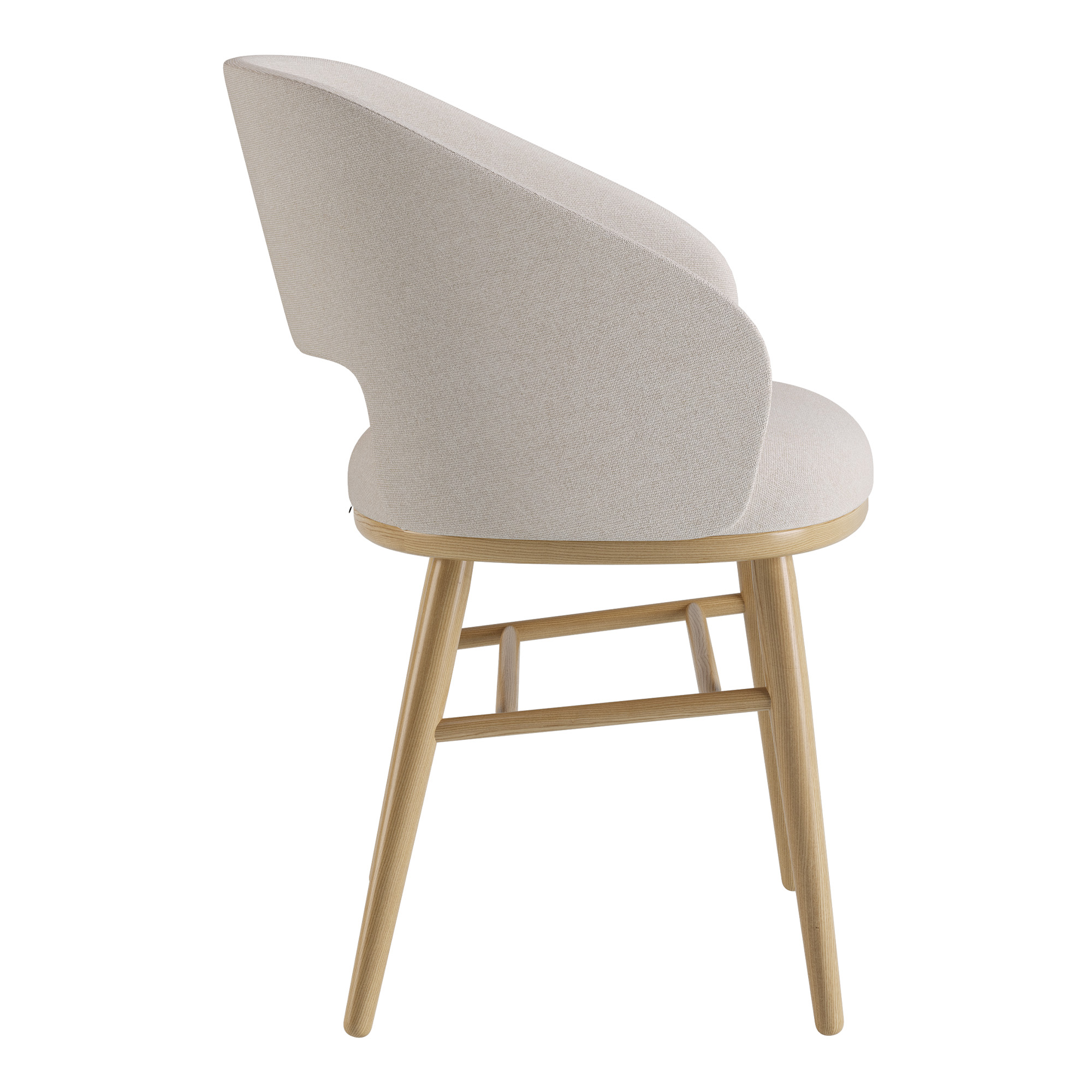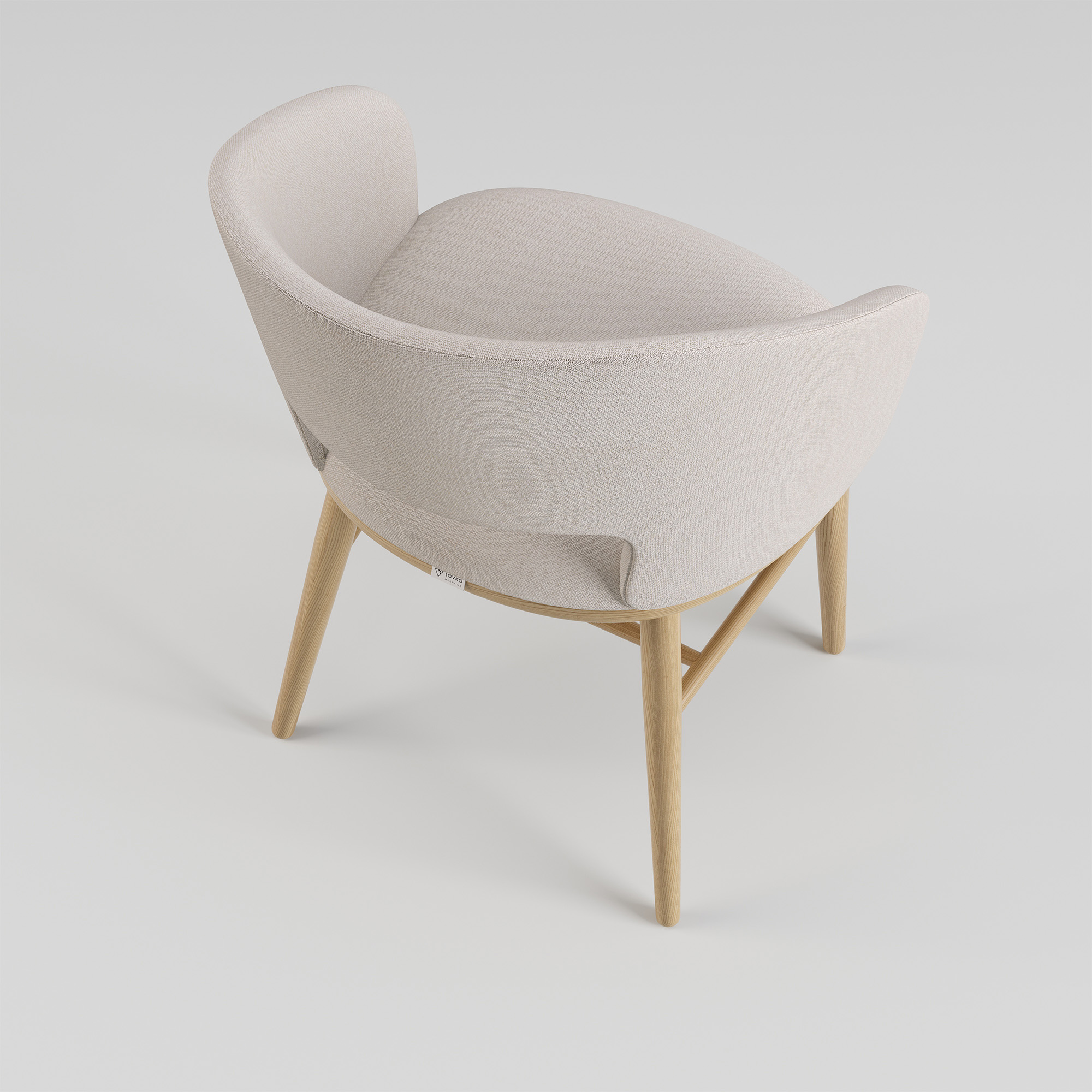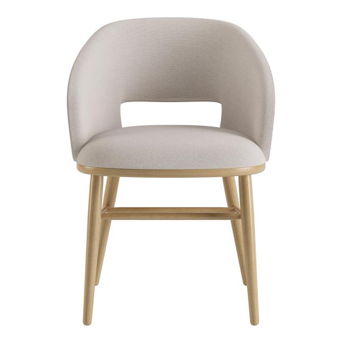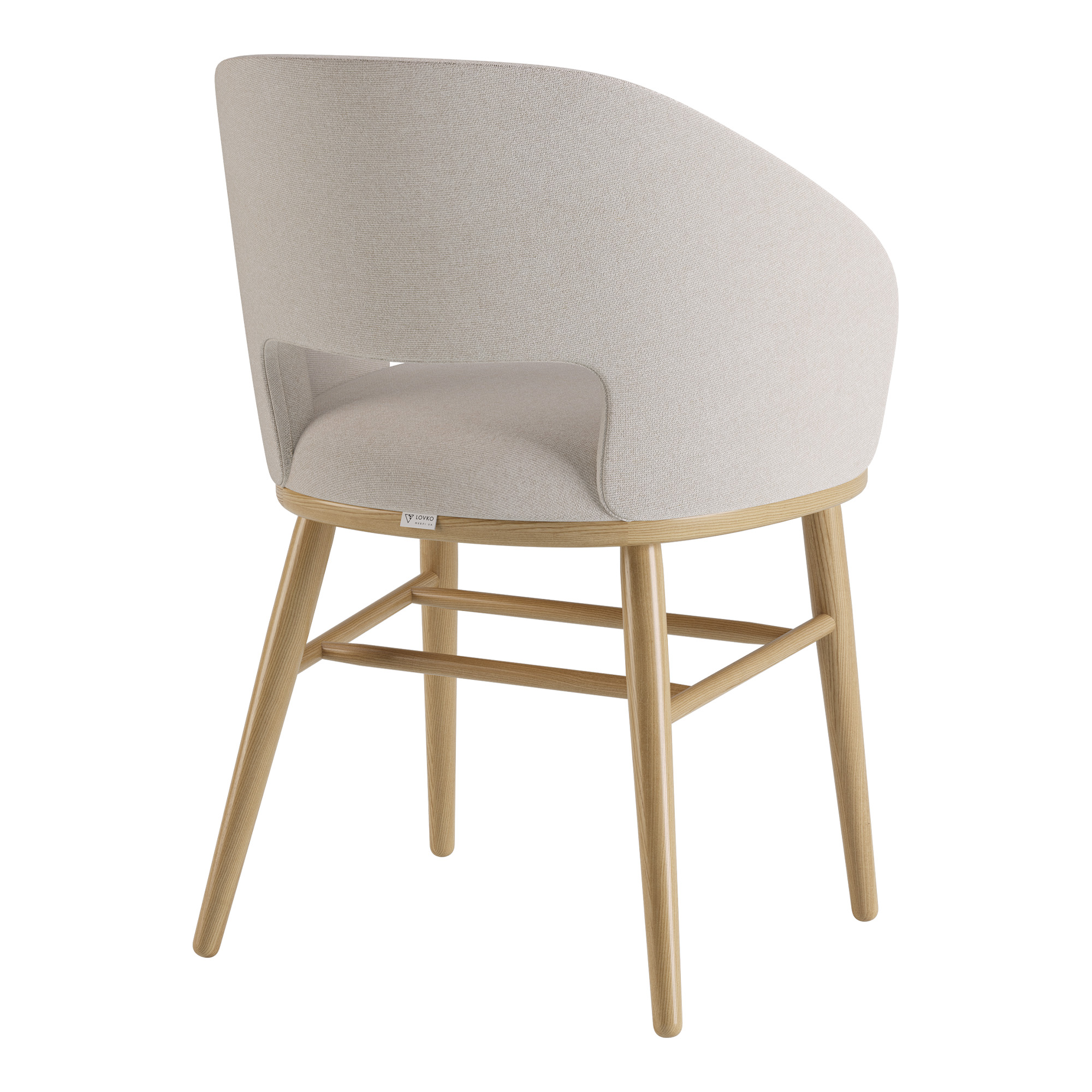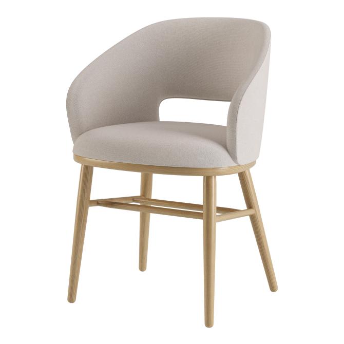 Стілець Dolphin — це поєднання м’якості форм і природної міцності деревини. Ергономічна спинка з характерним вирізом створює ефект легкості, водночас забезпечуючи комфортну підтримку під час сидіння. Каркас виготовлений із масиву ясеня, що гарантує довговічність та стабільність конструкції. М’яке сидіння та спинка обтягнуті якісною тканиною, приємною на дотик і стійкою до зносу.