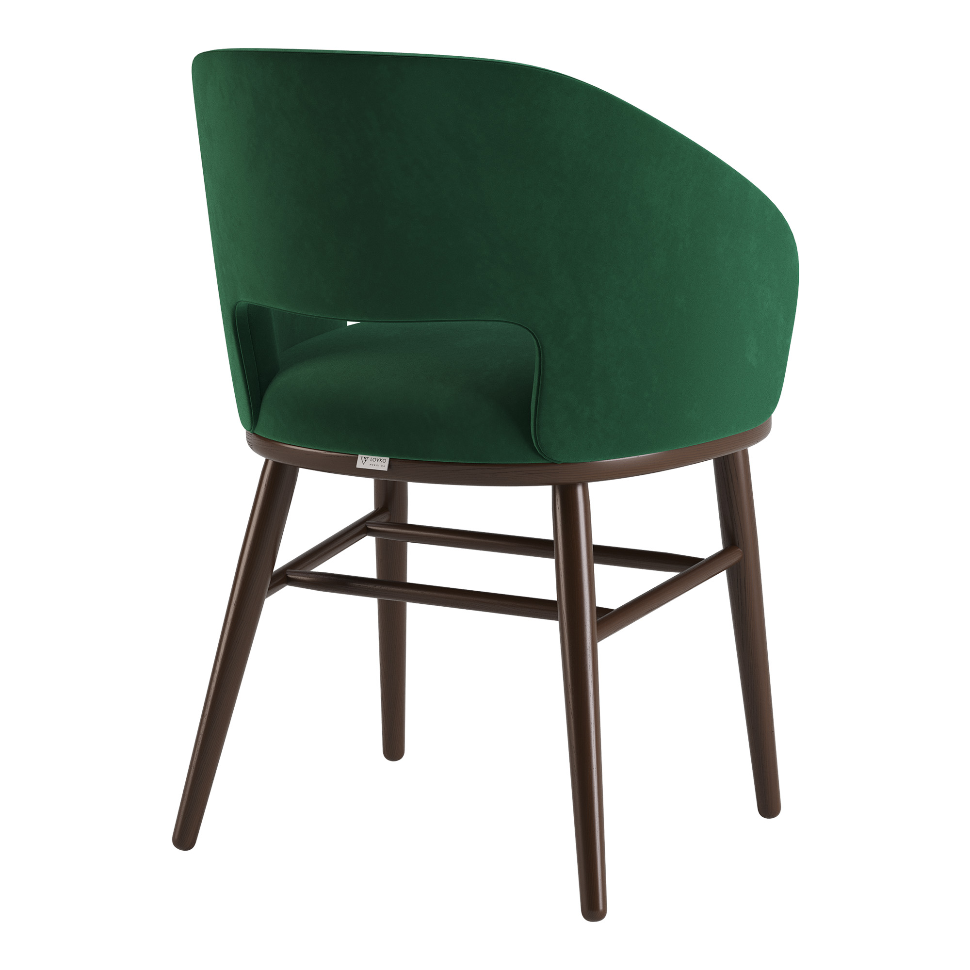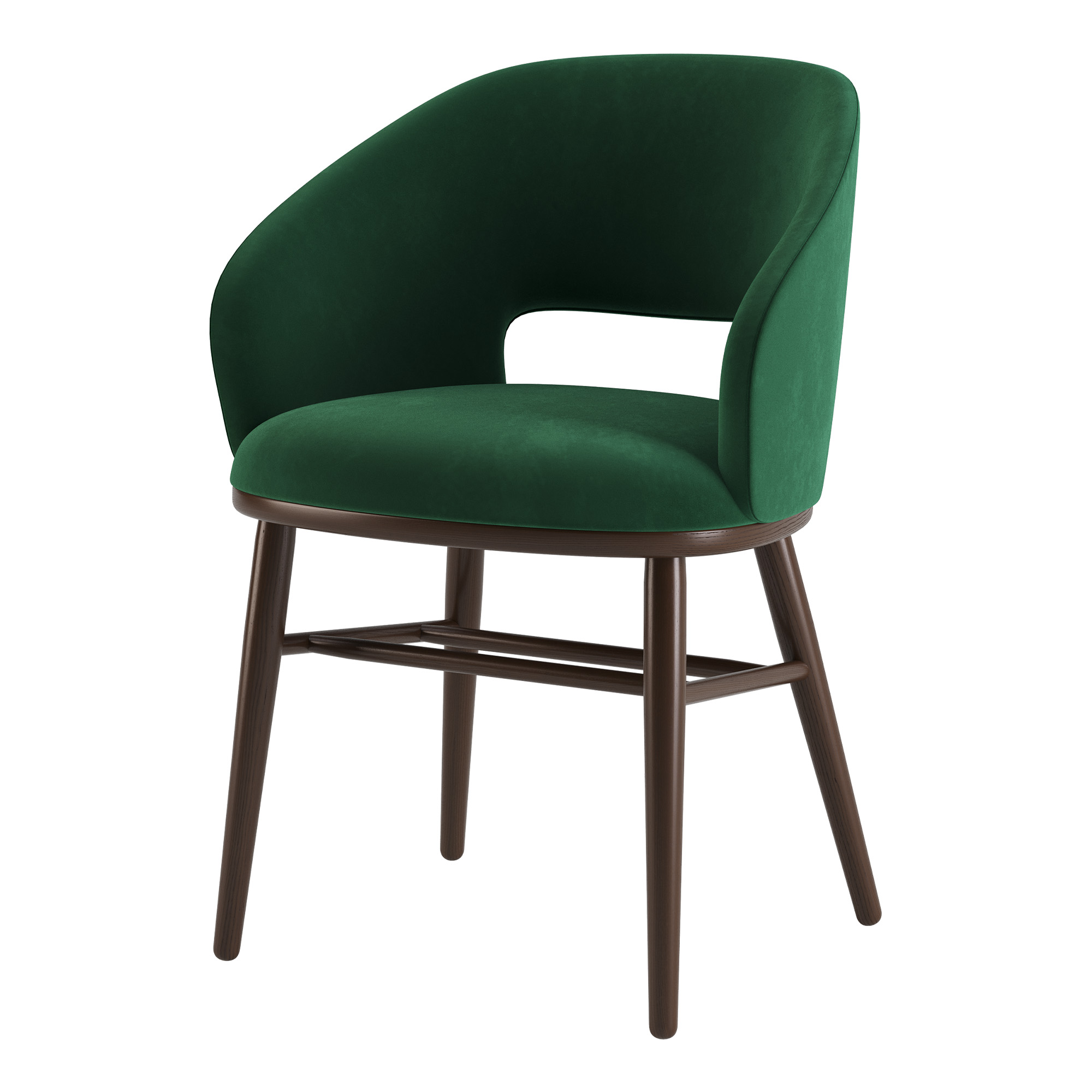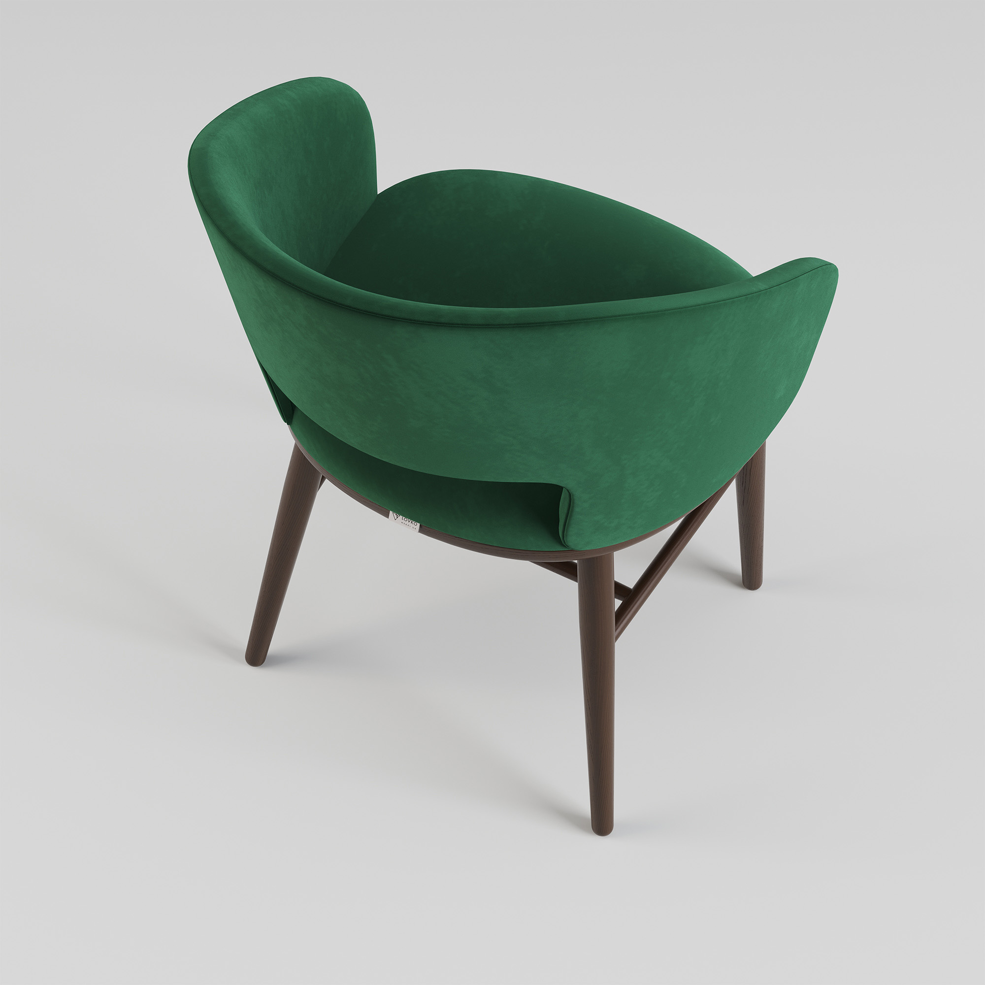 Стілець Dolphin — це поєднання м’якості форм і природної міцності деревини. Ергономічна спинка з характерним вирізом створює ефект легкості, водночас забезпечуючи комфортну підтримку під час сидіння. Каркас виготовлений із масиву ясеня, що гарантує довговічність та стабільність конструкції. М’яке сидіння та спинка обтягнуті якісною тканиною, приємною на дотик і стійкою до зносу.