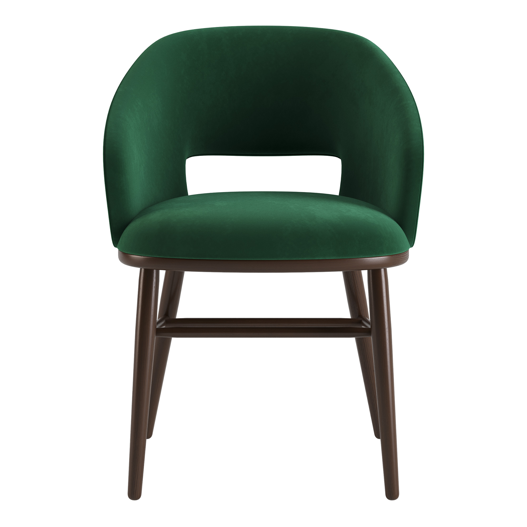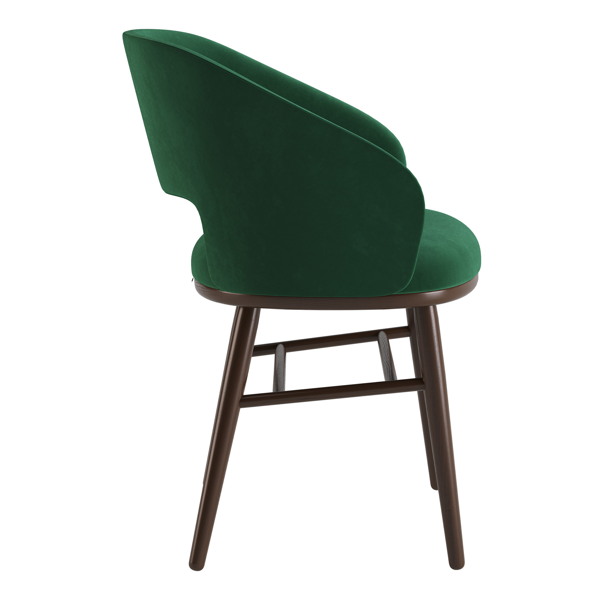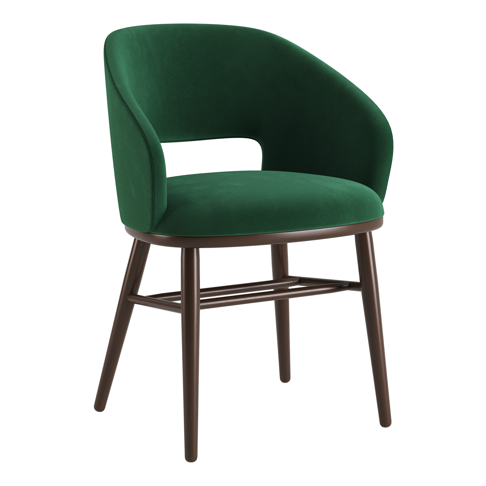 Стілець Dolphin — це поєднання м’якості форм і природної міцності деревини. Ергономічна спинка з характерним вирізом створює ефект легкості, водночас забезпечуючи комфортну підтримку під час сидіння. Каркас виготовлений із масиву ясеня, що гарантує довговічність та стабільність конструкції. М’яке сидіння та спинка обтягнуті якісною тканиною, приємною на дотик і стійкою до зносу.