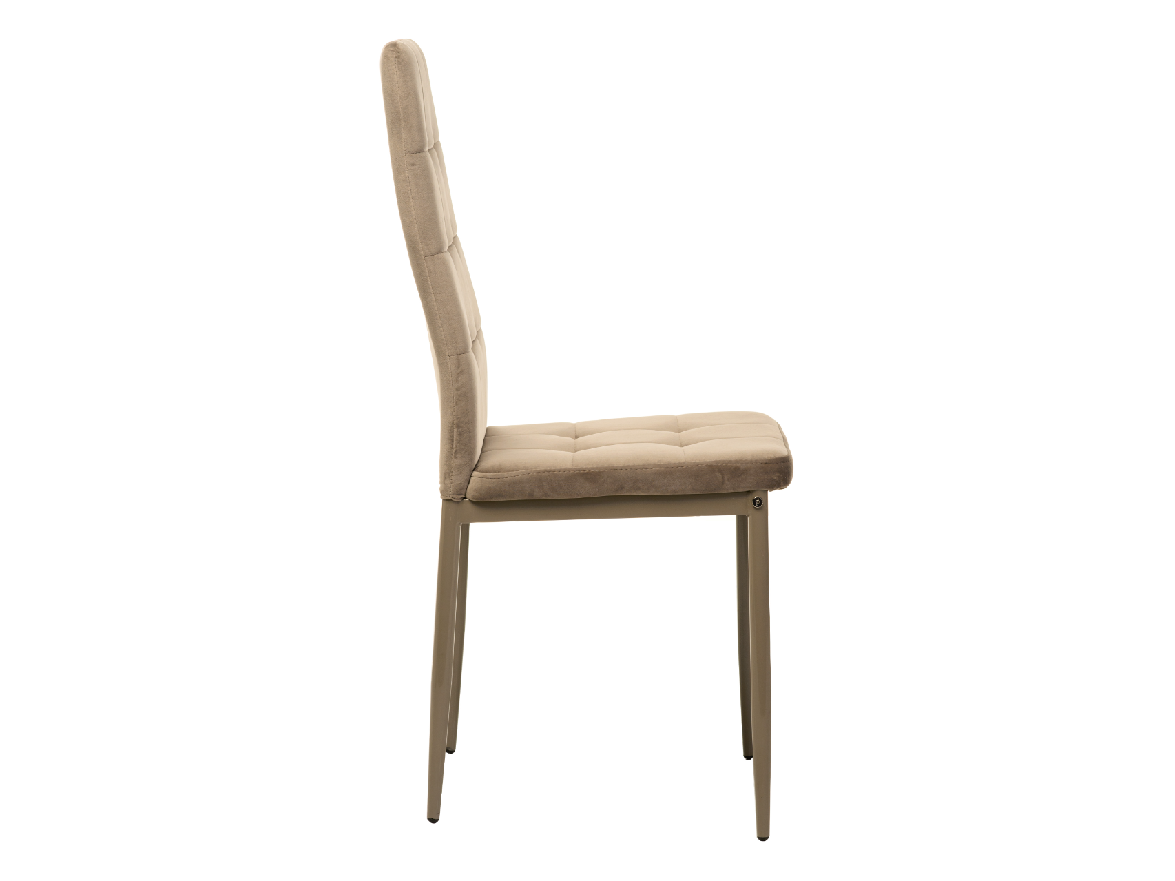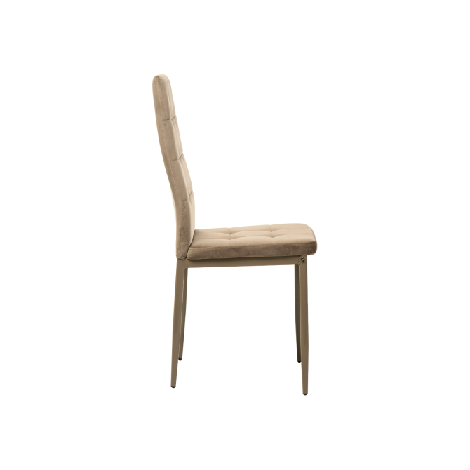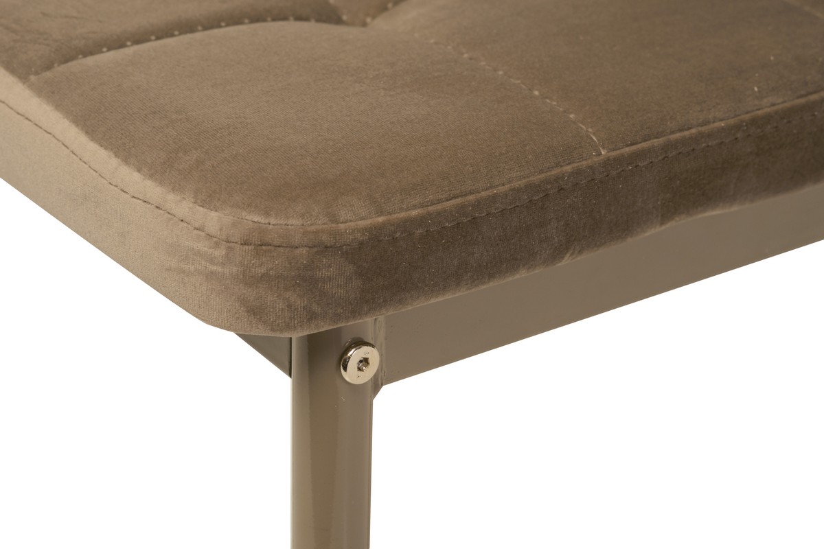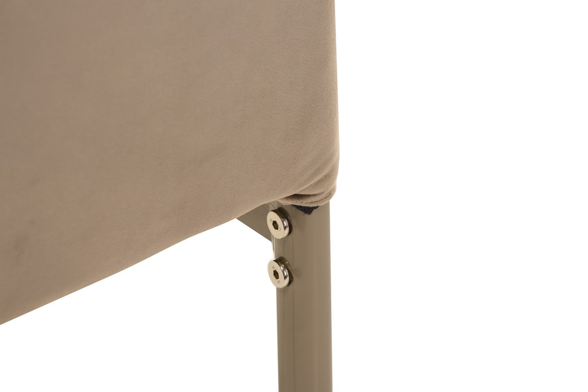 Металева основа кольору капучино додає виробу глибини та стильності. Її витончене фарбування гармонійно доповнює ніжний тон оббивки, створюючи завершений образ. Ергономічна форма сидіння і спинки забезпечує комфорт навіть при тривалому сидінні, даруючи відчуття легкості та розслаблення.