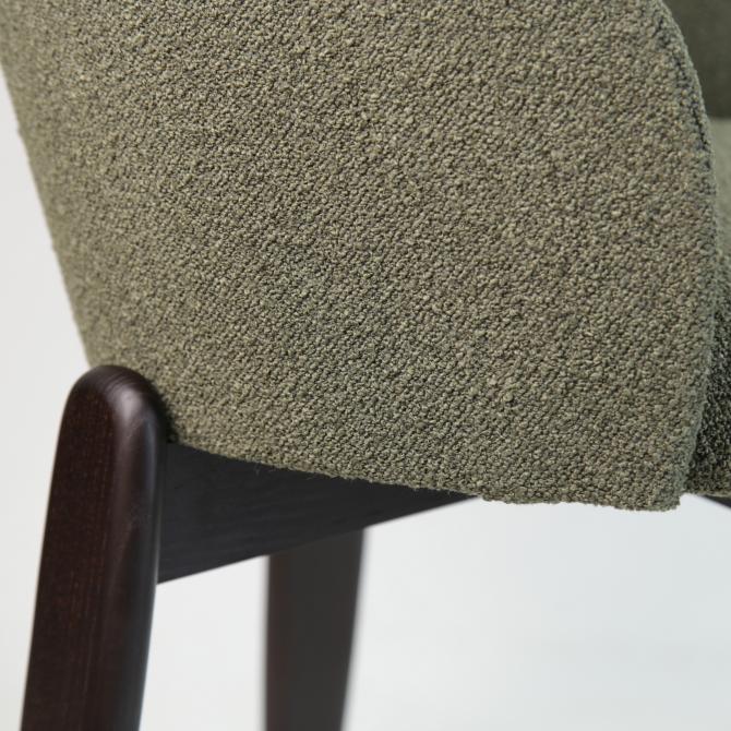 Каркас виготовлений з натурального ясена, що гарантує довговічність та благородний вигляд. Стілець доступний у будь-якому варіанті тканини за індивідуальним замовленням — ідеальний вибір для створення гармонійного інтер’єру у стилі, який підходить саме вам.