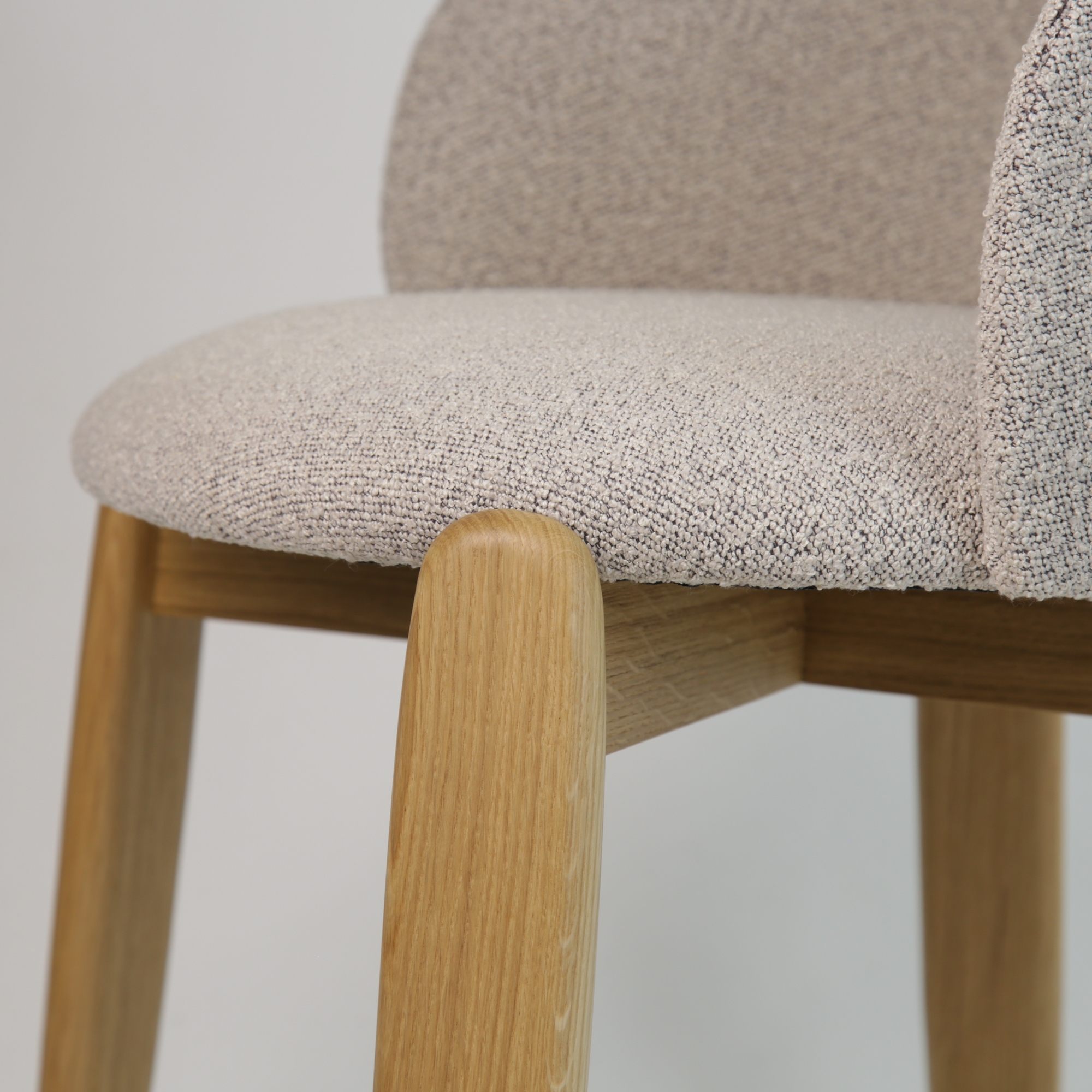 Каркас виготовлений з натурального дуба, що гарантує довговічність та благородний вигляд. Стілець доступний у будь-якому варіанті тканини за індивідуальним замовленням — ідеальний вибір для створення гармонійного інтер’єру у стилі, який підходить саме вам.