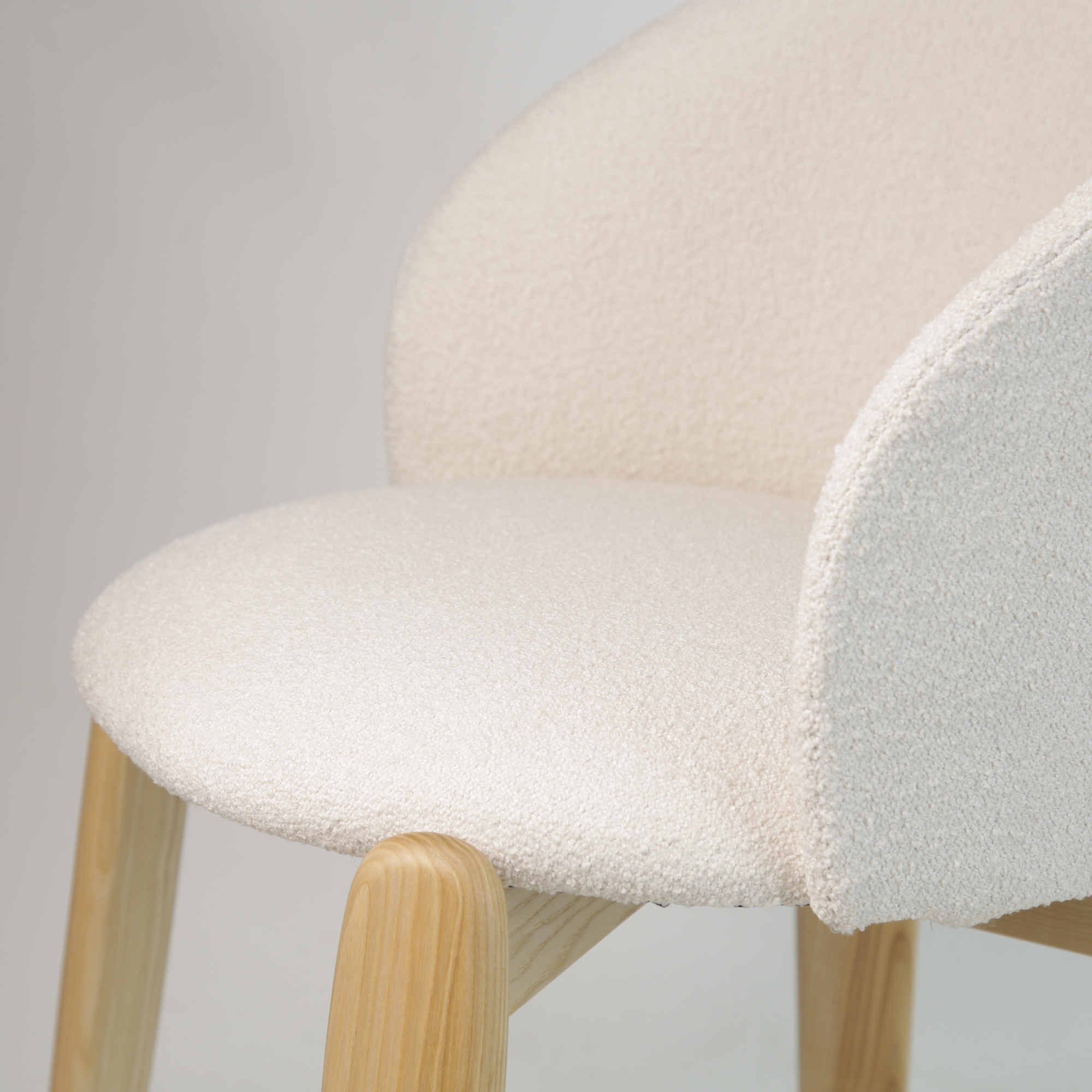 Каркас виготовлений з натурального ясена, що гарантує довговічність та благородний вигляд. Стілець доступний у будь-якому варіанті тканини за індивідуальним замовленням — ідеальний вибір для створення гармонійного інтер’єру у стилі, який підходить саме вам.