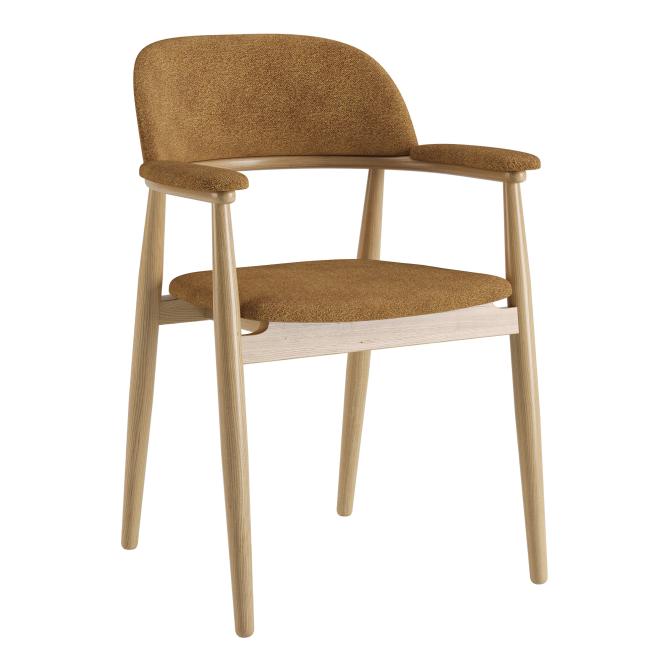Стілець Terra — це поєднання природної фактурності та лаконічного дизайну. Завдяки зручним підлокітникам і м’якому сидінню він забезпечує максимальний комфорт навіть під час тривалого сидіння. Каркас виконаний із масиву ясеня, що надає міцності й стабільності, а текстурна тканина додає теплоти та характеру виробу.