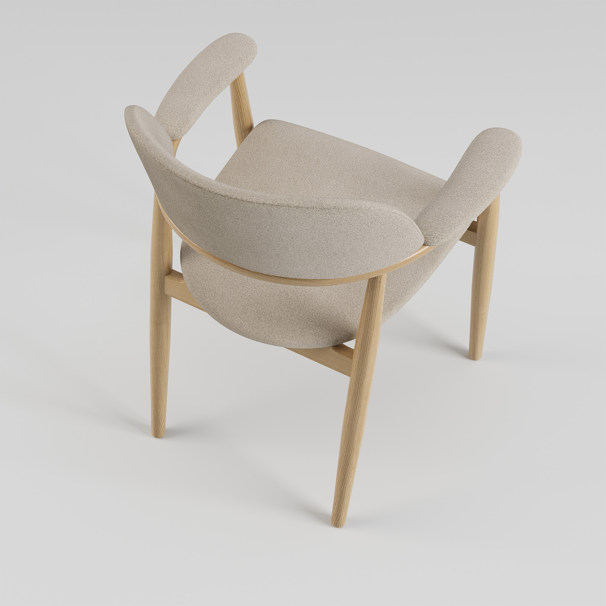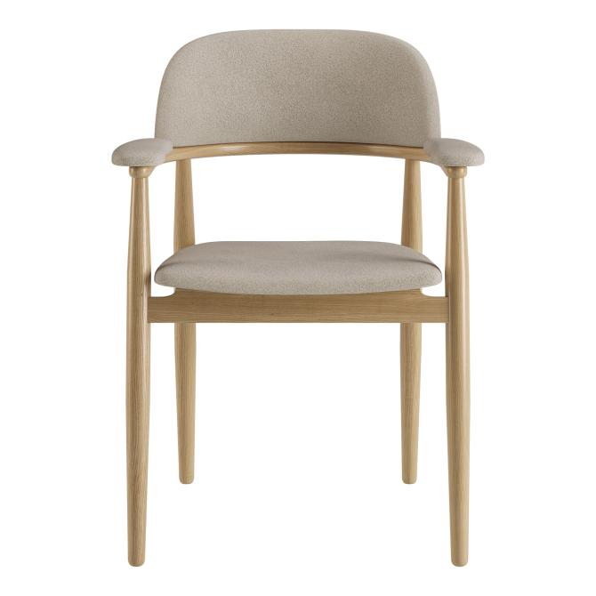 Стілець Terra — це поєднання природної фактурності та лаконічного дизайну. Завдяки зручним підлокітникам і м’якому сидінню він забезпечує максимальний комфорт навіть під час тривалого сидіння. Каркас виконаний із масиву ясеня, що надає міцності й стабільності, а текстурна тканина додає теплоти та характеру виробу.