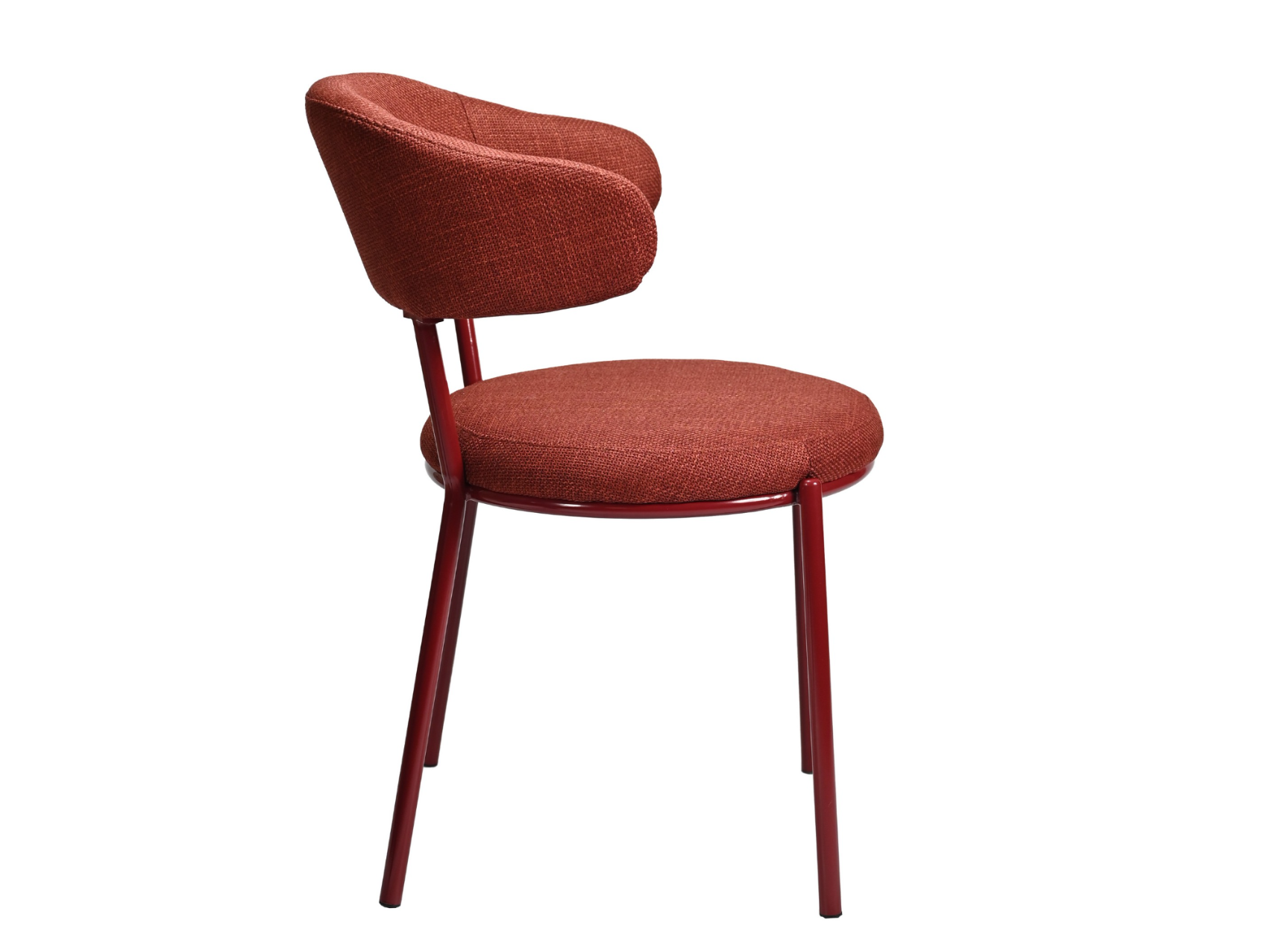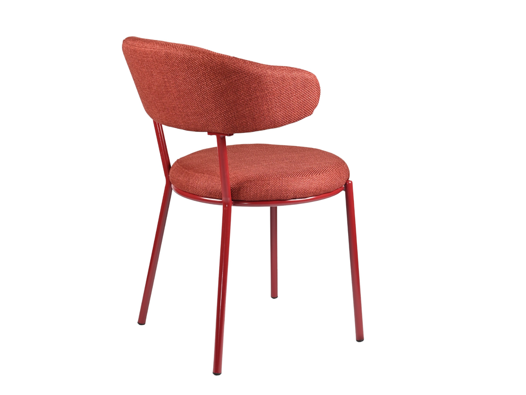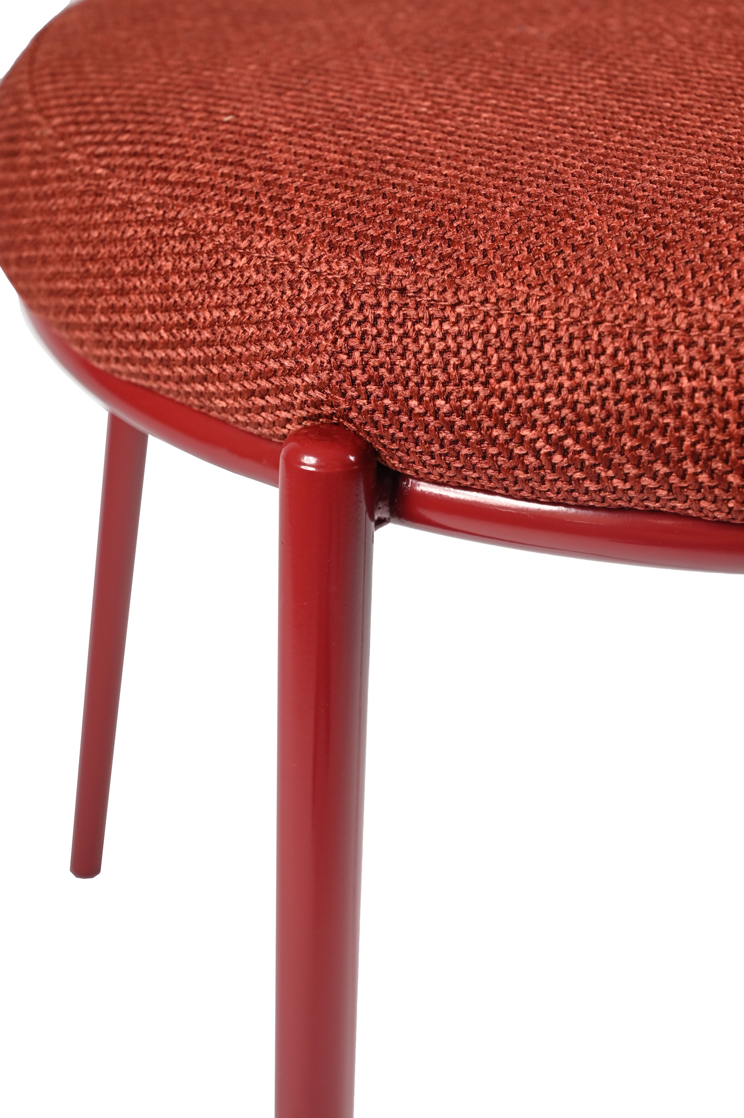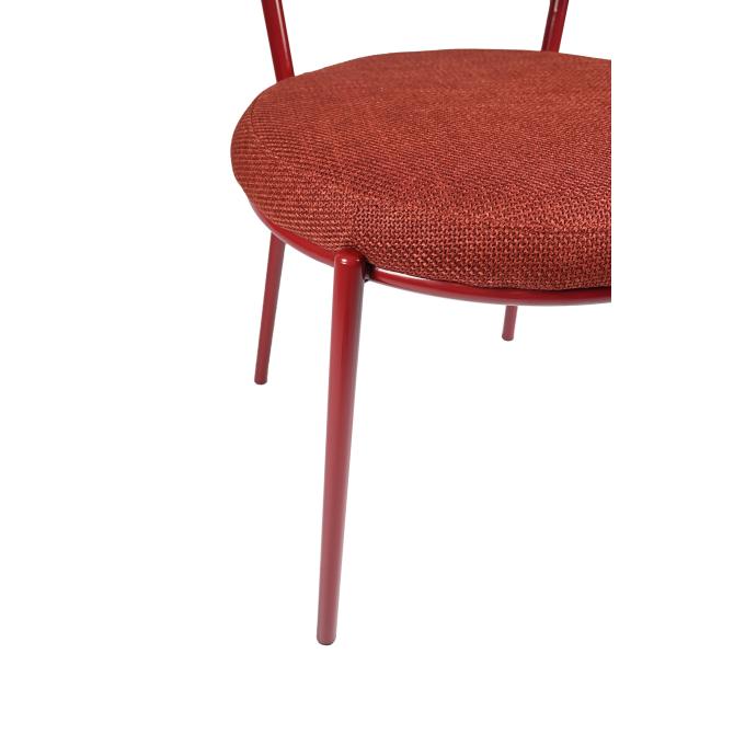 Стілець має міцну оббивку з тканини, яка забезпечує комфортне сидіння та приємні тактильні відчуття. Тканина довговічна, стійка до зношування і добре витримує щоденне використання.