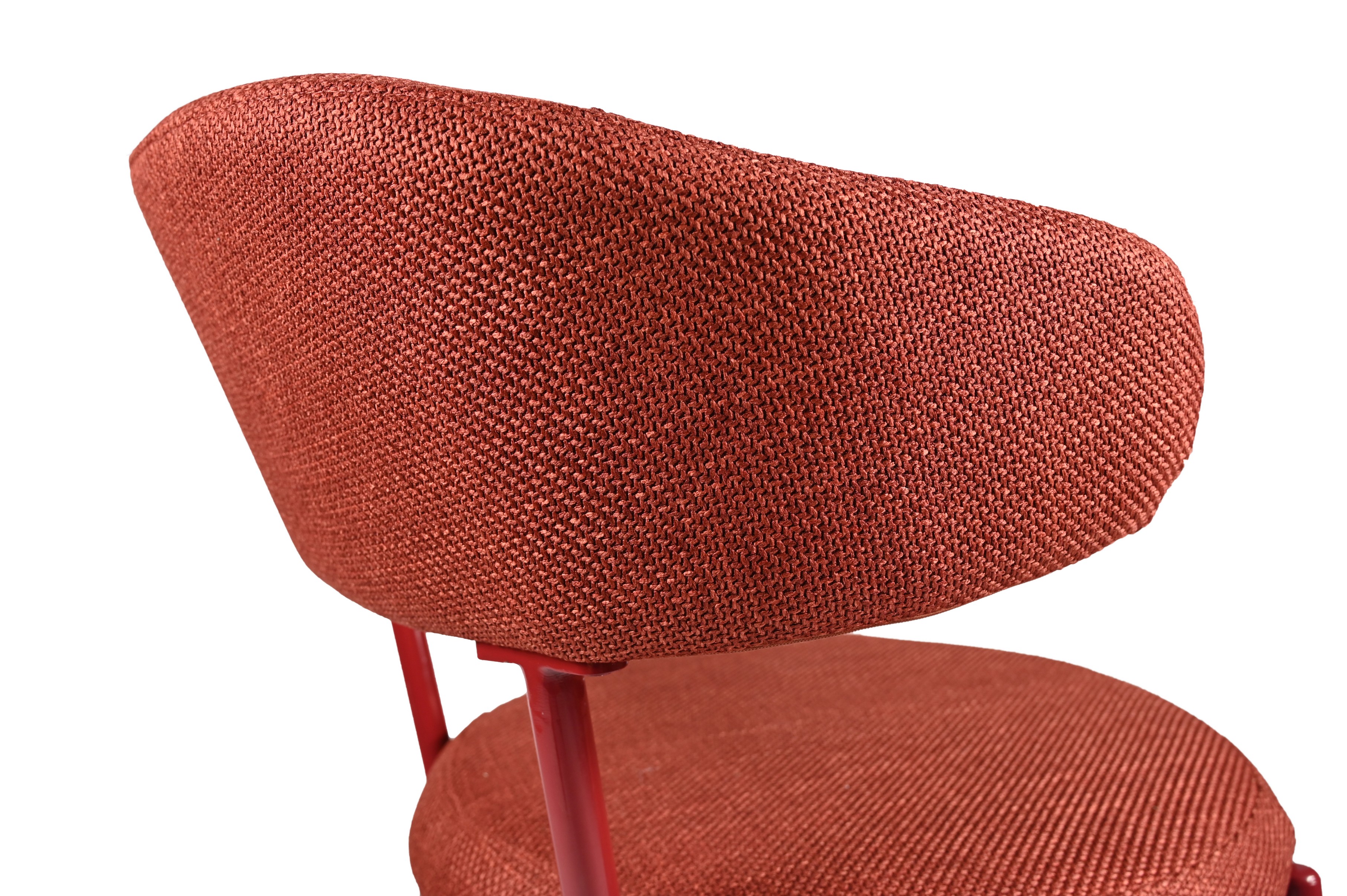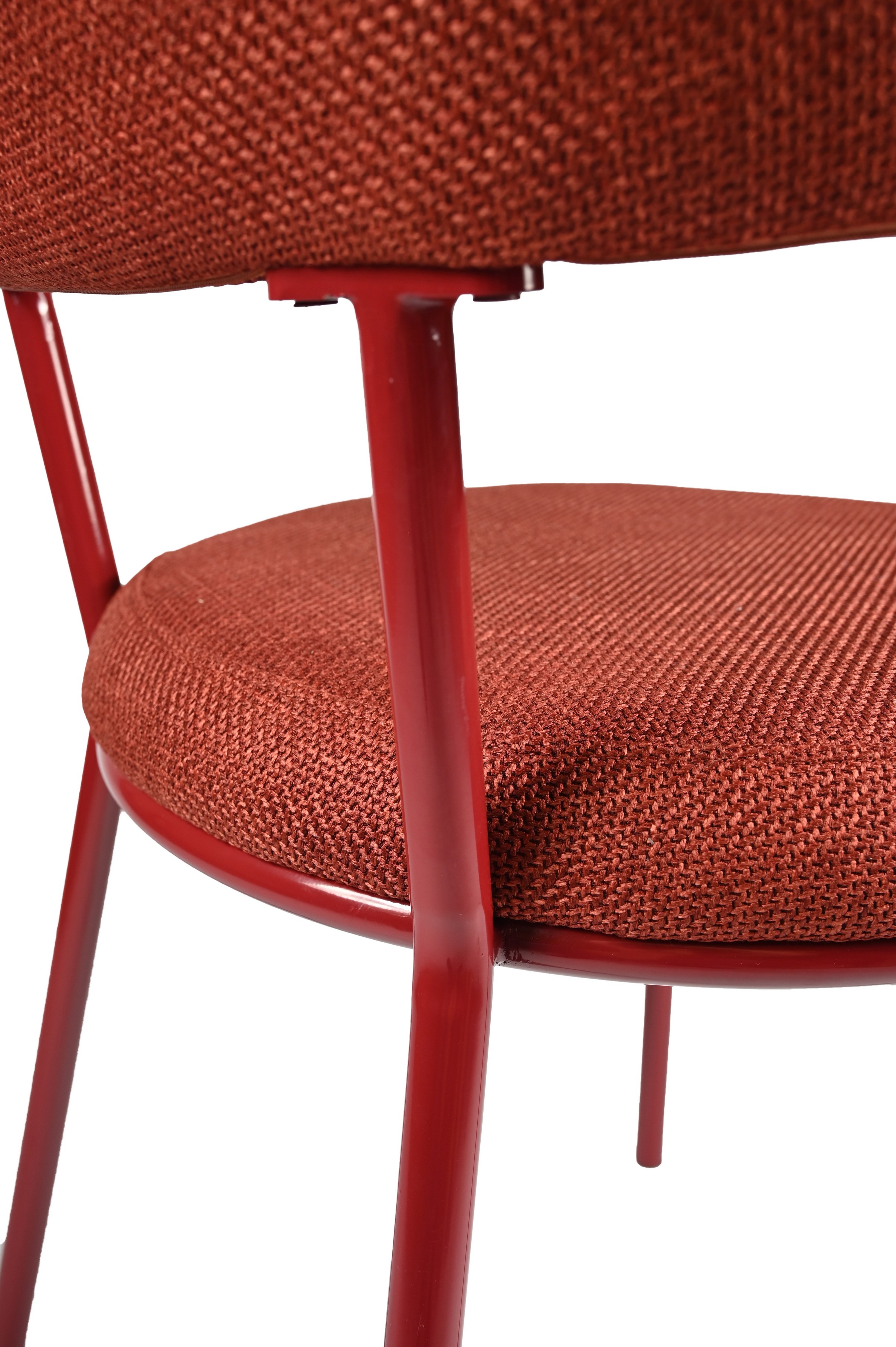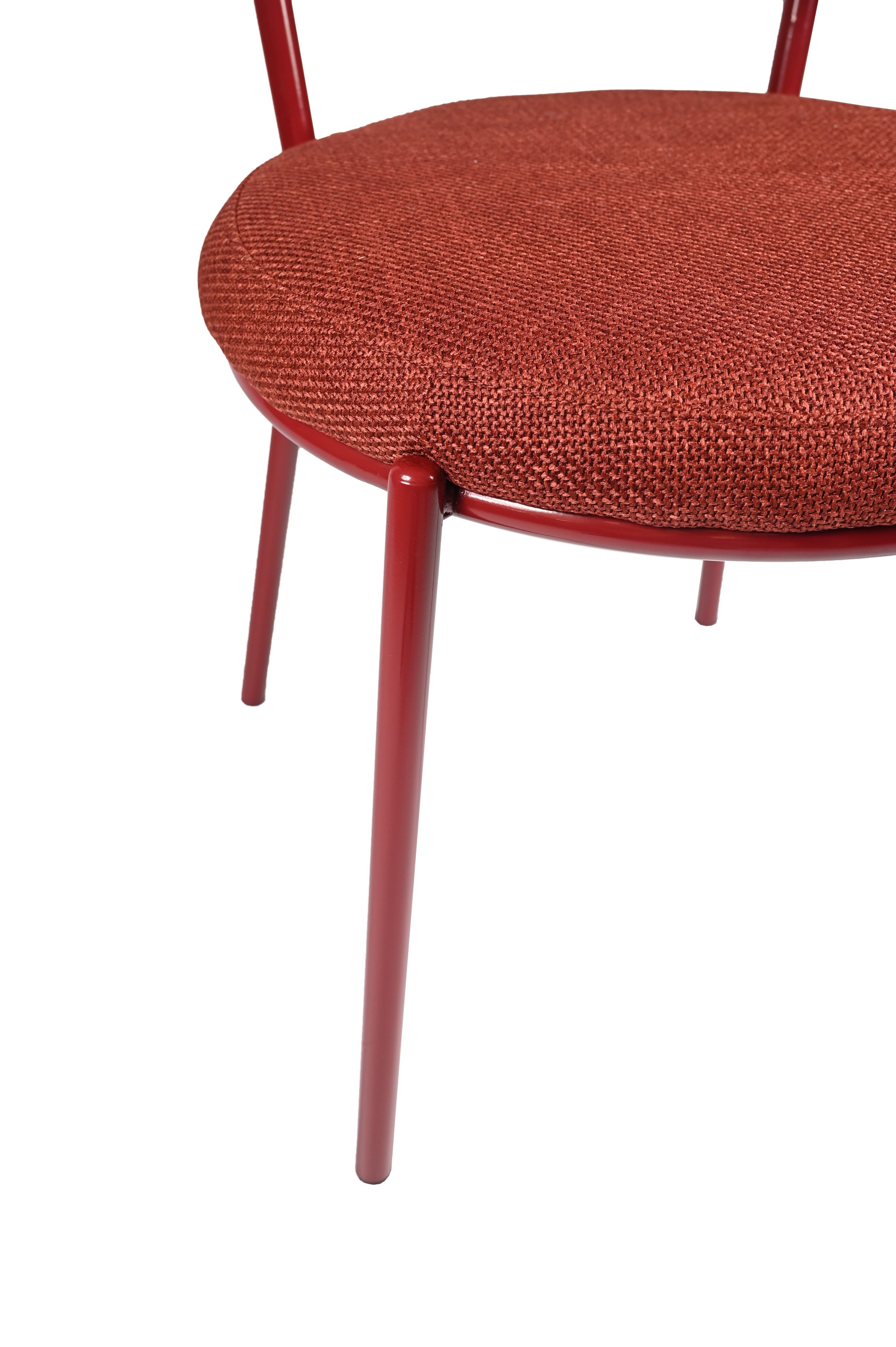 Стілець має міцну оббивку з тканини, яка забезпечує комфортне сидіння та приємні тактильні відчуття. Тканина довговічна, стійка до зношування і добре витримує щоденне використання.