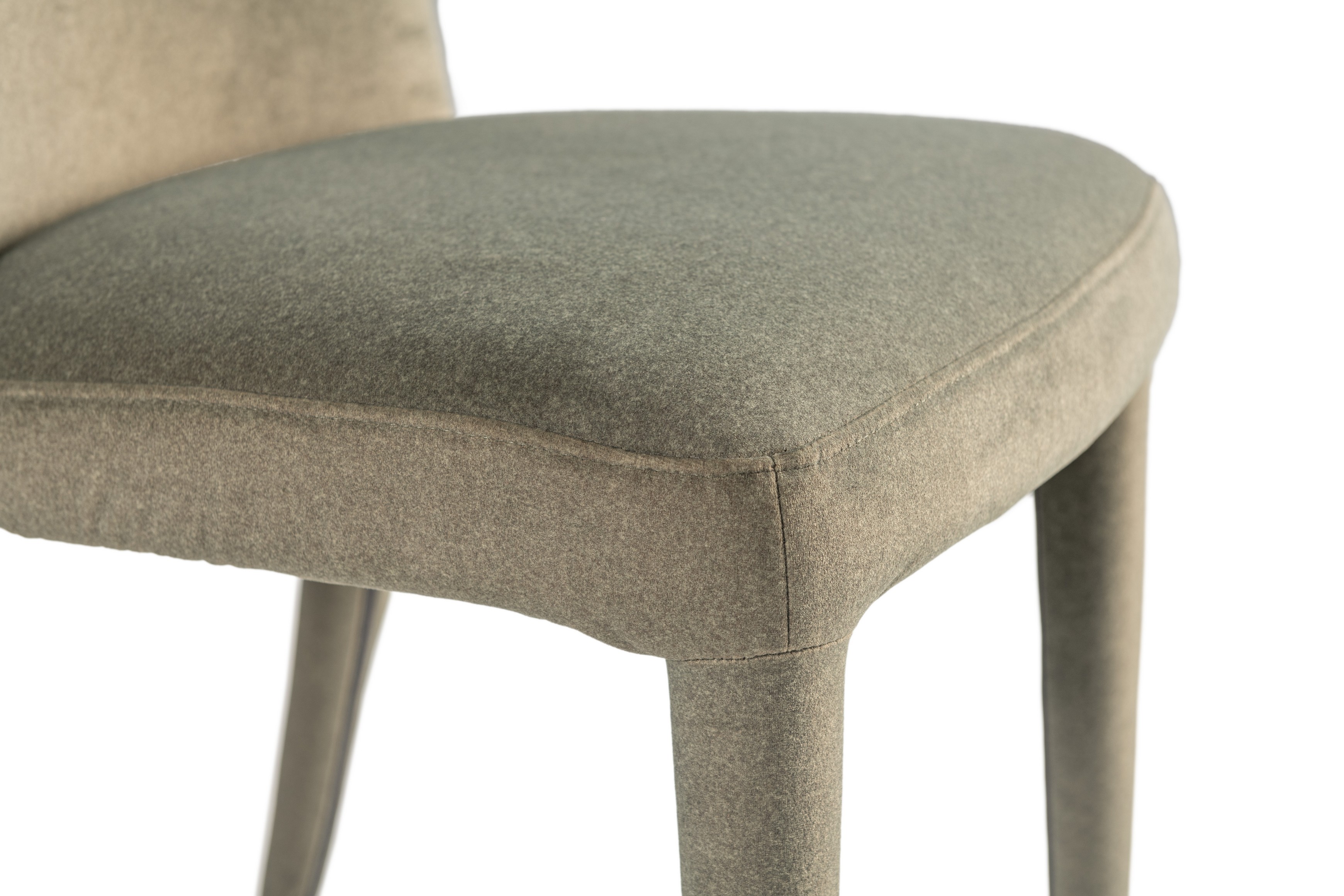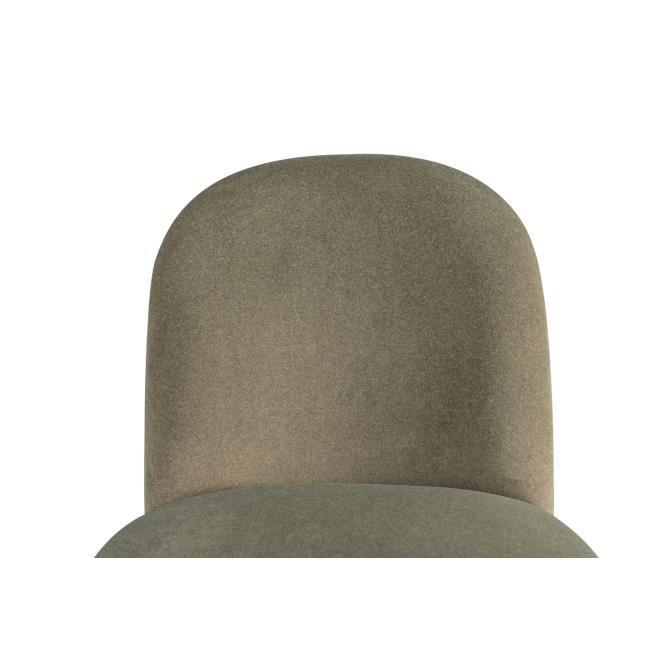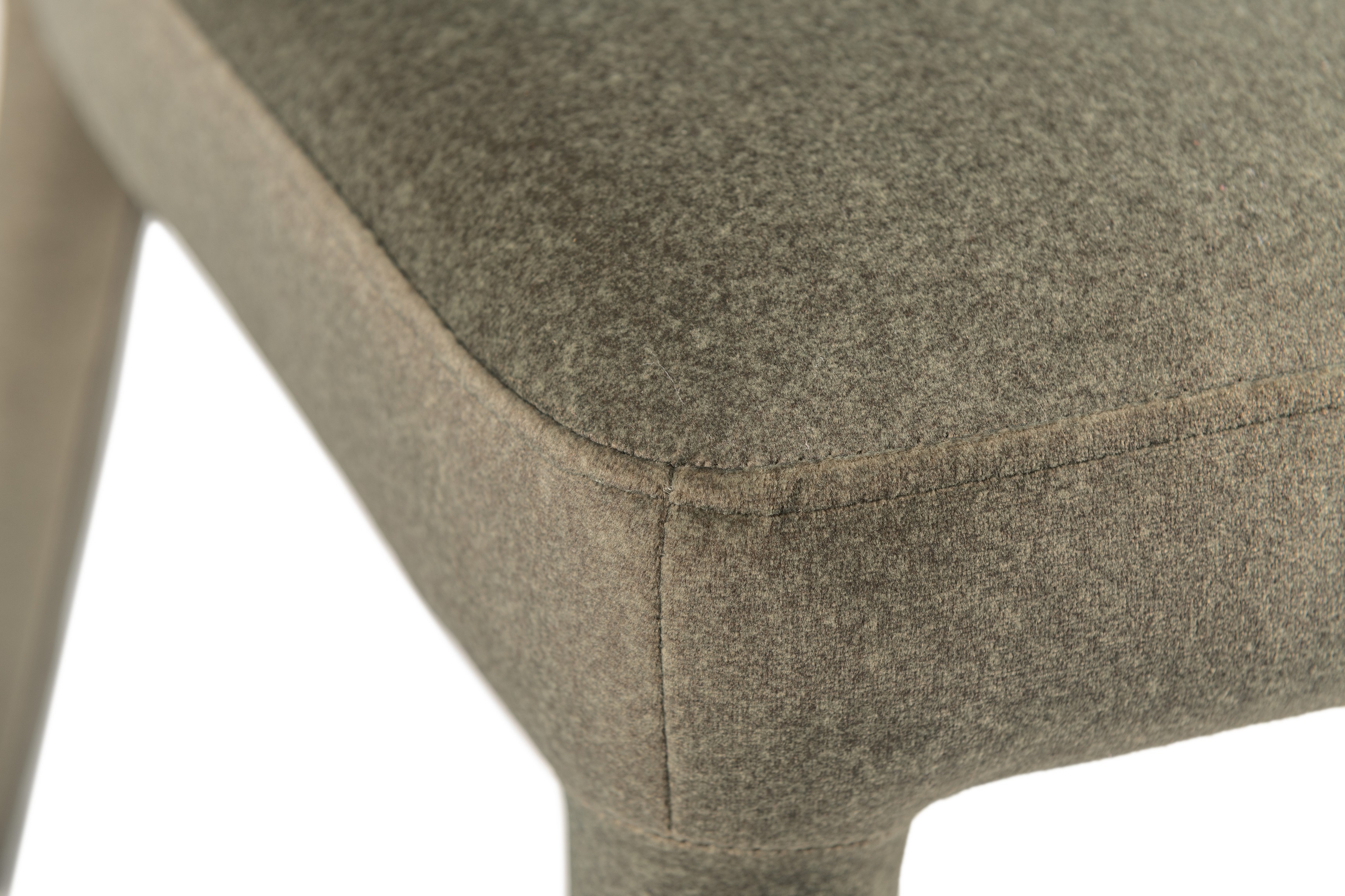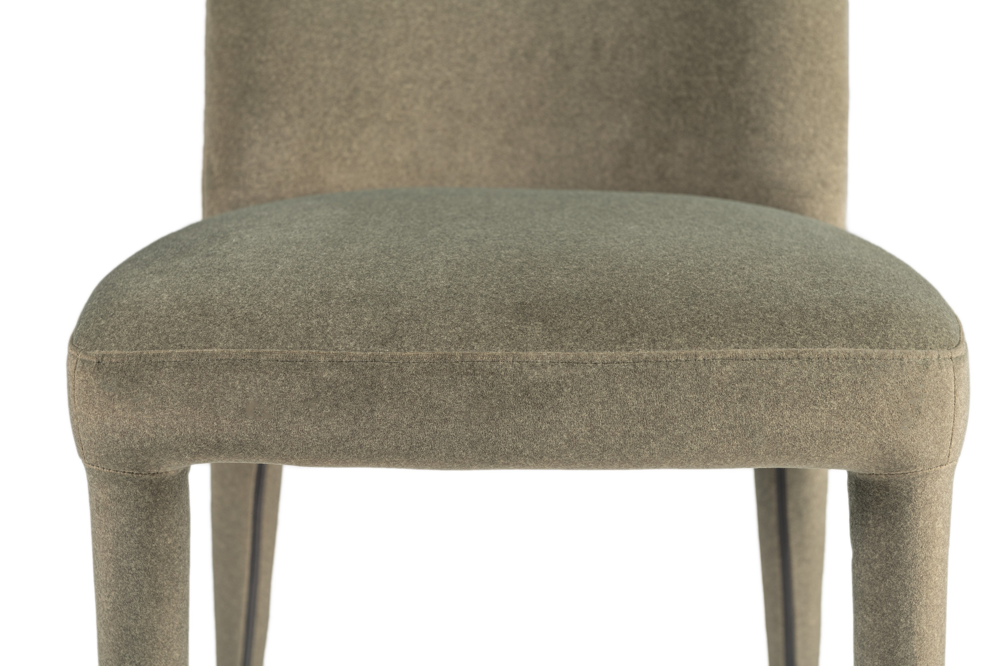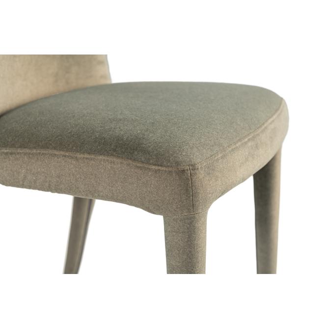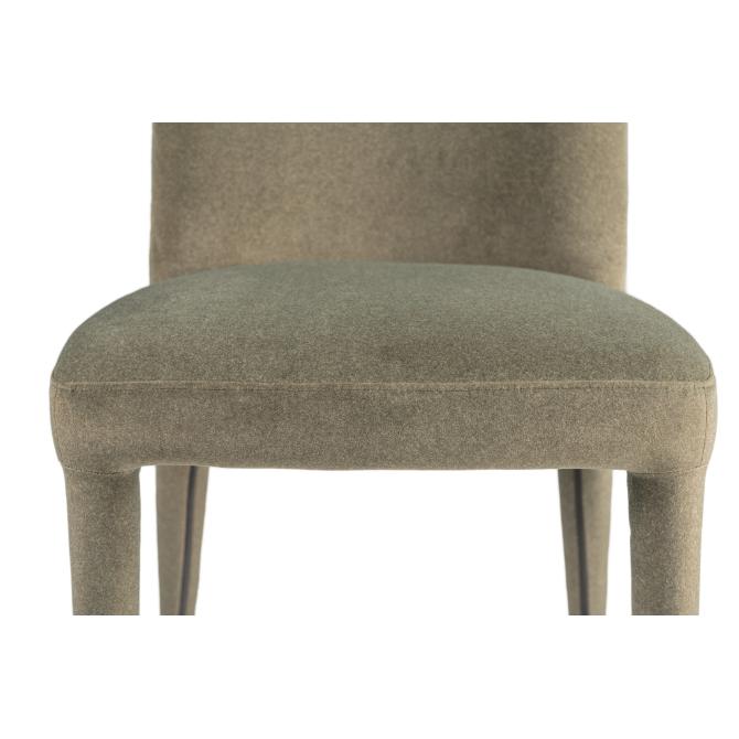 Оббивка стільця виконана з м’якого та розкішного мохеру кольору "макадамія". Цей теплий і приємний відтінок створює відчуття затишку та гармонії, додаючи приміщенню елегантного вигляду. Мохер, відомий своєю довговічністю, стійкістю до зносу та приємною текстурою, дарує максимальний комфорт під час сидіння.
