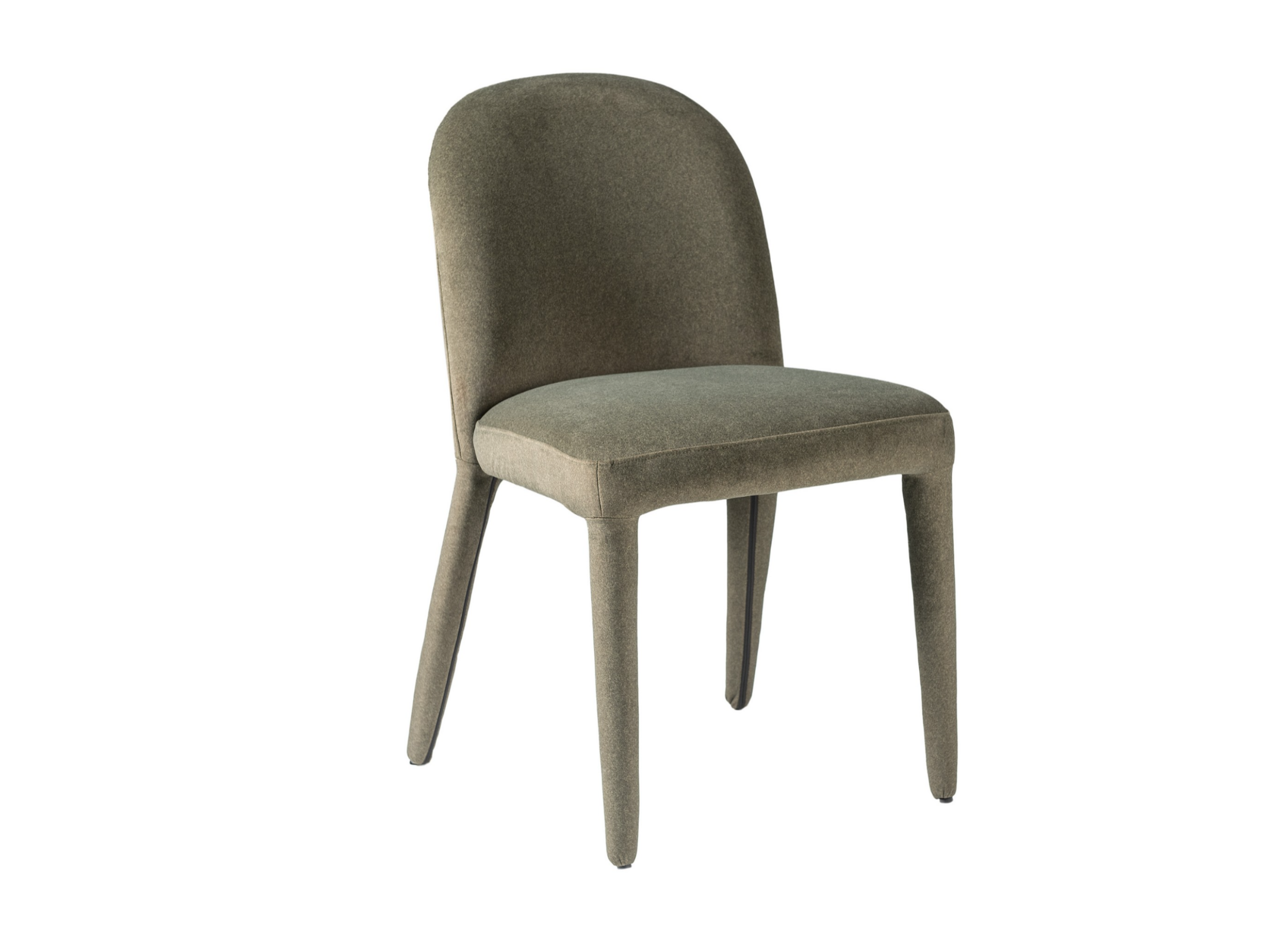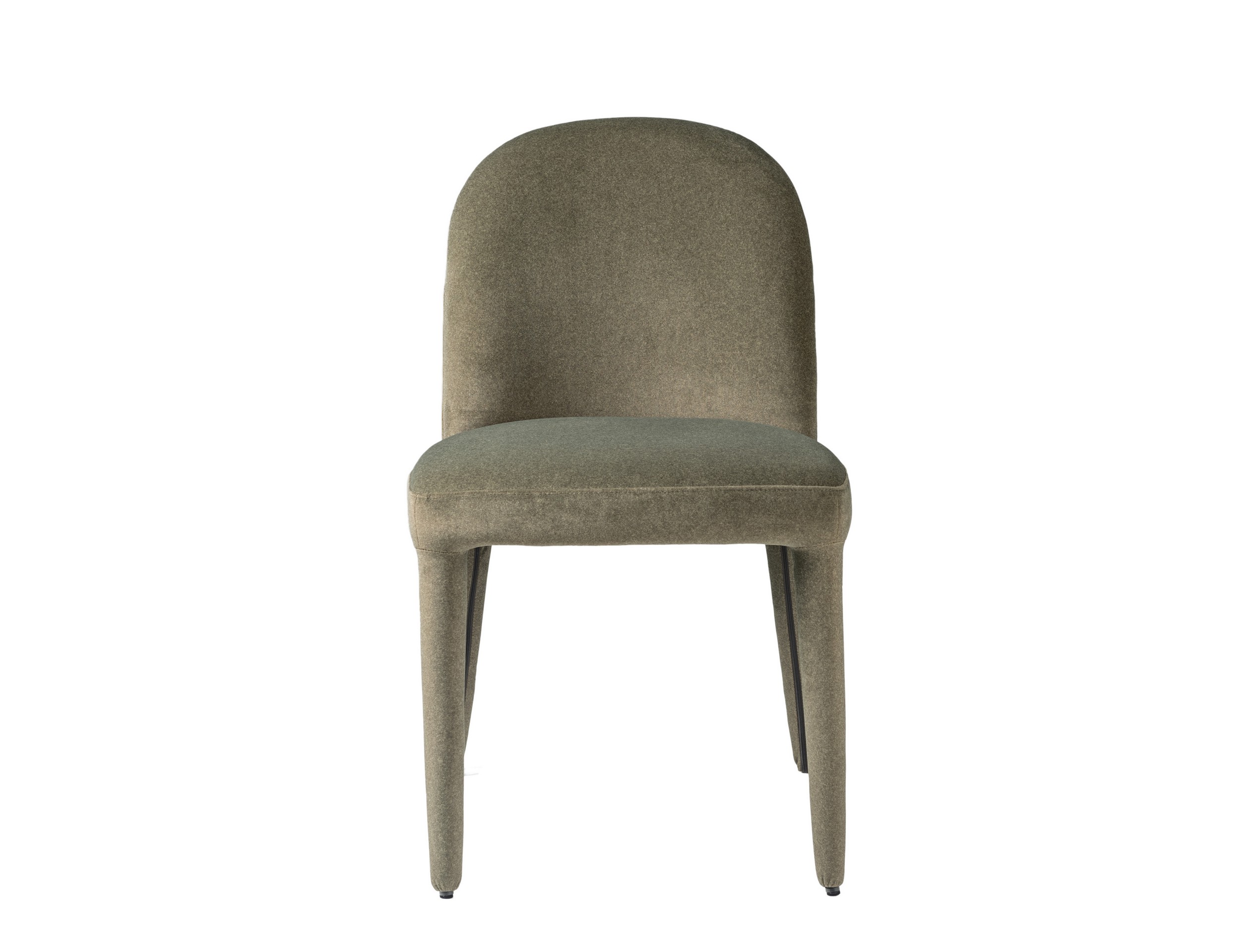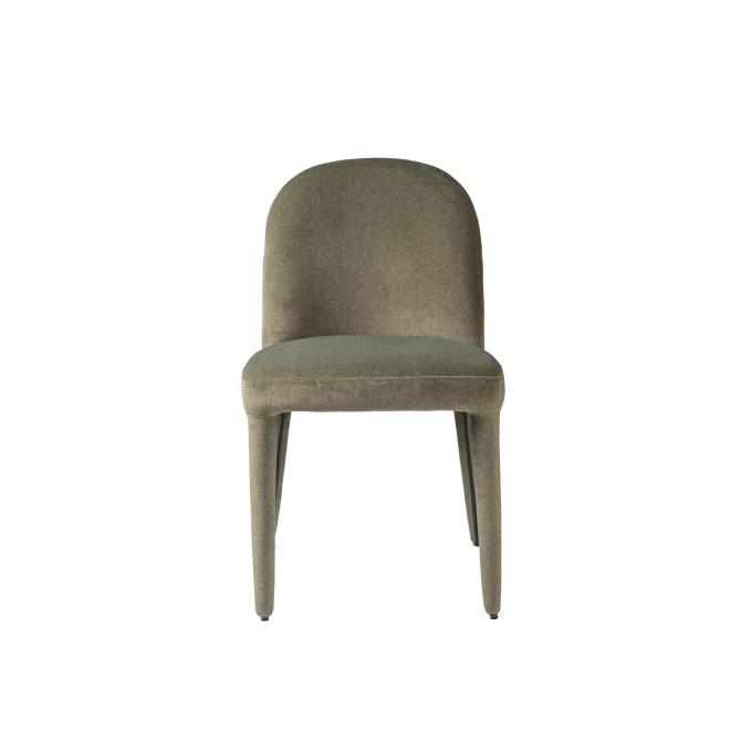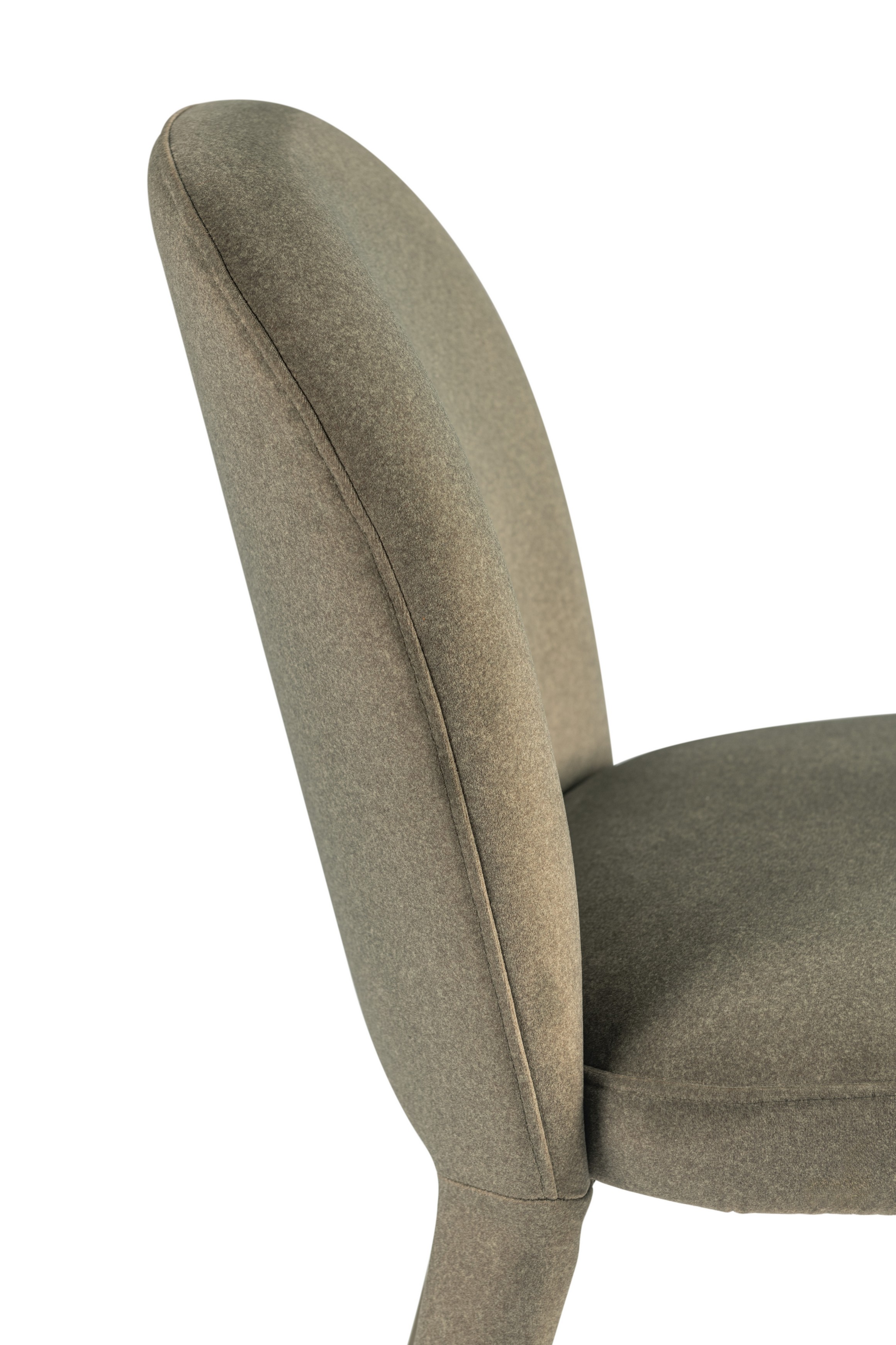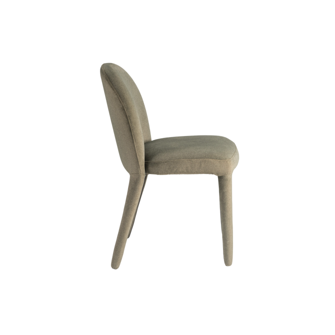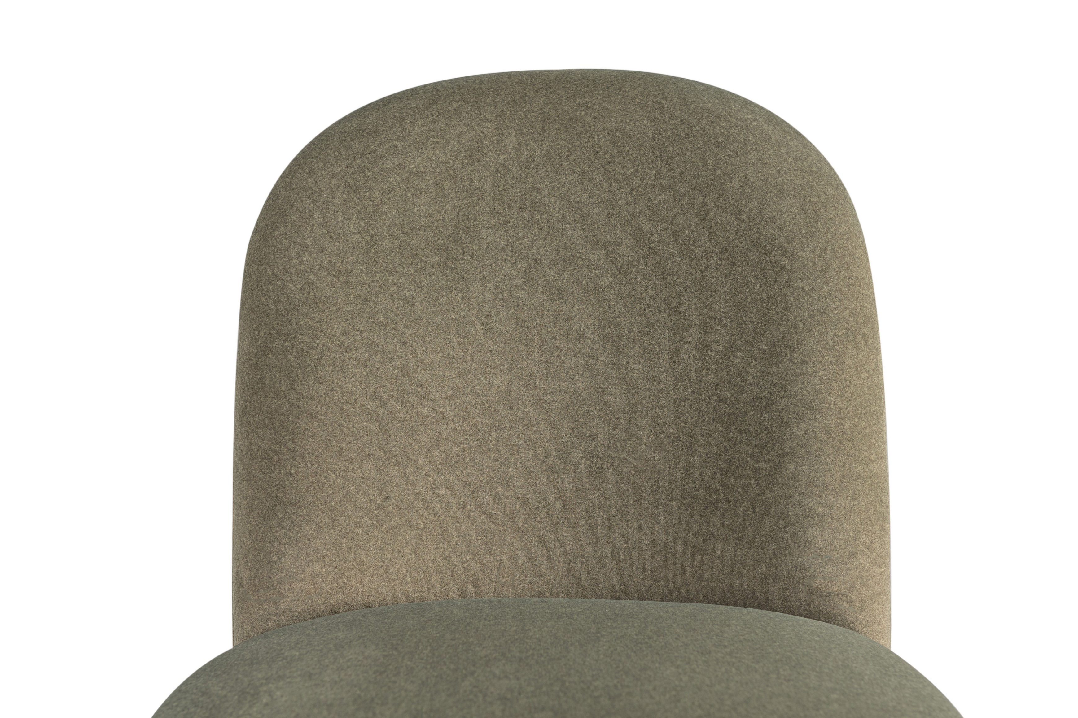 Оббивка стільця виконана з м’якого та розкішного мохеру кольору "макадамія". Цей теплий і приємний відтінок створює відчуття затишку та гармонії, додаючи приміщенню елегантного вигляду. Мохер, відомий своєю довговічністю, стійкістю до зносу та приємною текстурою, дарує максимальний комфорт під час сидіння.