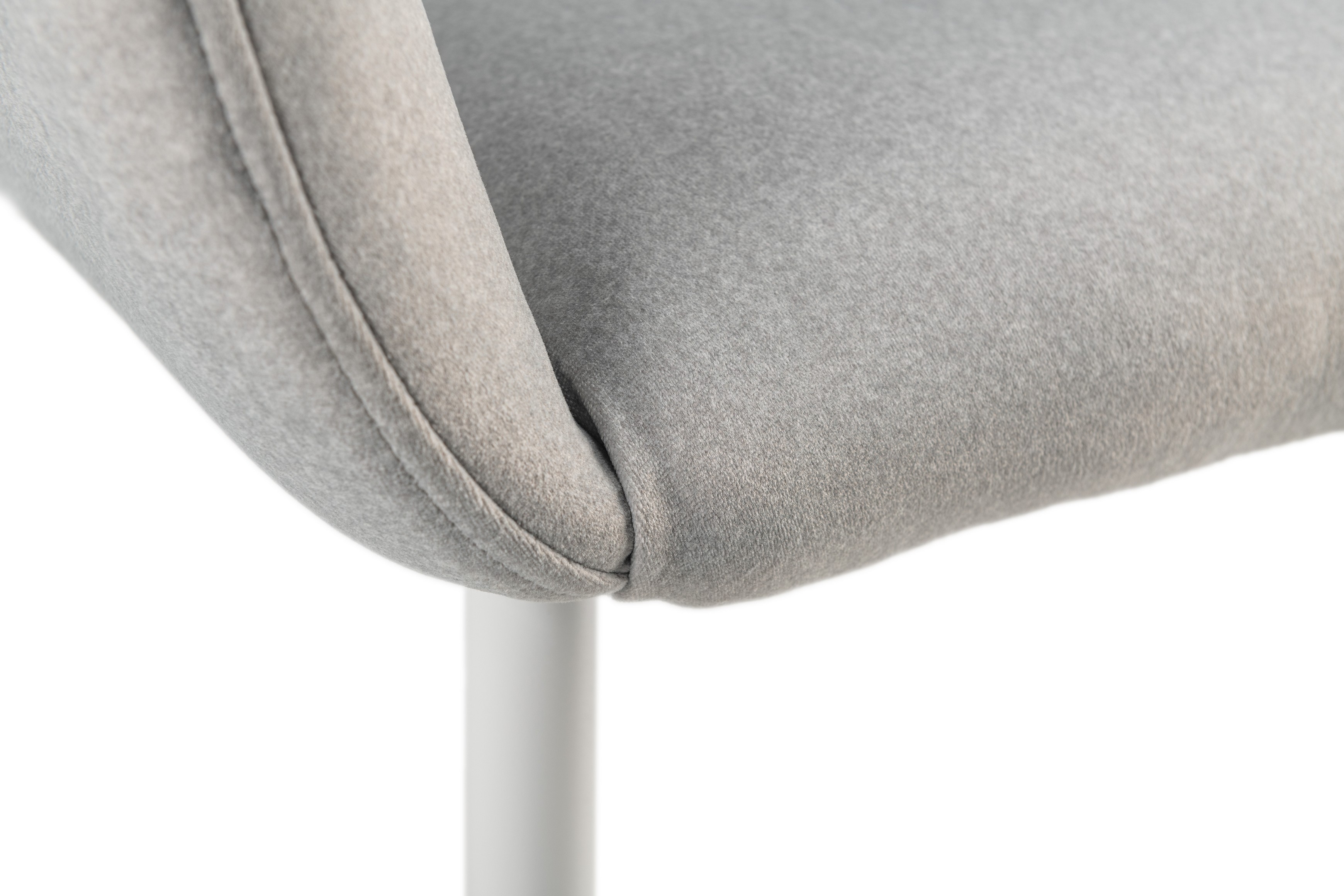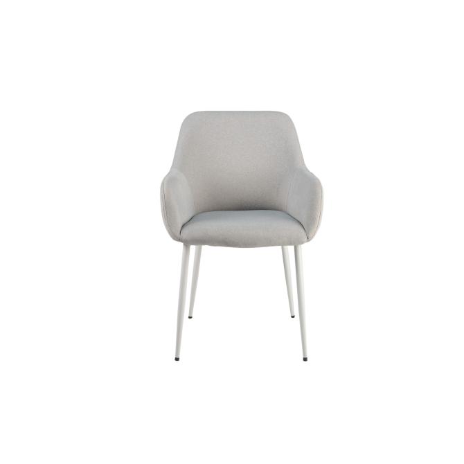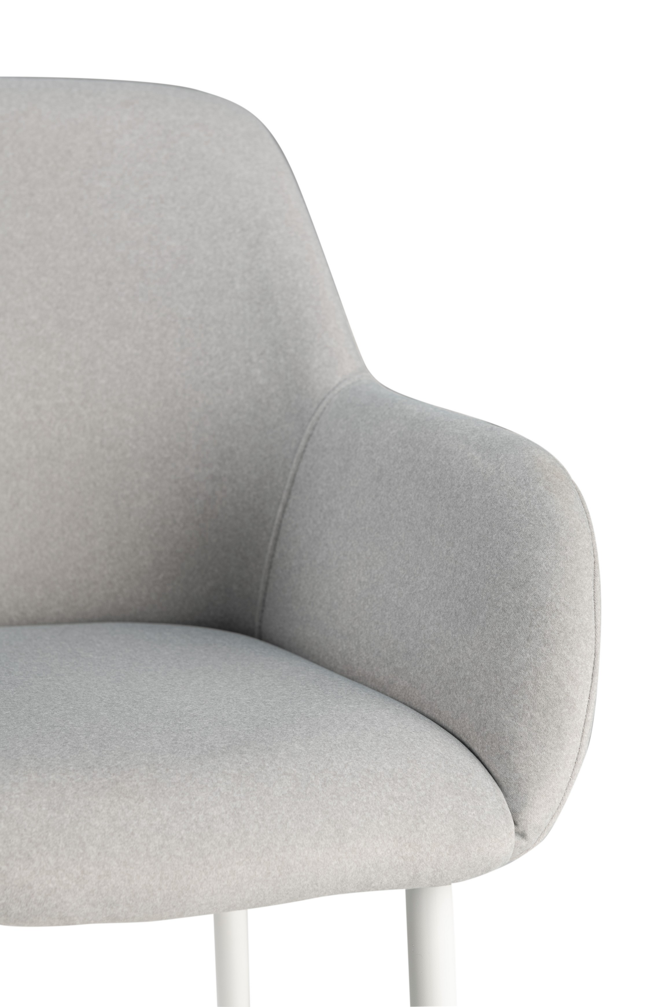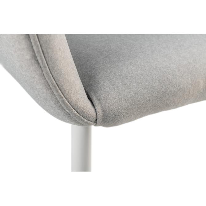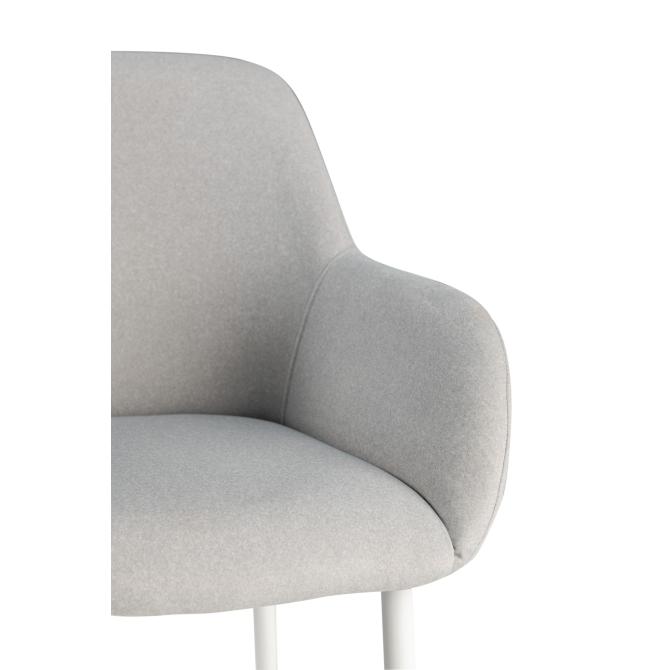 Оббивка стільця виконана з мохеру — тканини, яка відома своєю м'якістю і довговічністю. Колір "устричний" має приємний нейтральний відтінок, що додає елегантності і гармонійно виглядає в будь-якому інтер'єрі. Біла фарбована металева основа забезпечує стабільність і надає стільцю сучасного вигляду.