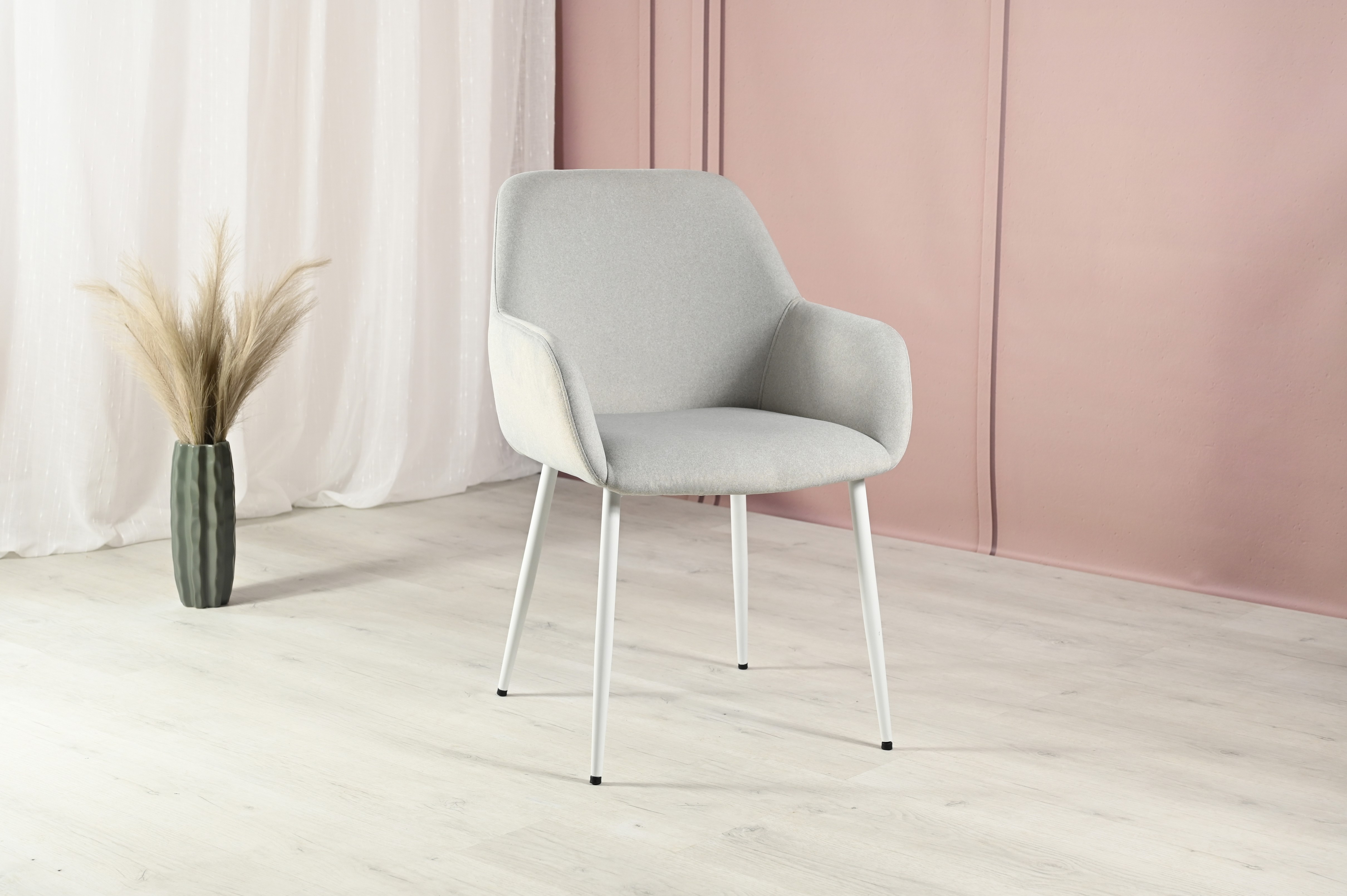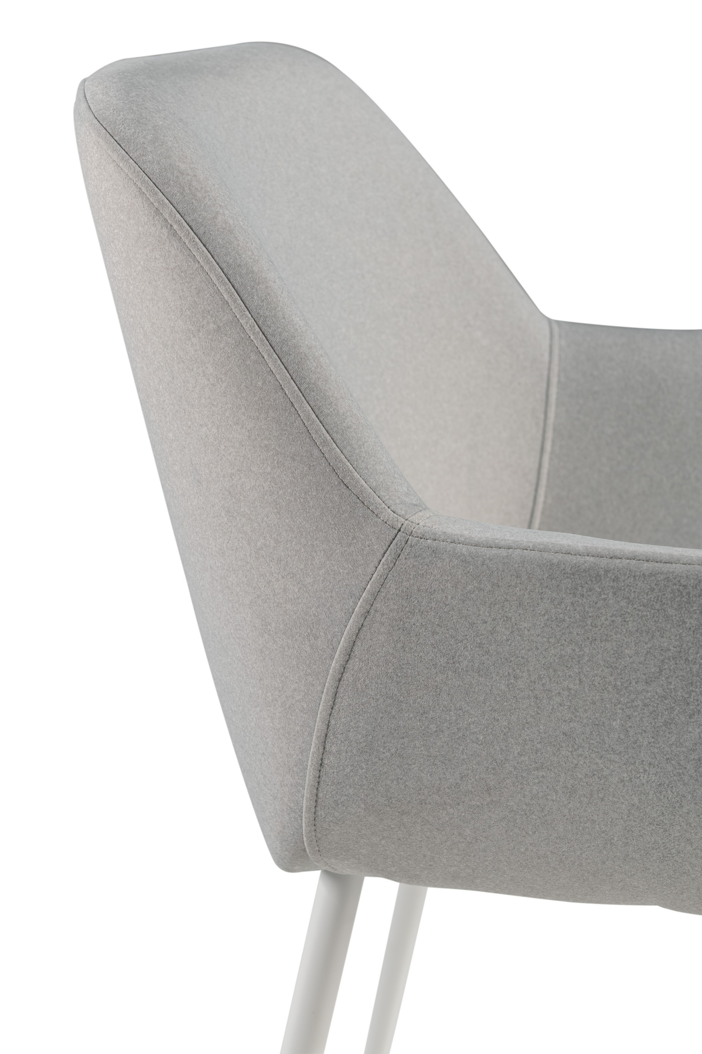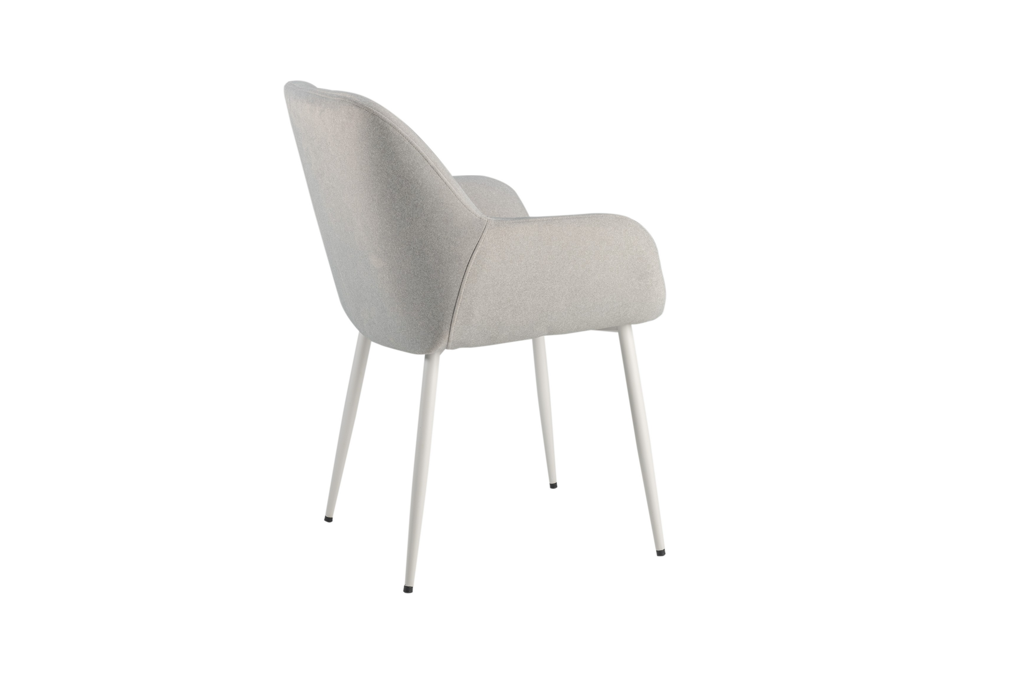 Оббивка стільця виконана з мохеру — тканини, яка відома своєю м'якістю і довговічністю. Колір "устричний" має приємний нейтральний відтінок, що додає елегантності і гармонійно виглядає в будь-якому інтер'єрі. Біла фарбована металева основа забезпечує стабільність і надає стільцю сучасного вигляду.