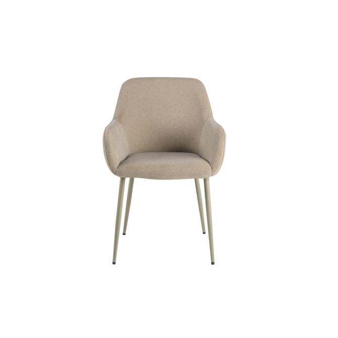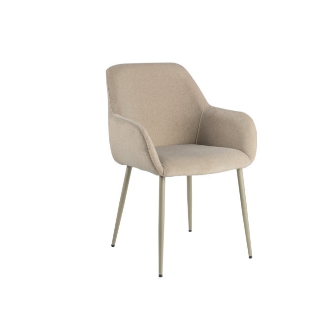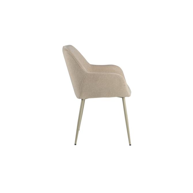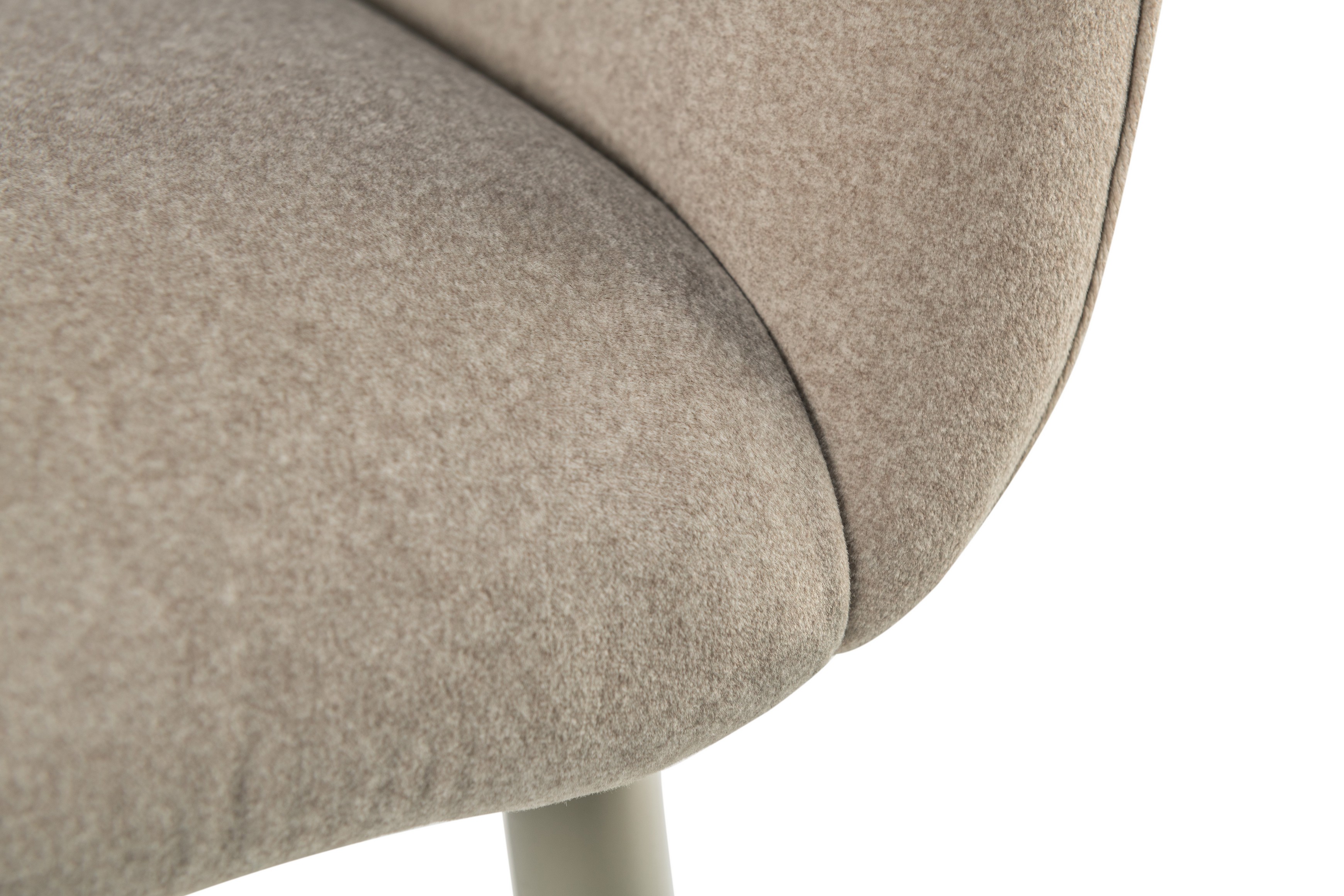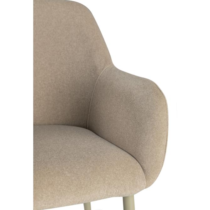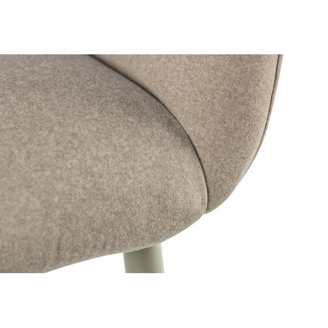 Оббивка стільця виконана з мохеру — тканини, яка відома своєю м'якістю і довговічністю. Колір "устричний" має приємний нейтральний відтінок, що додає елегантності і гармонійно виглядає в будь-якому інтер'єрі. Біла фарбована металева основа забезпечує стабільність і надає стільцю сучасного вигляду.