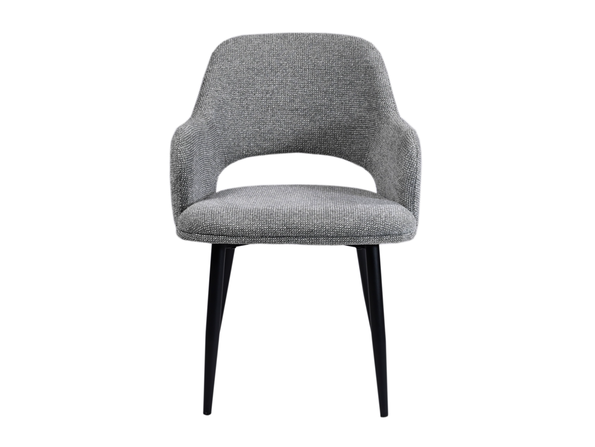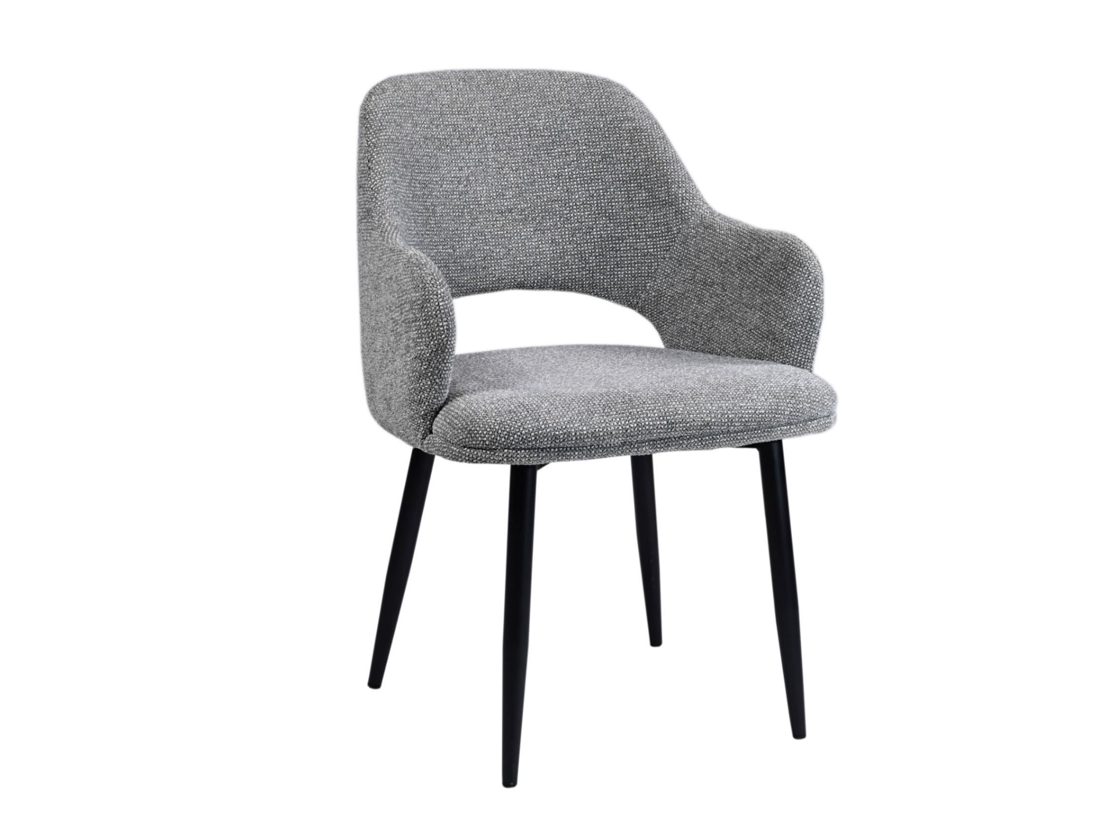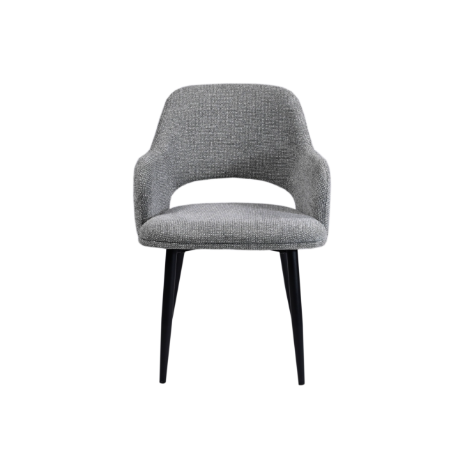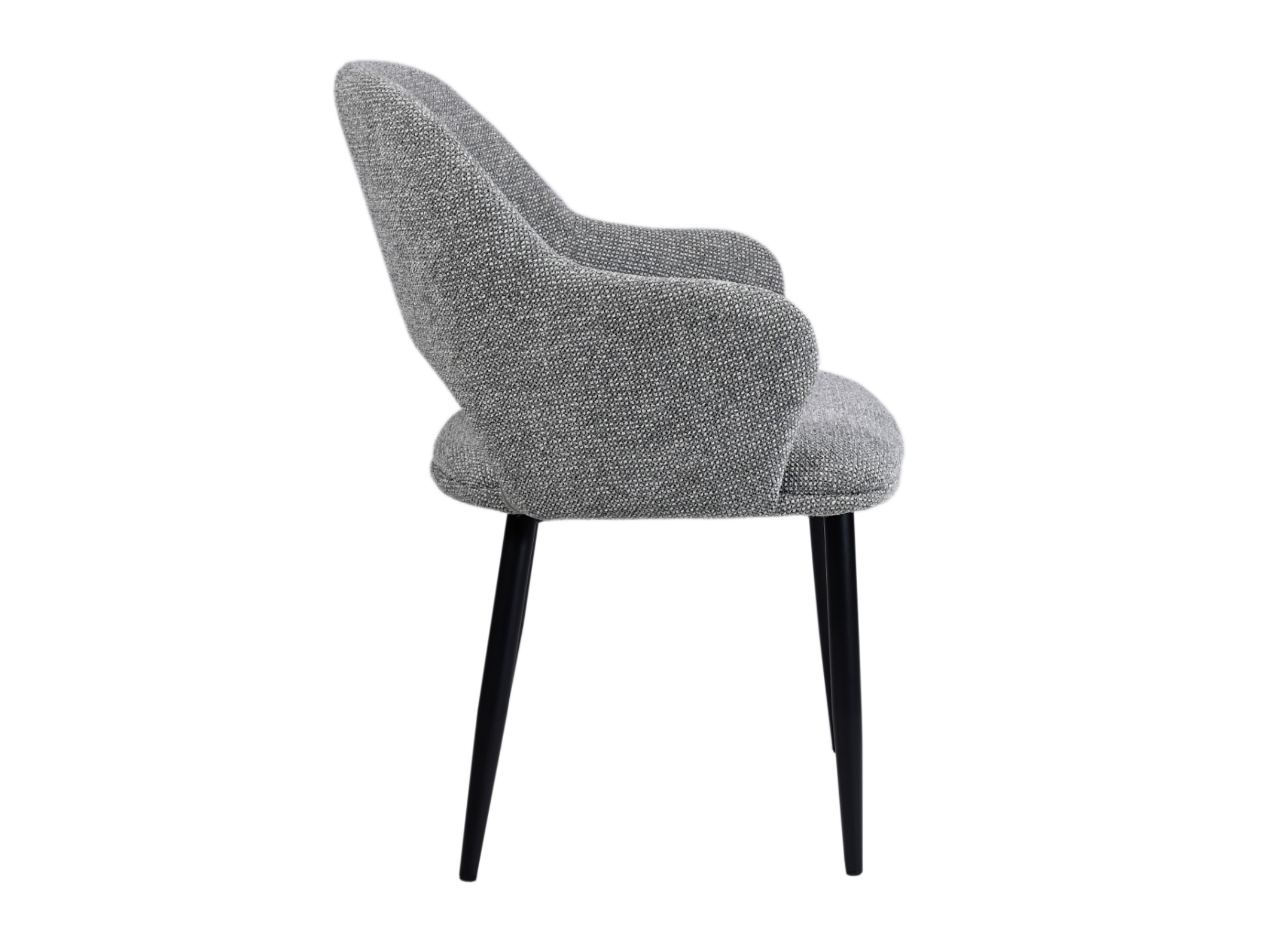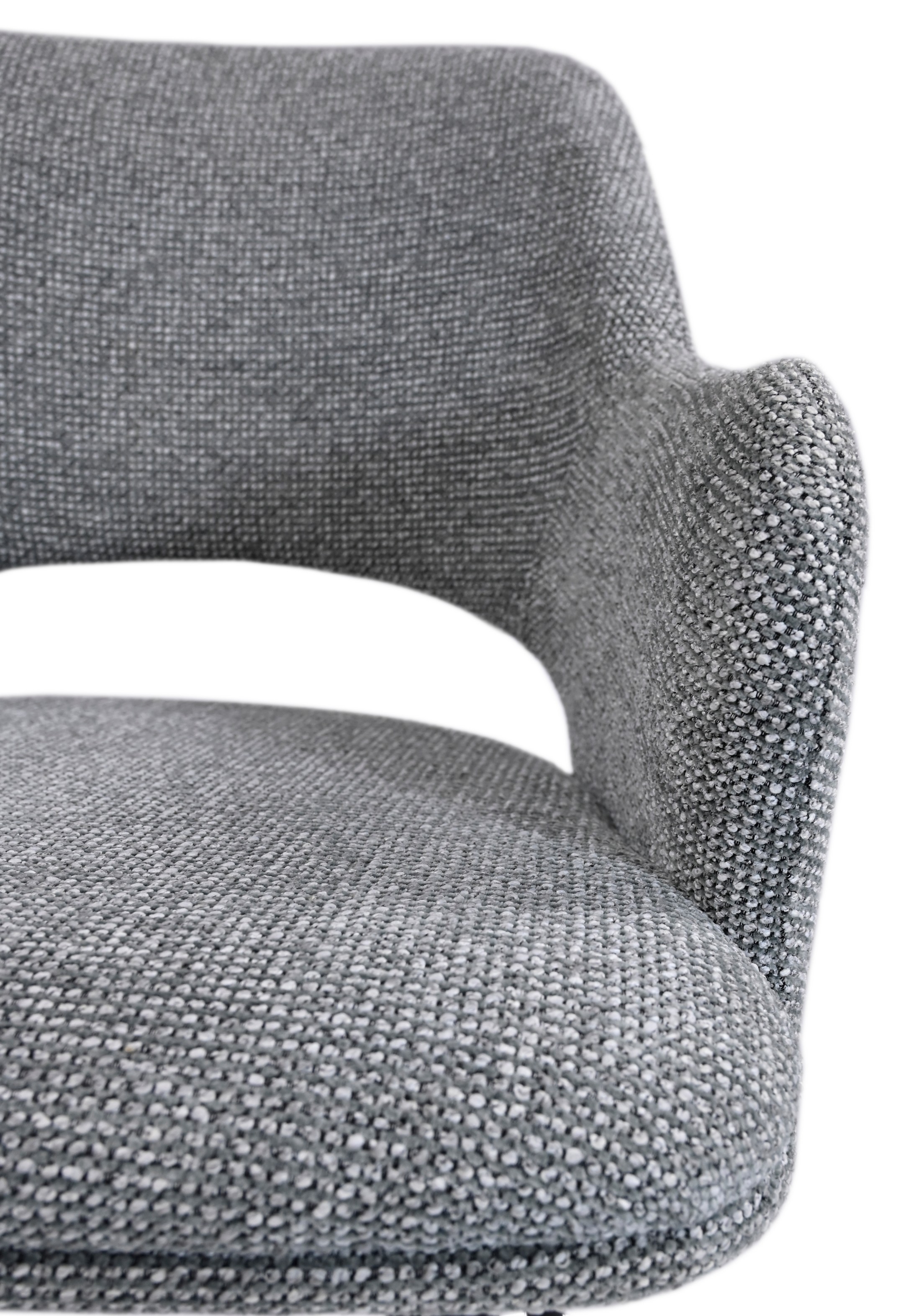 Оббивка з фактурної тканини не лише приємна на дотик, а й додає стільцю естетичної привабливості. Ширина сидіння забезпечуэ комфорт навіть при тривалому використанні, а зручні підлокітники додають додаткової підтримки та зручності.