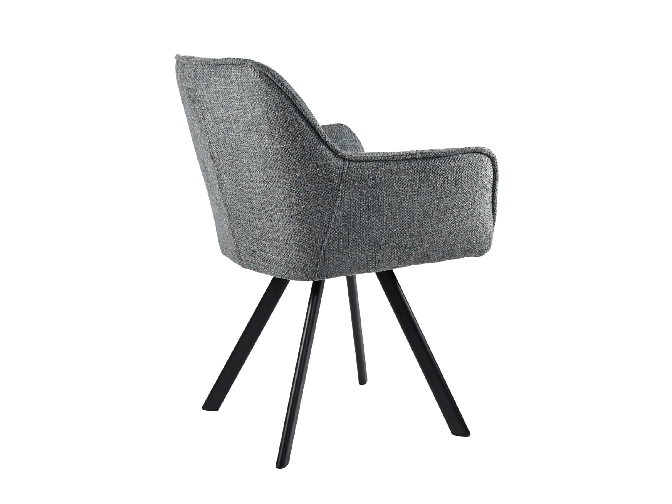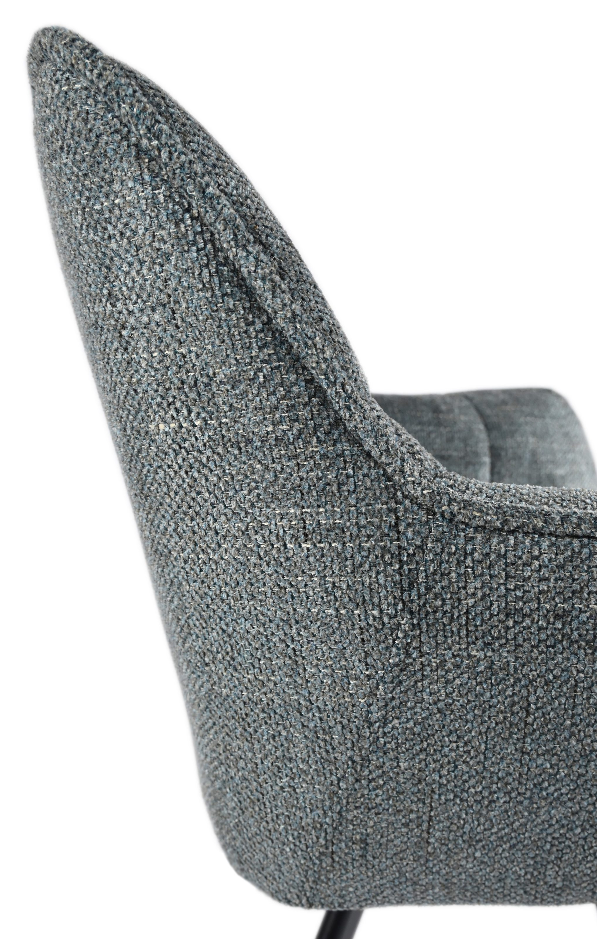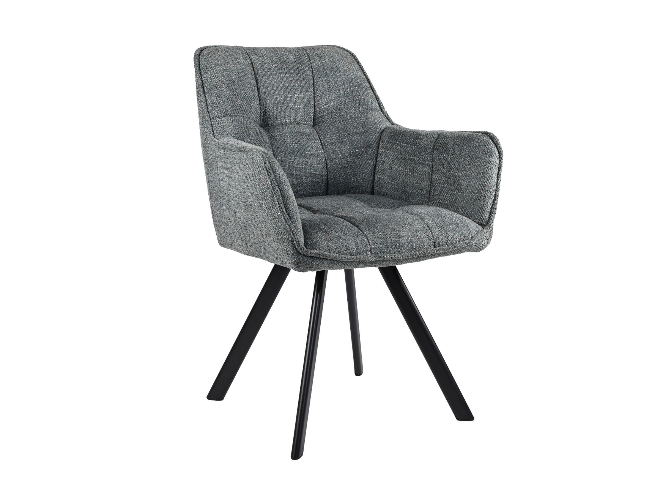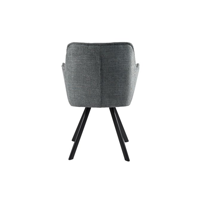 Стілець M-235 — це поєднання сучасного дизайну, комфорту та надійності. Оббитий фактурною тканиною у стильному графітовому відтінку, він має приємну на дотик поверхню та виглядає солідно й стримано. Завдяки широкому сидінню і комфортним підлокітникам, модель забезпечує зручну посадку як для обіду, так і для відпочинку.