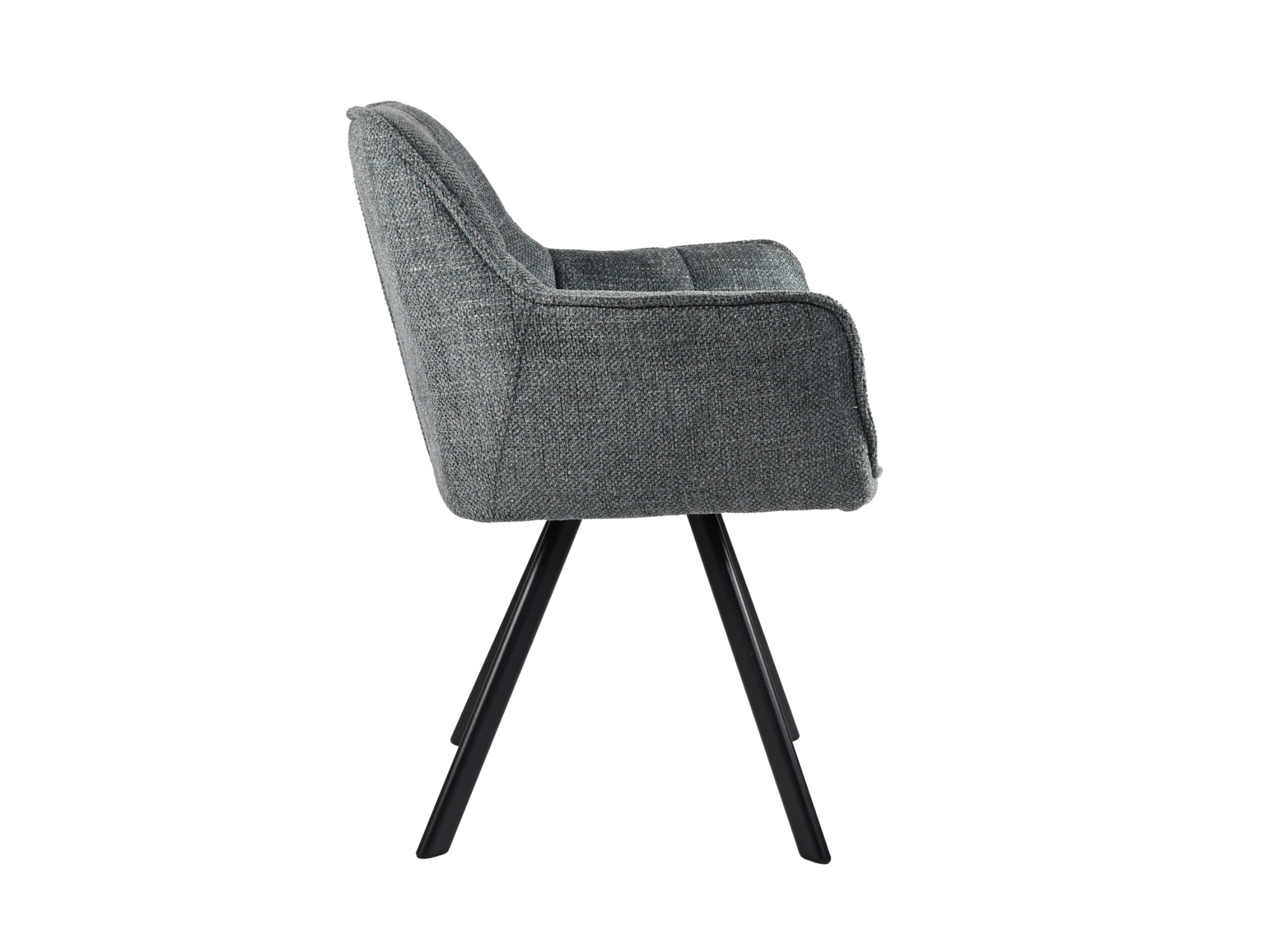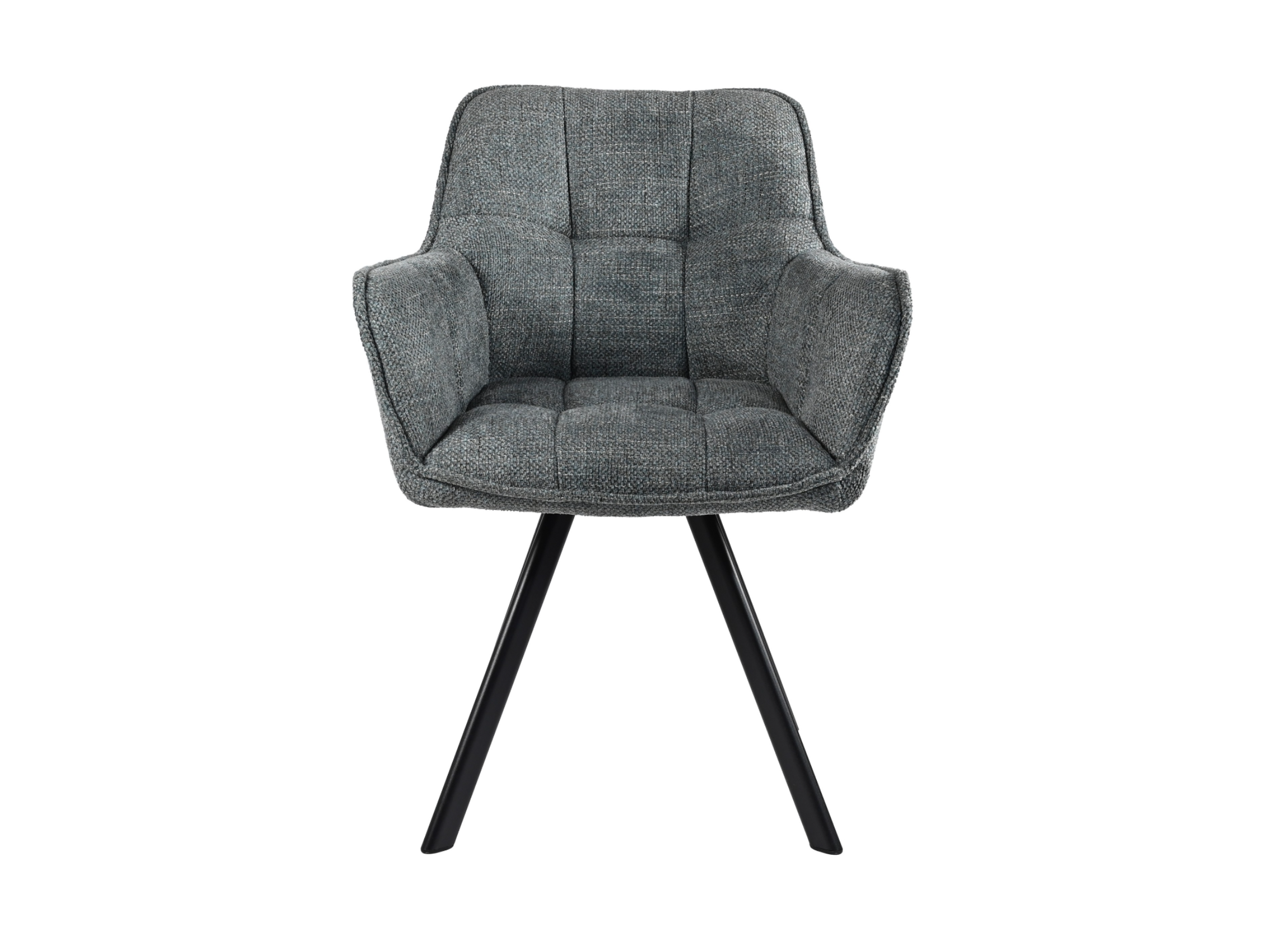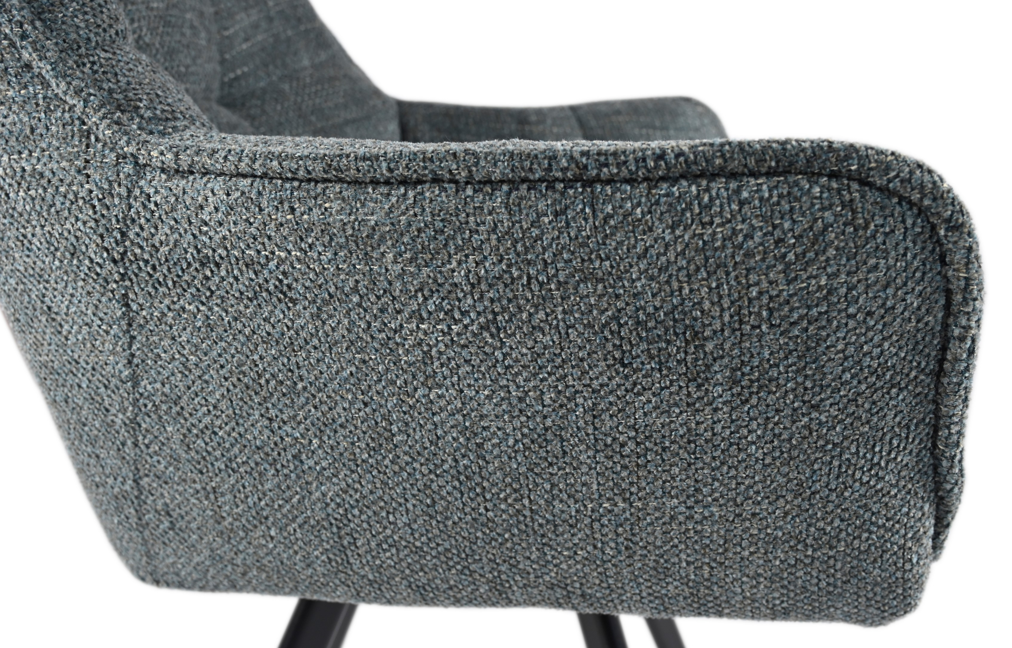 Стілець M-235 — це поєднання сучасного дизайну, комфорту та надійності. Оббитий фактурною тканиною у стильному графітовому відтінку, він має приємну на дотик поверхню та виглядає солідно й стримано. Завдяки широкому сидінню і комфортним підлокітникам, модель забезпечує зручну посадку як для обіду, так і для відпочинку.